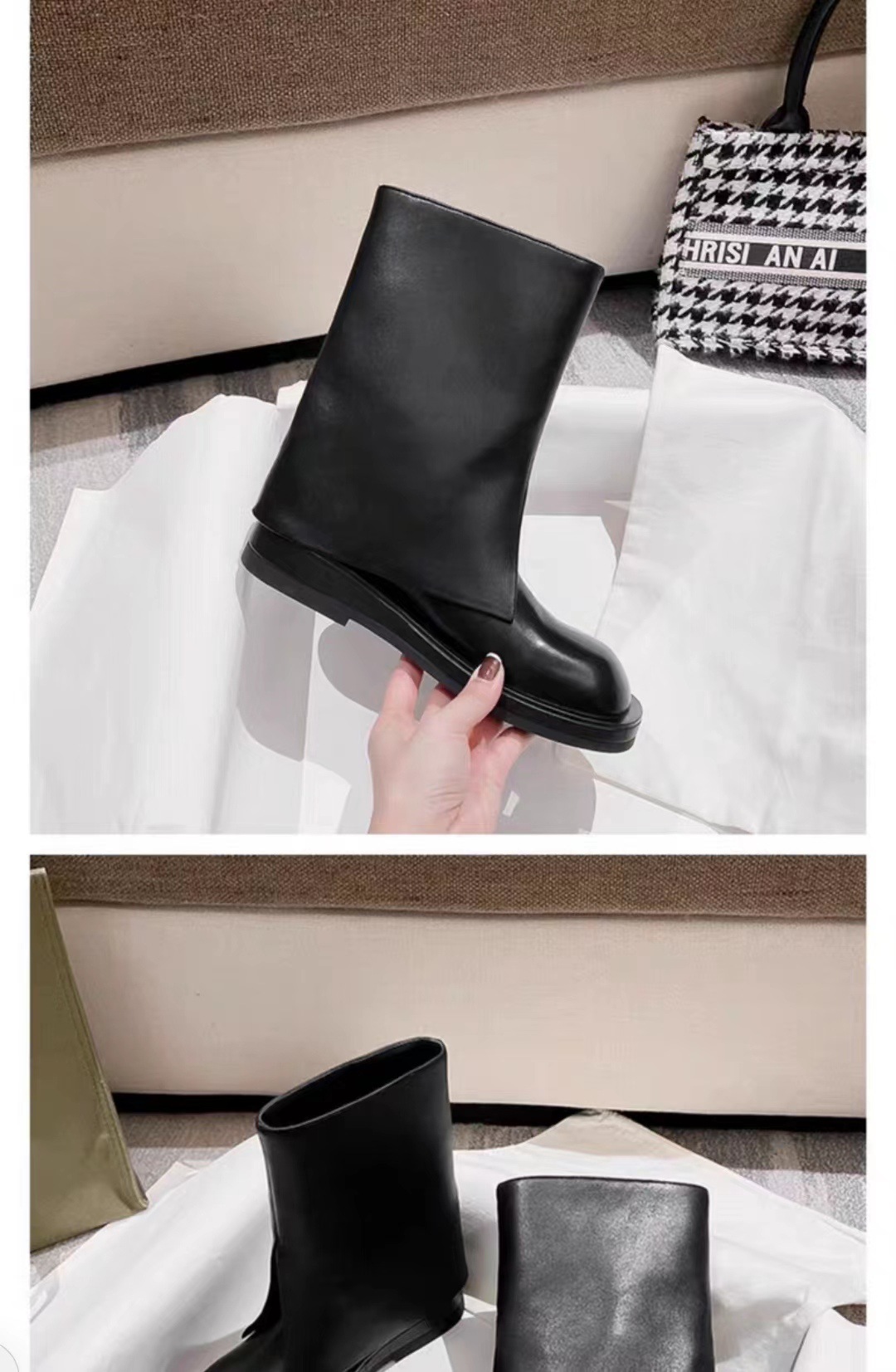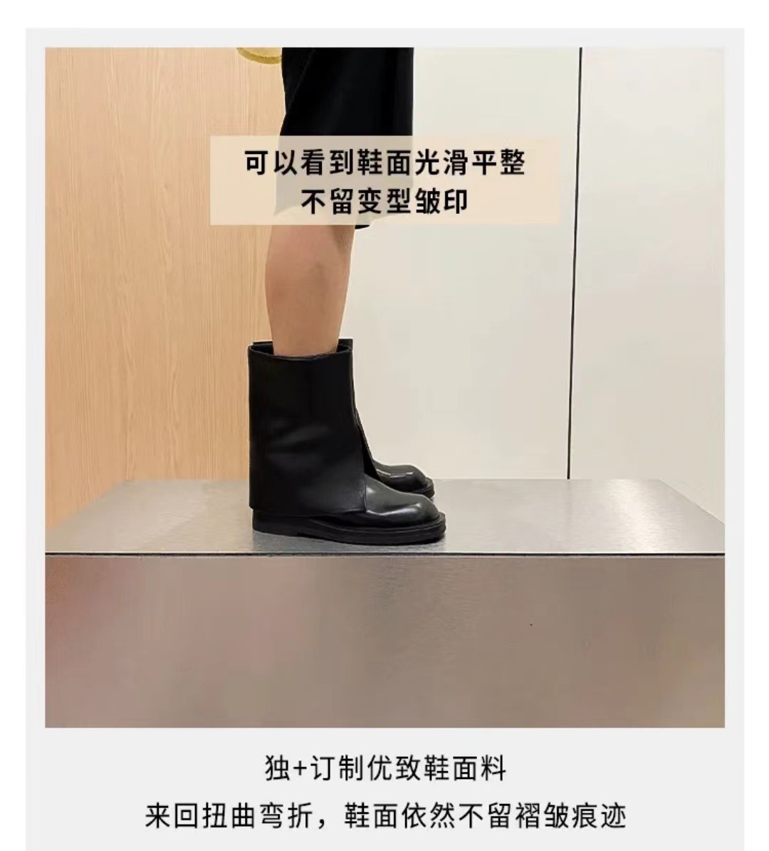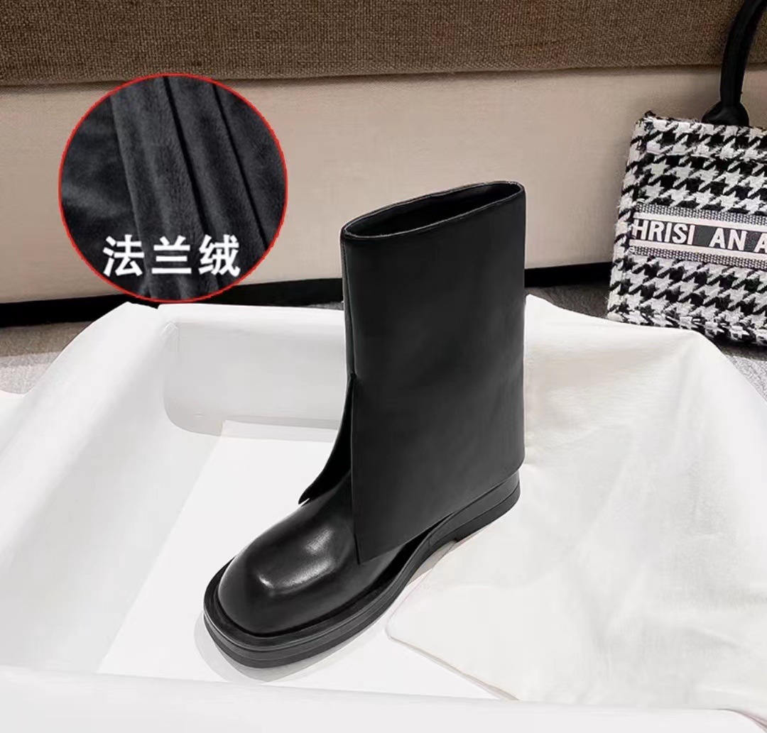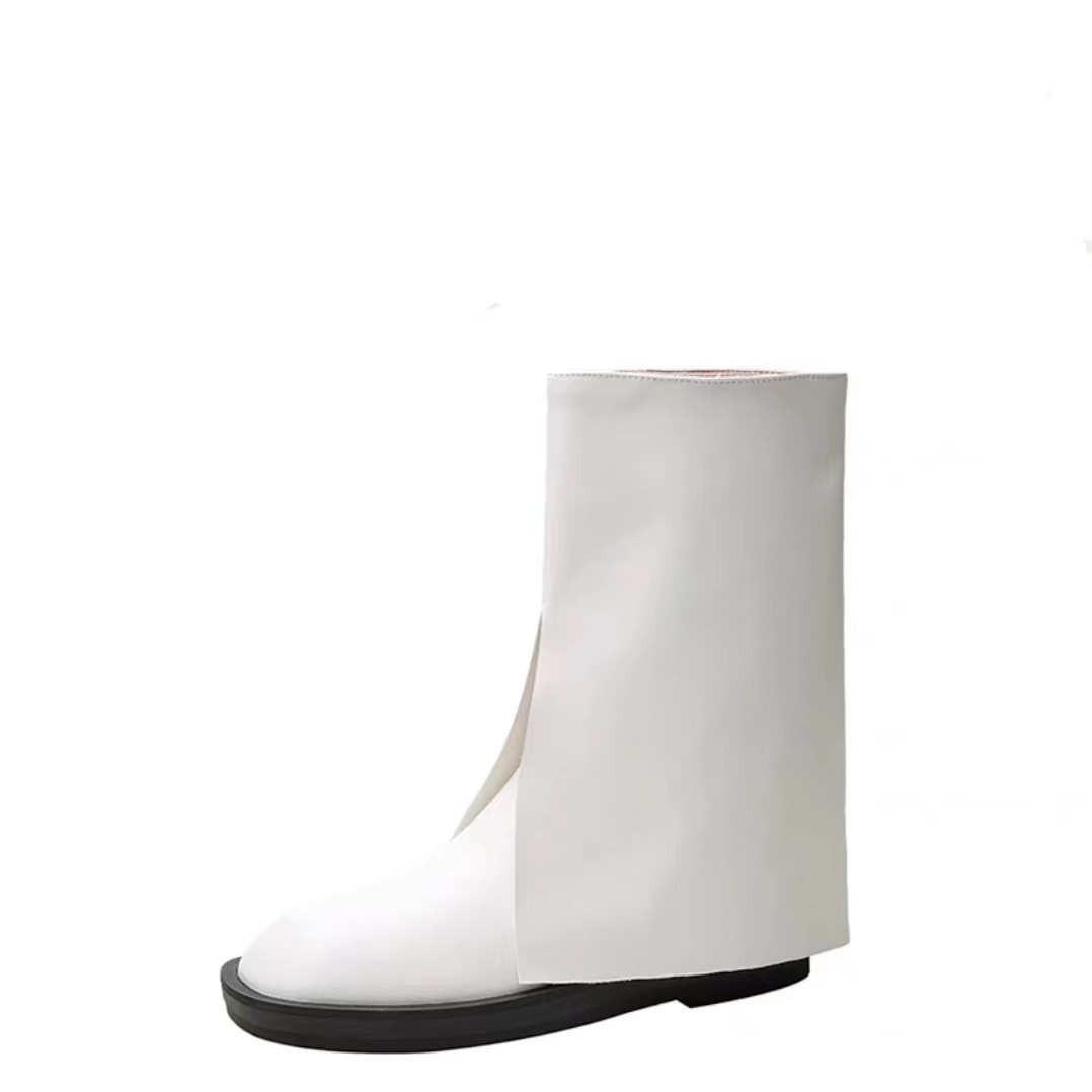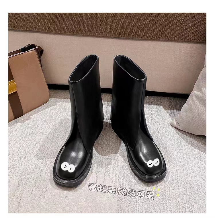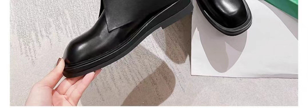스타 같은 스타일 정품 가죽 플랫 부츠 마틴 부츠 바지 중간 길이 부츠 여성용 스키니 레그 나이트 부츠 세련된 짧은 페달