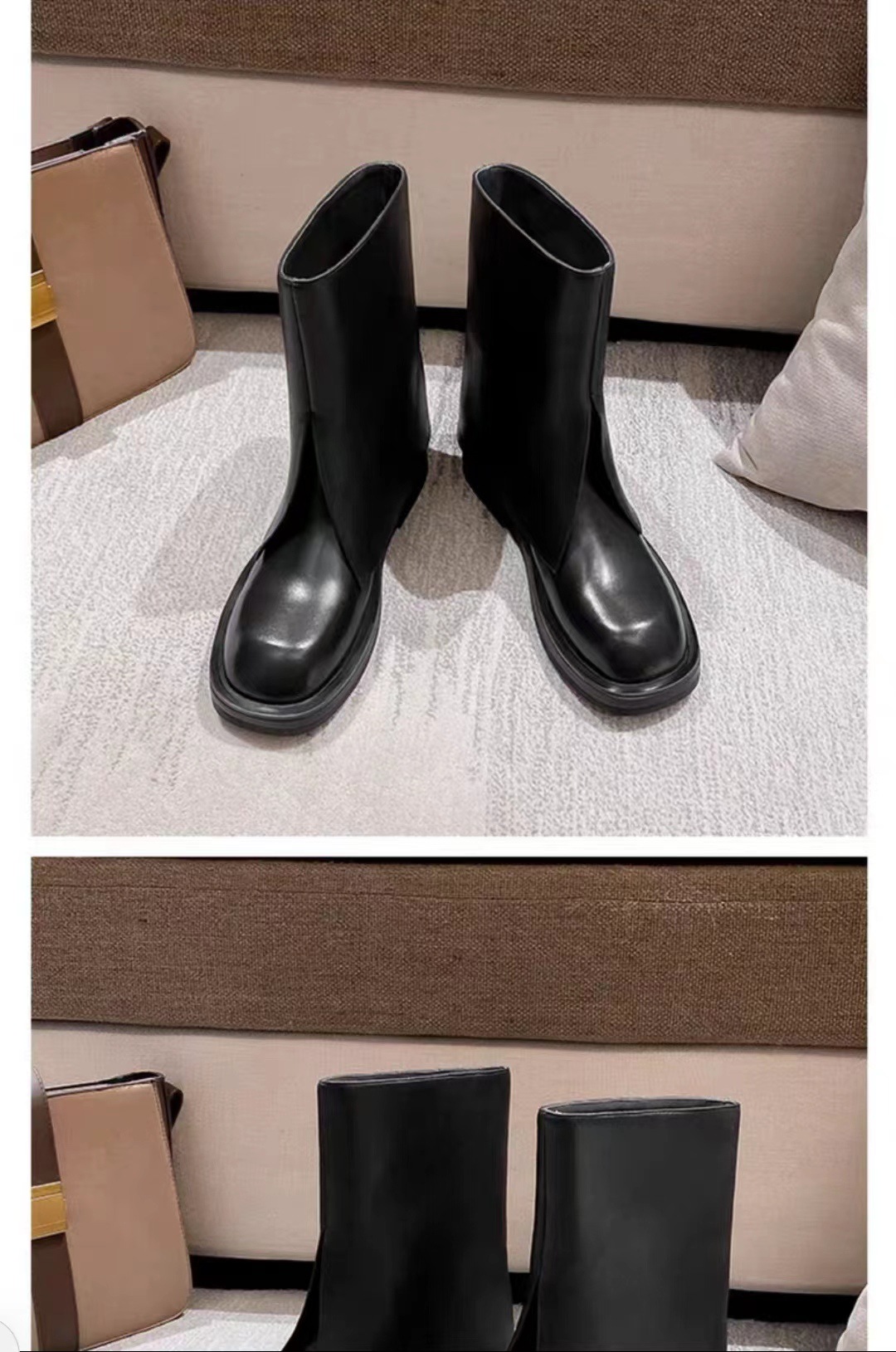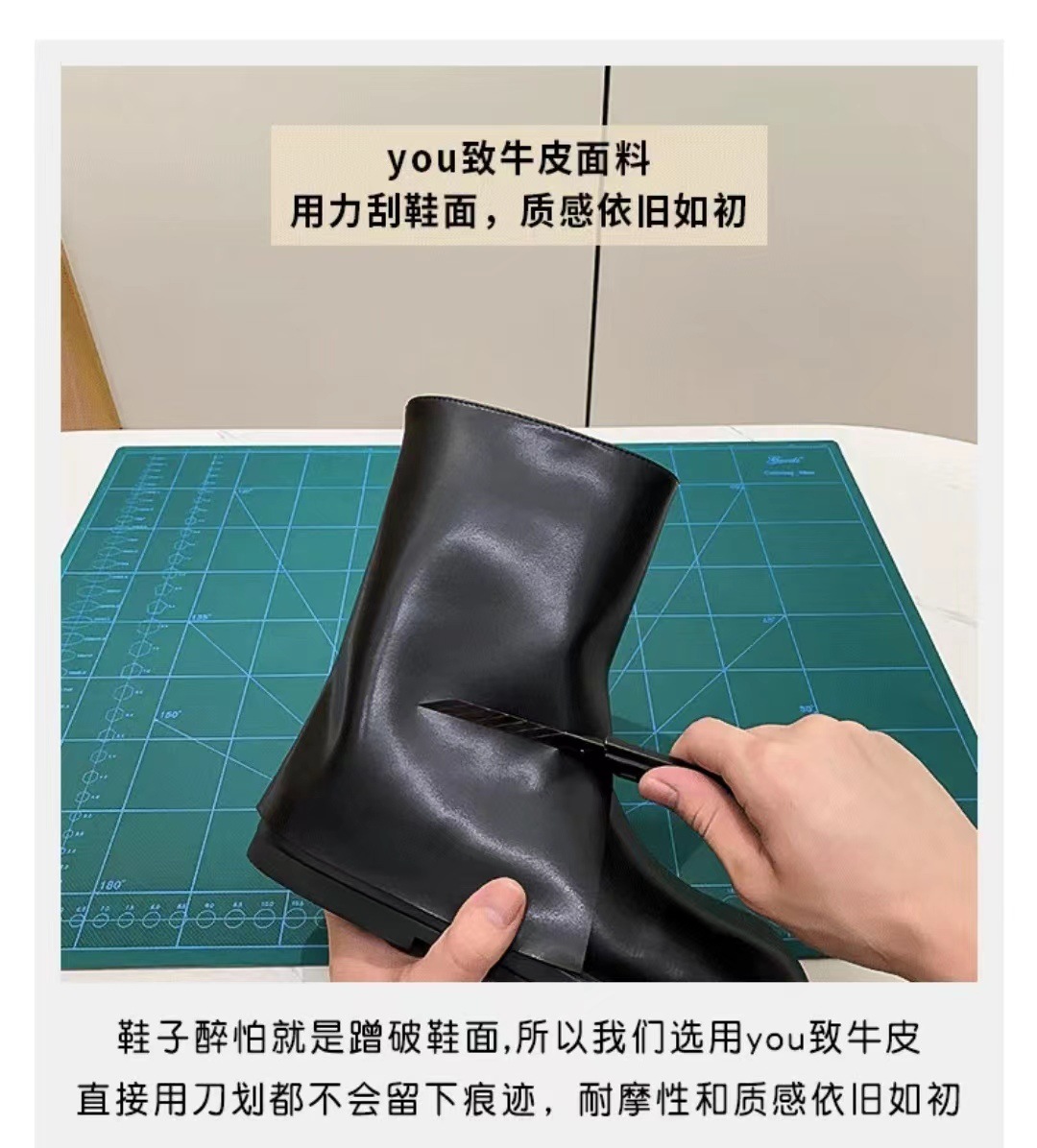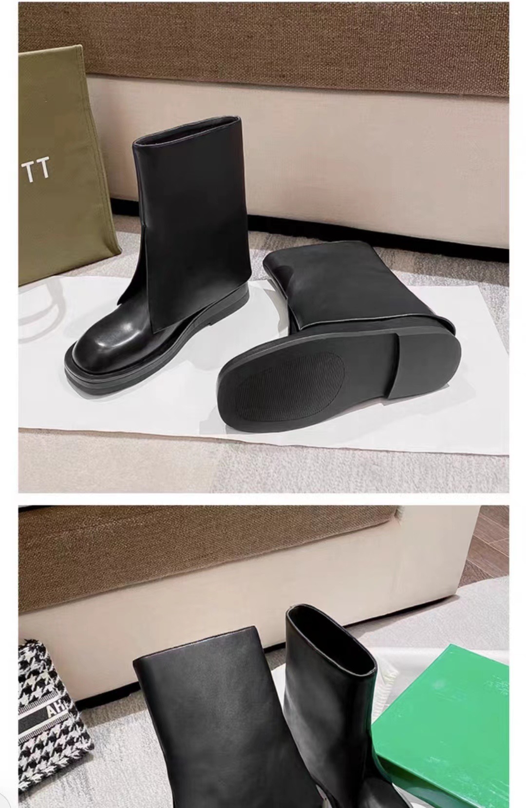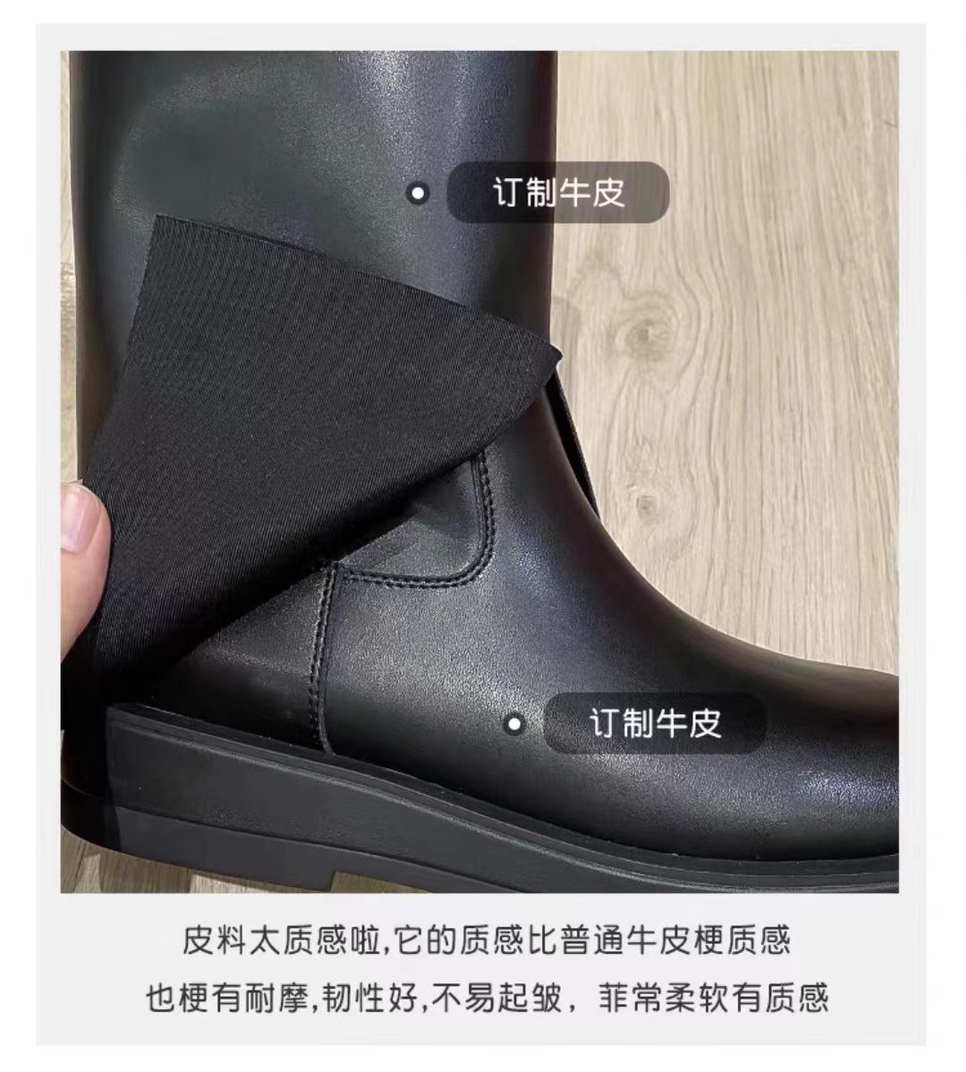 스타 같은 스타일 정품 가죽 플랫 부츠 마틴 부츠 바지 중간 길이 부츠 여성용 스키니 레그 나이트 부츠 세련된 짧은 페달