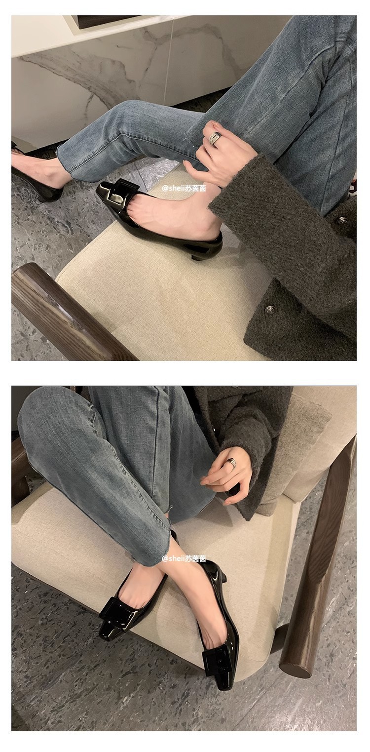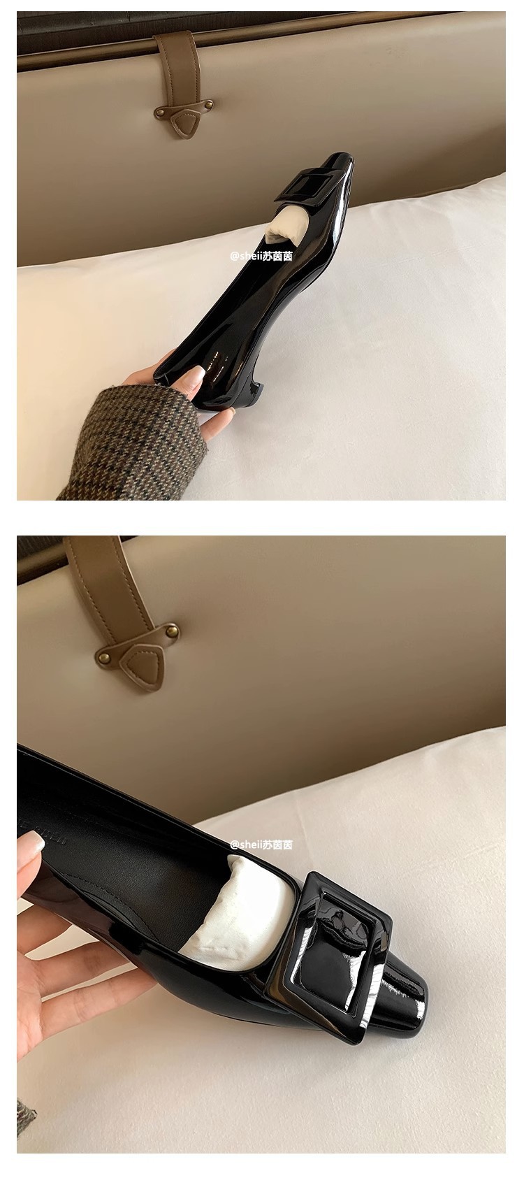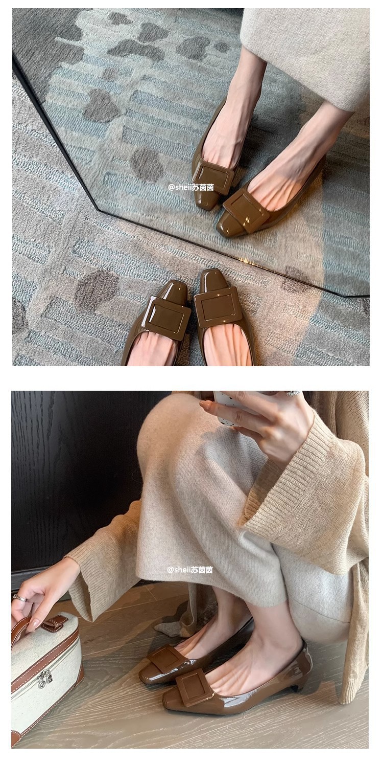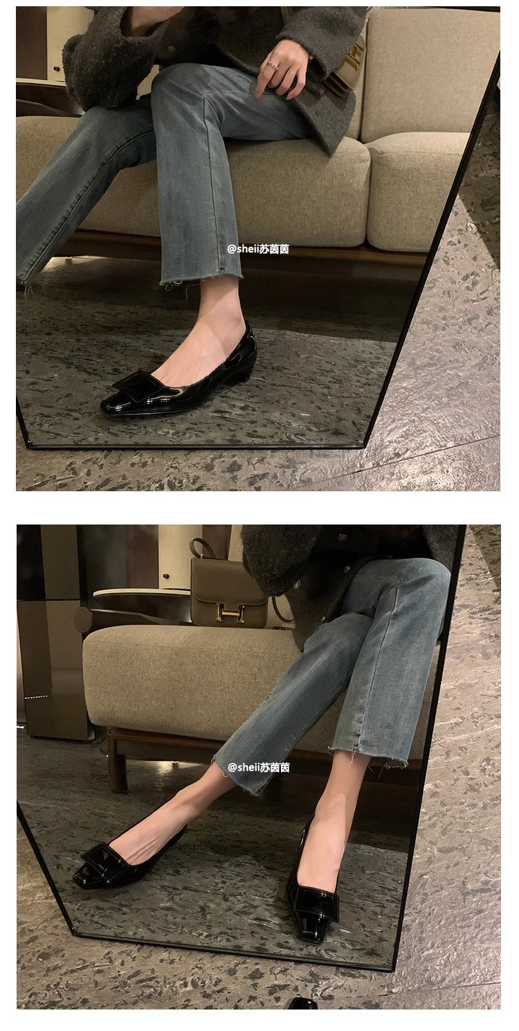 [Sheii Su Yinyin] 디자인 디렉터 ~ 프렌치 가죽 스퀘어 헤드 스퀘어 버클 샤오 마오 다큐멘터리 신발 여성 올 통근 신발