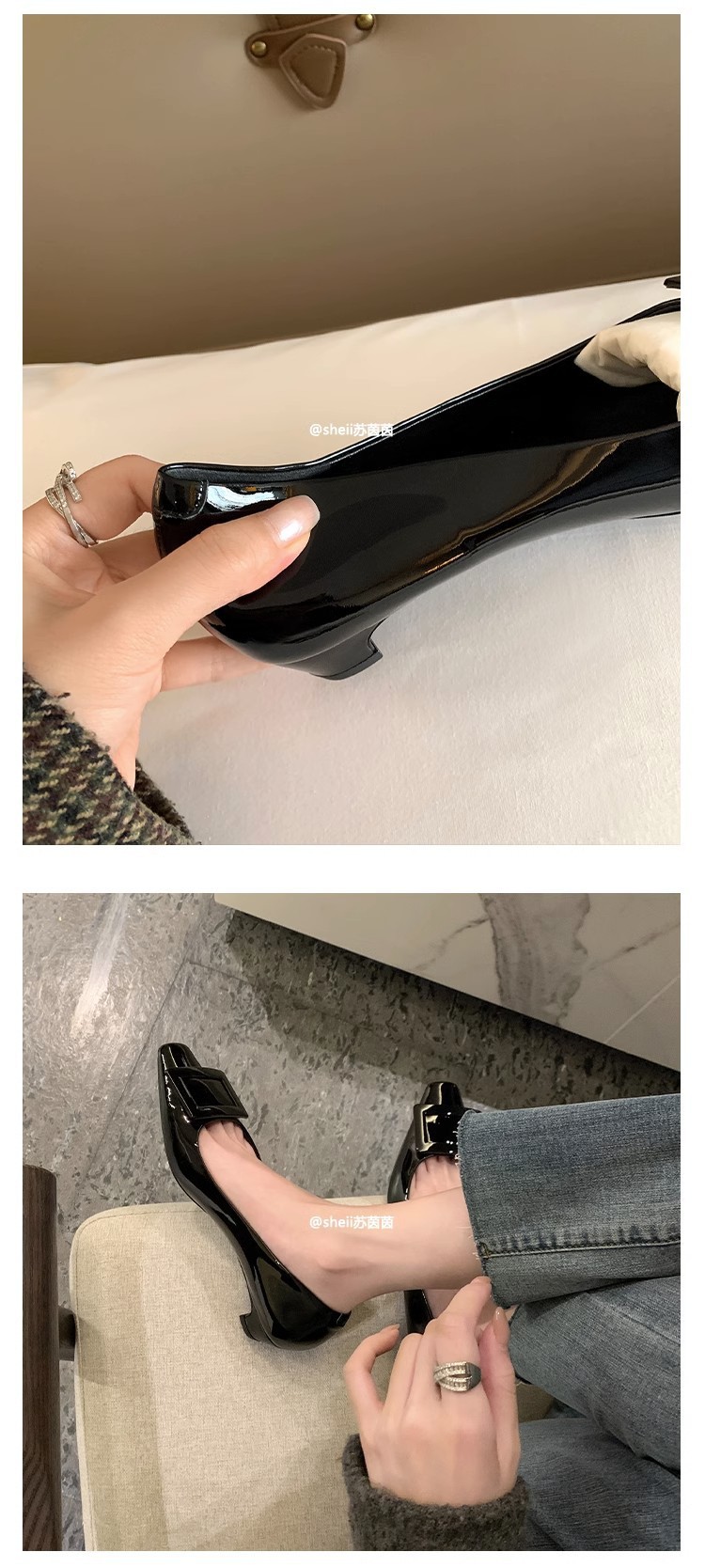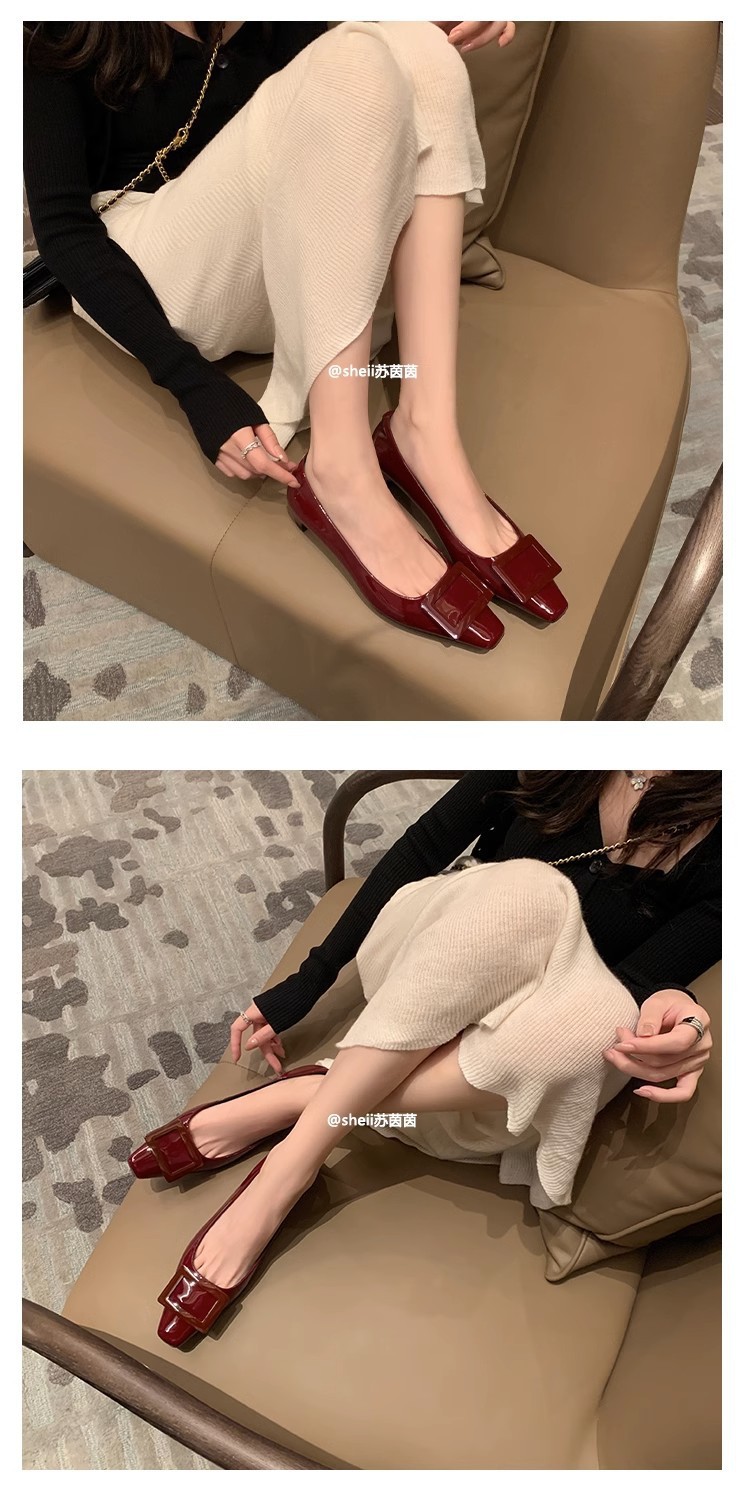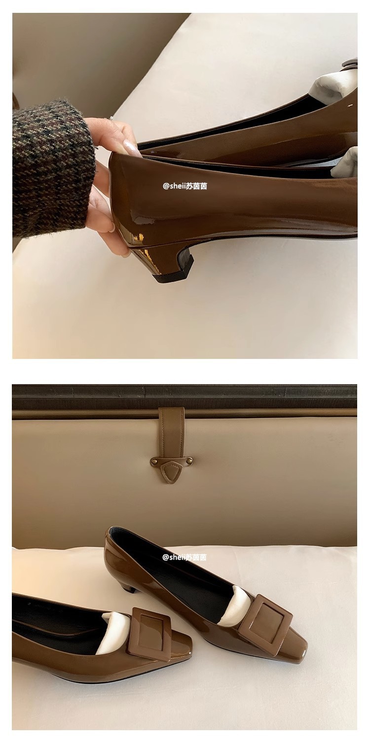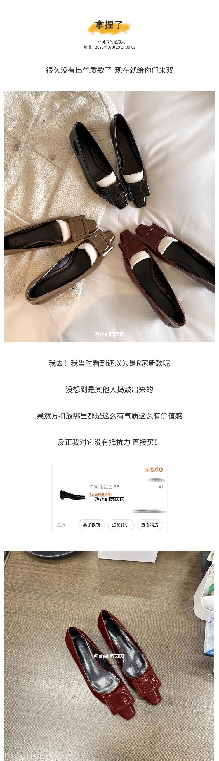 [Sheii Su Yinyin] 디자인 디렉터 ~ 프렌치 가죽 스퀘어 헤드 스퀘어 버클 샤오 마오 다큐멘터리 신발 여성 올 통근 신발