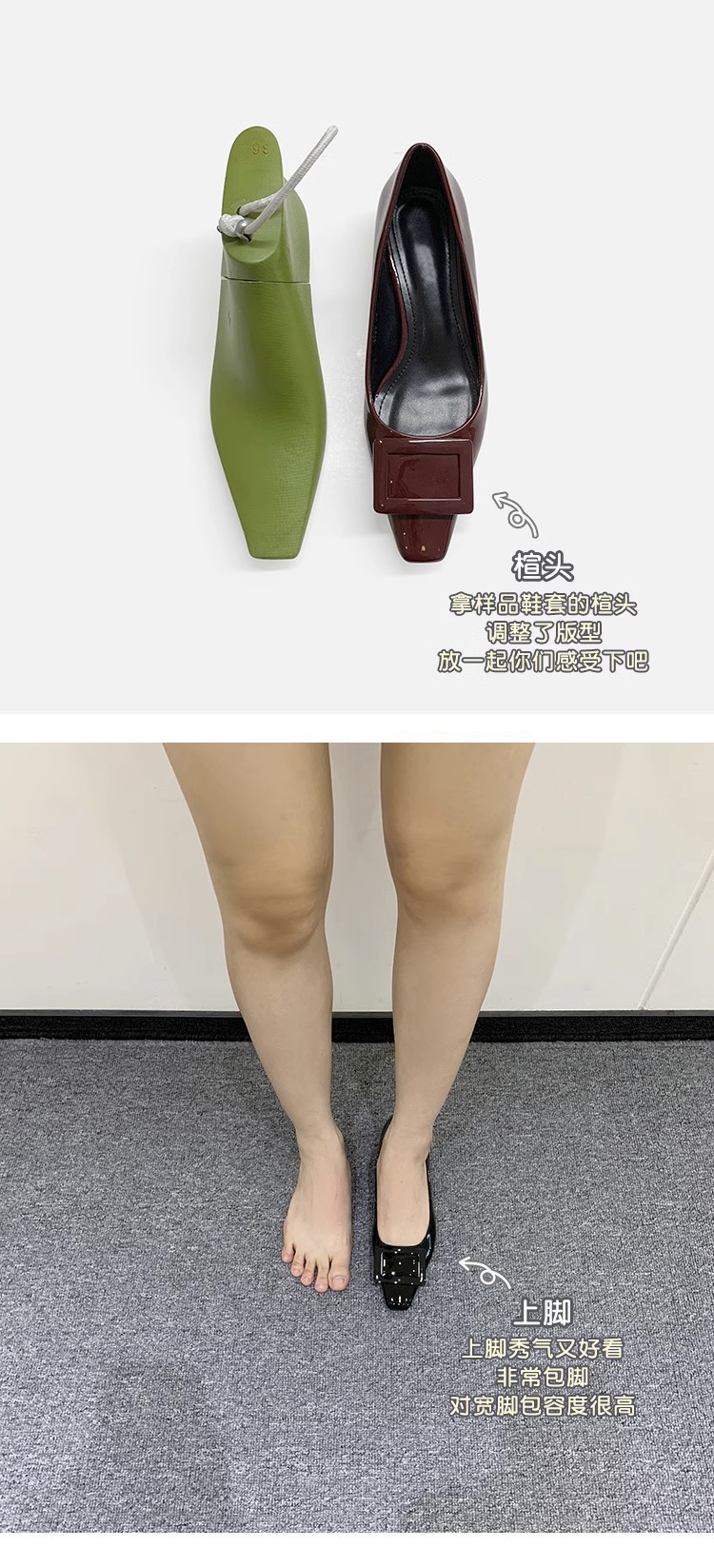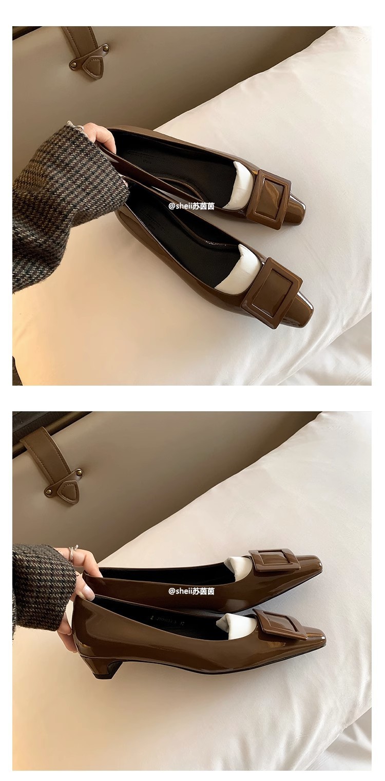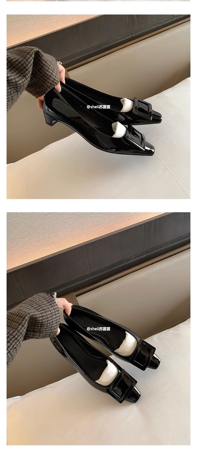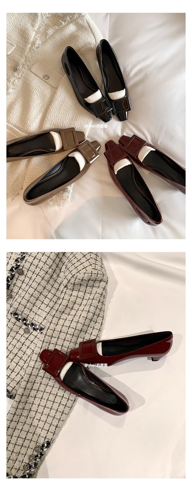 [Sheii Su Yinyin] 디자인 디렉터 ~ 프렌치 가죽 스퀘어 헤드 스퀘어 버클 샤오 마오 다큐멘터리 신발 여성 올 통근 신발