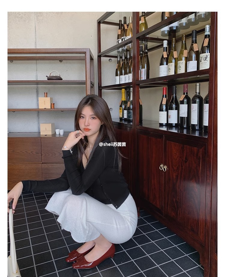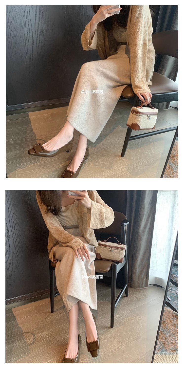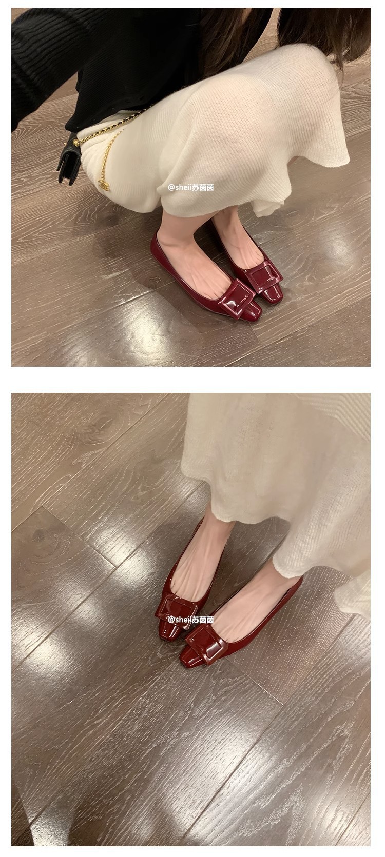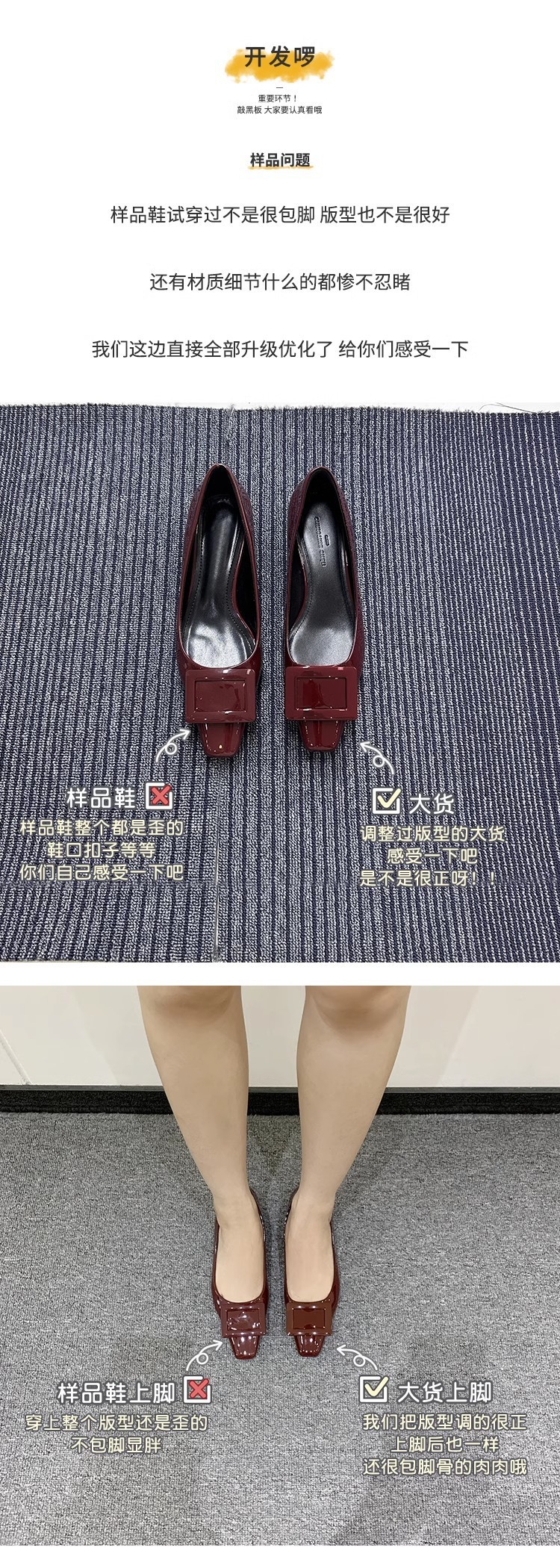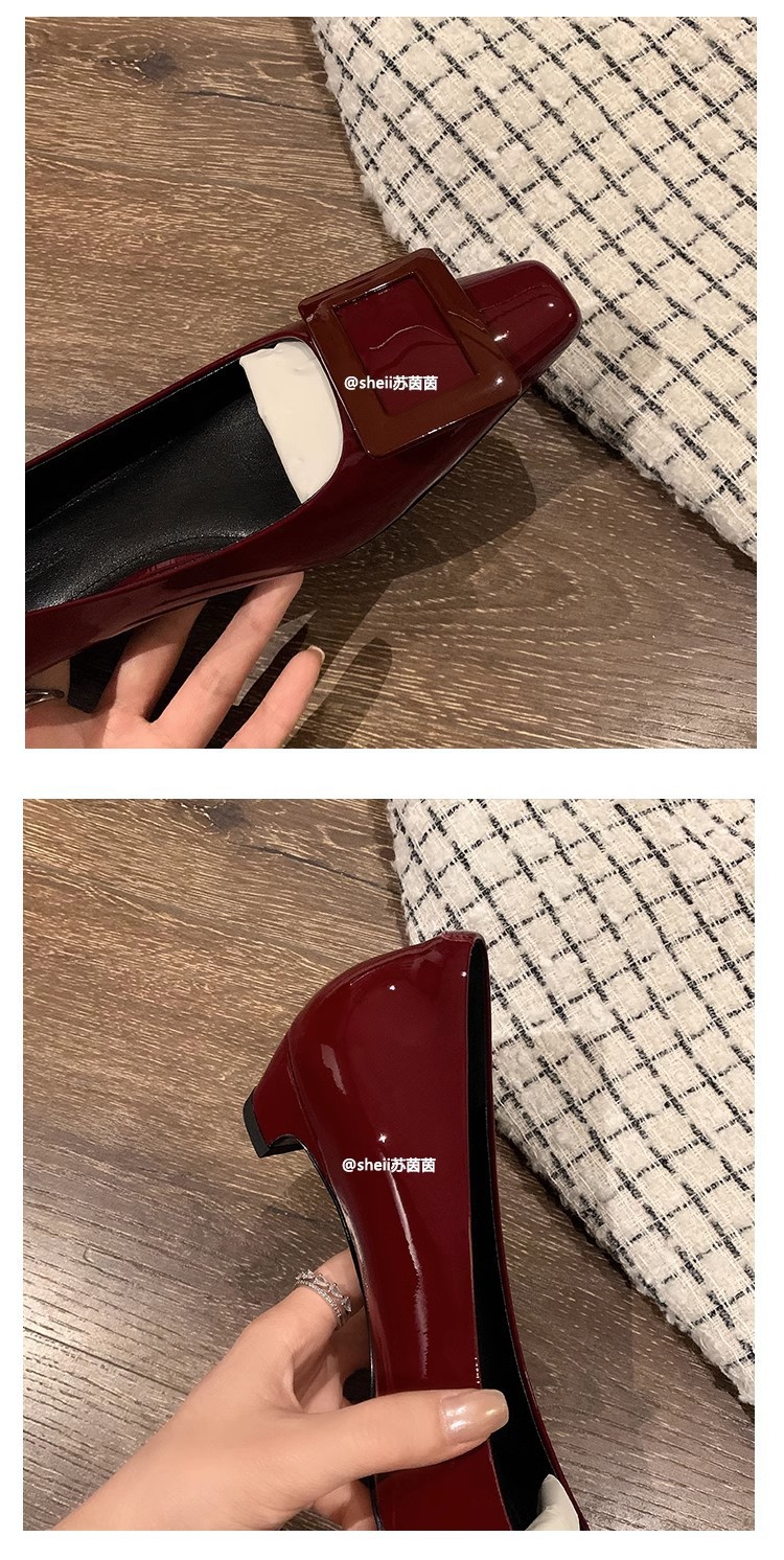 [Sheii Su Yinyin] 디자인 디렉터 ~ 프렌치 가죽 스퀘어 헤드 스퀘어 버클 샤오 마오 다큐멘터리 신발 여성 올 통근 신발