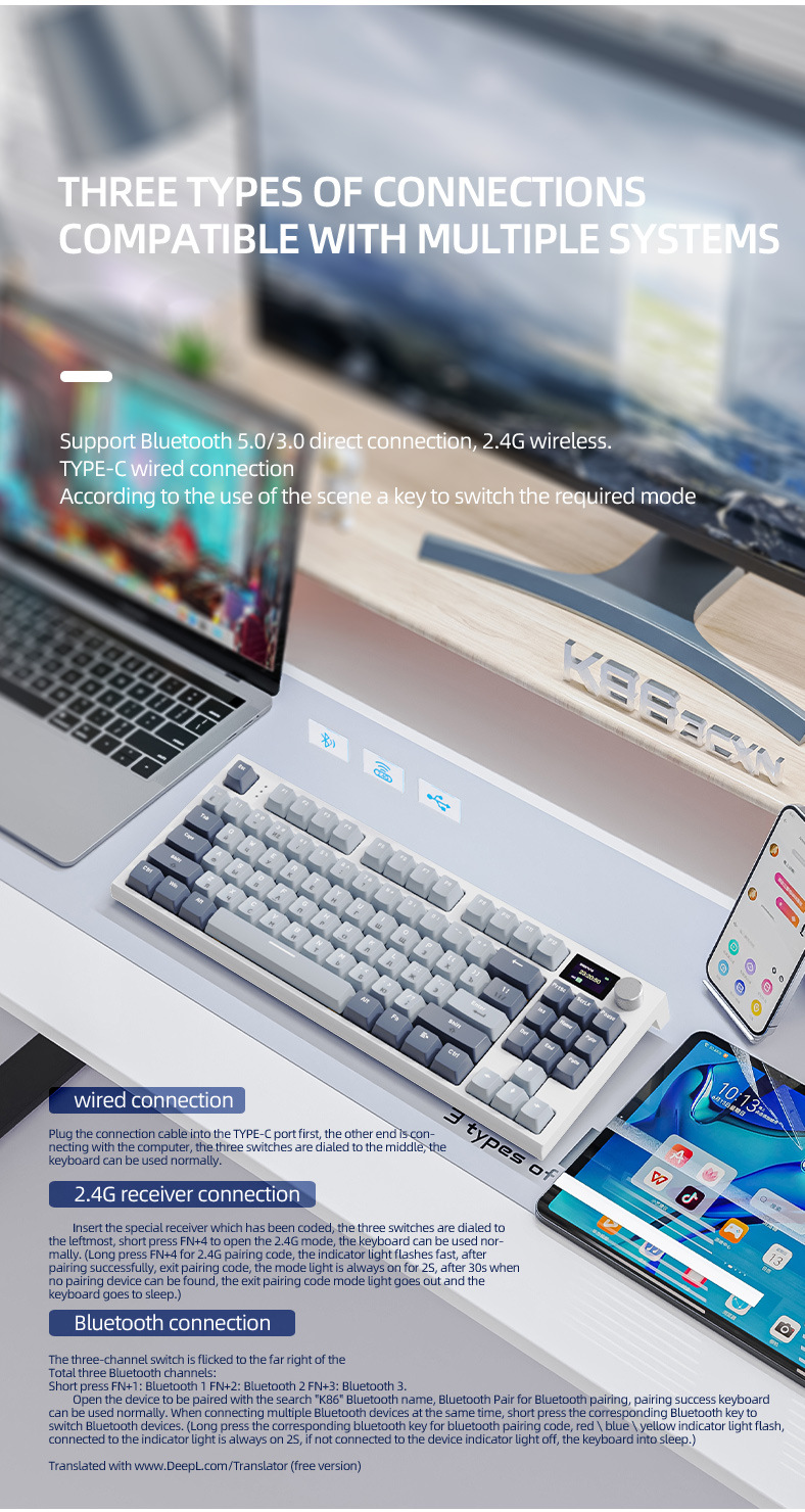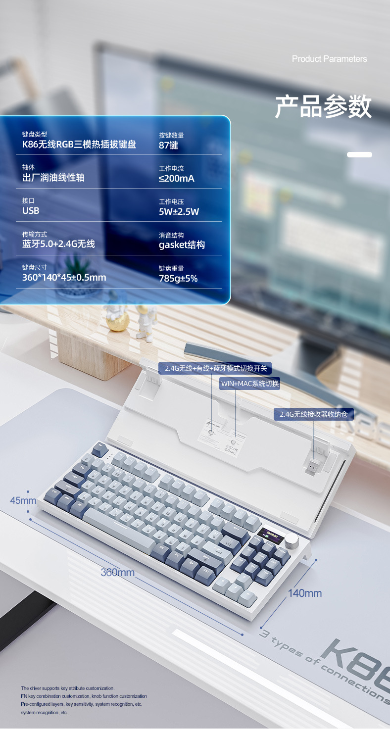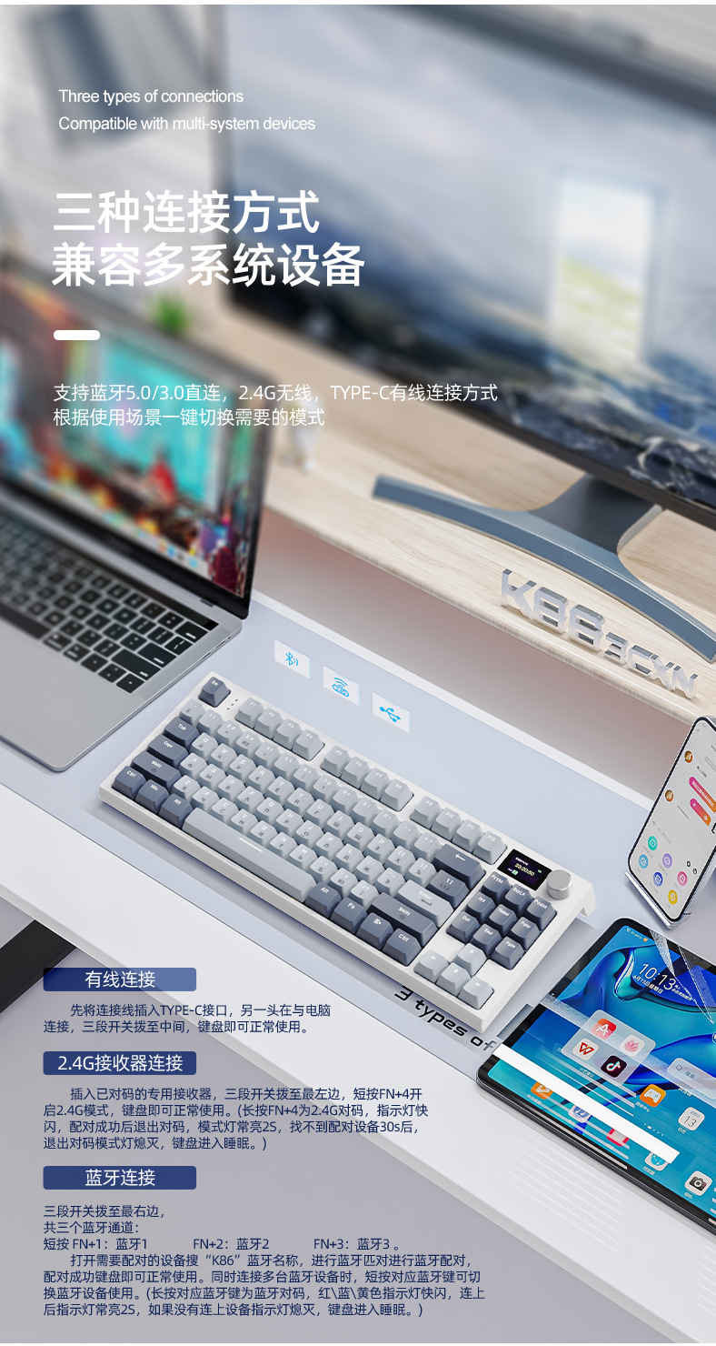 K86RGB三模无线蓝牙热插拔俄文机械键盘