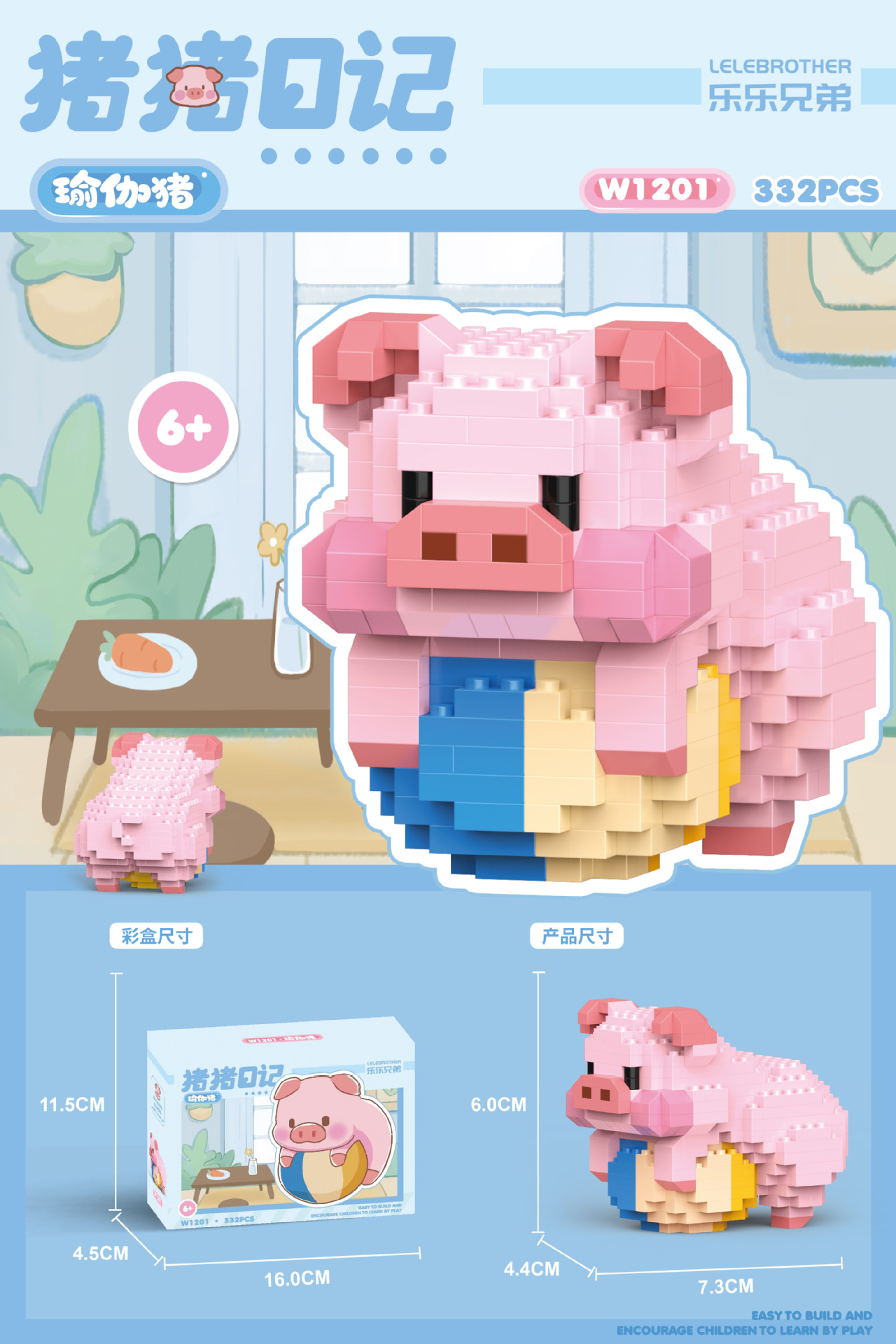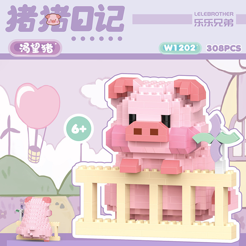 돼지 일기 시리즈 요가 돼지 데스크탑 귀여운 호환 레고 장식품 소녀 선물 퍼즐 장난감