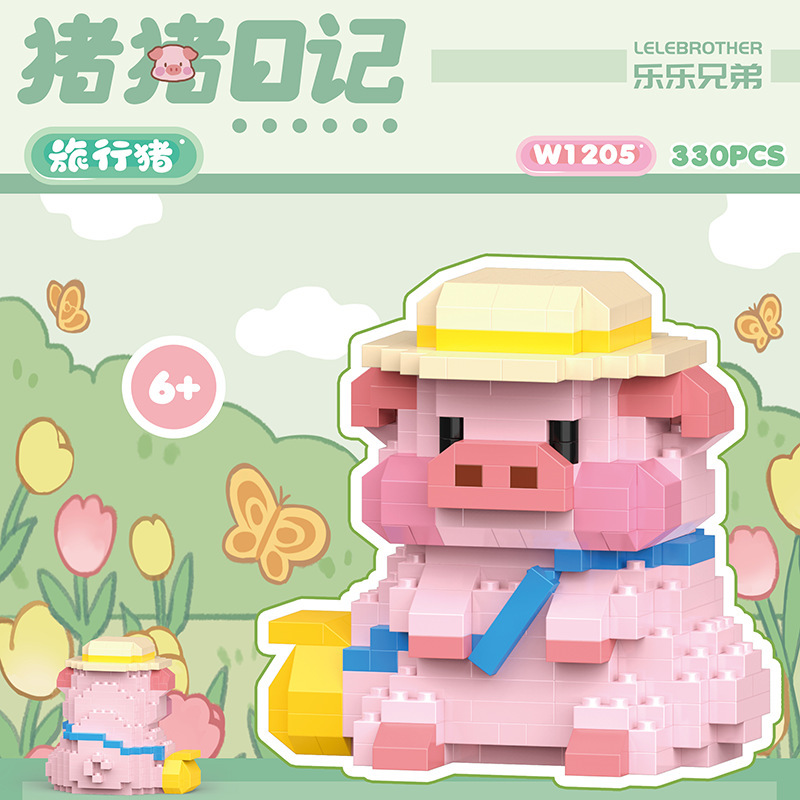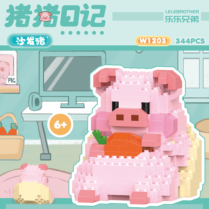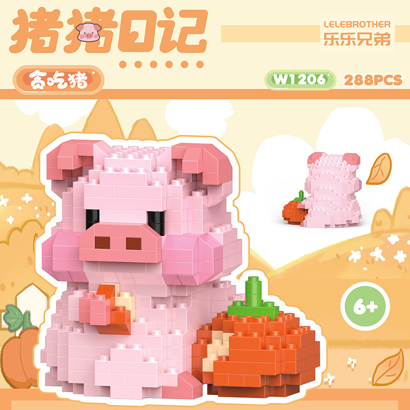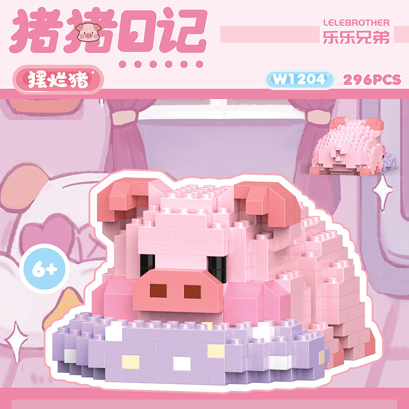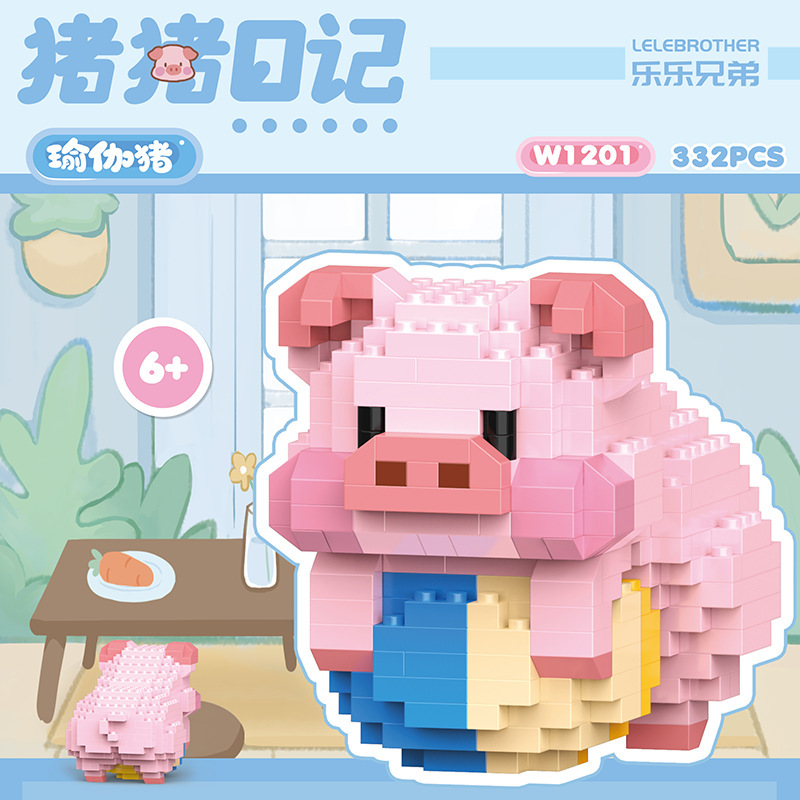 돼지 일기 시리즈 요가 돼지 데스크탑 귀여운 호환 레고 장식품 소녀 선물 퍼즐 장난감스토어 가기