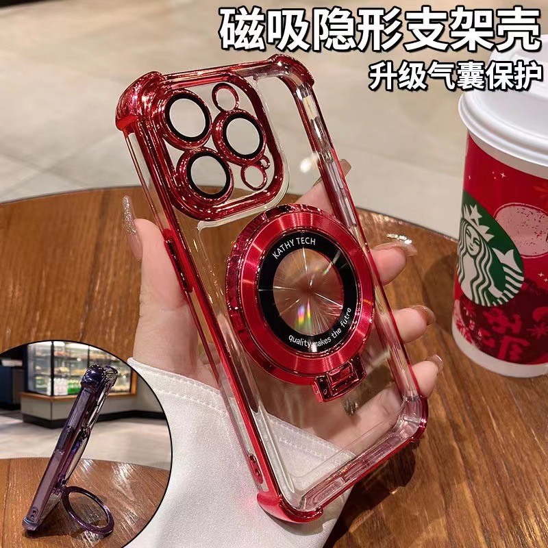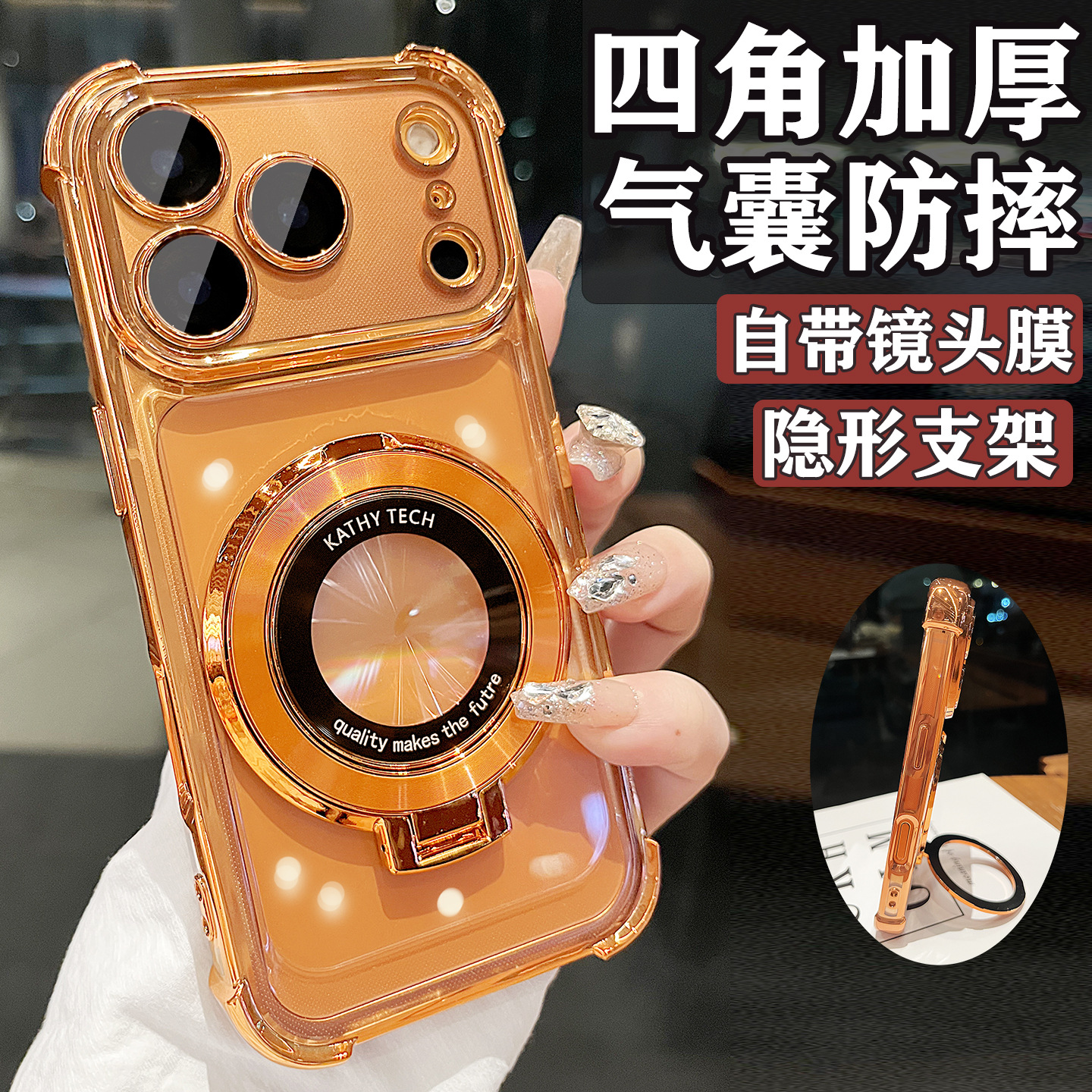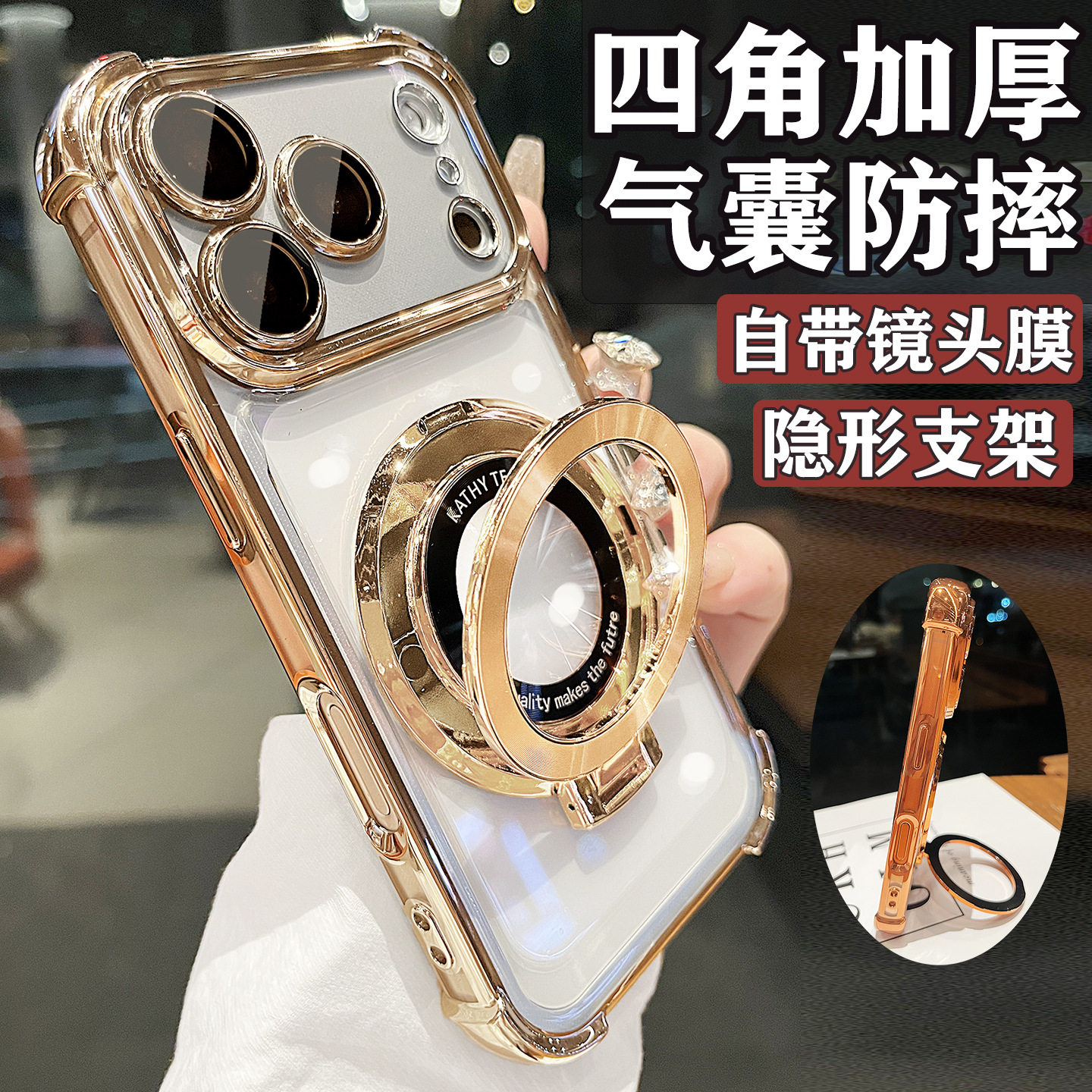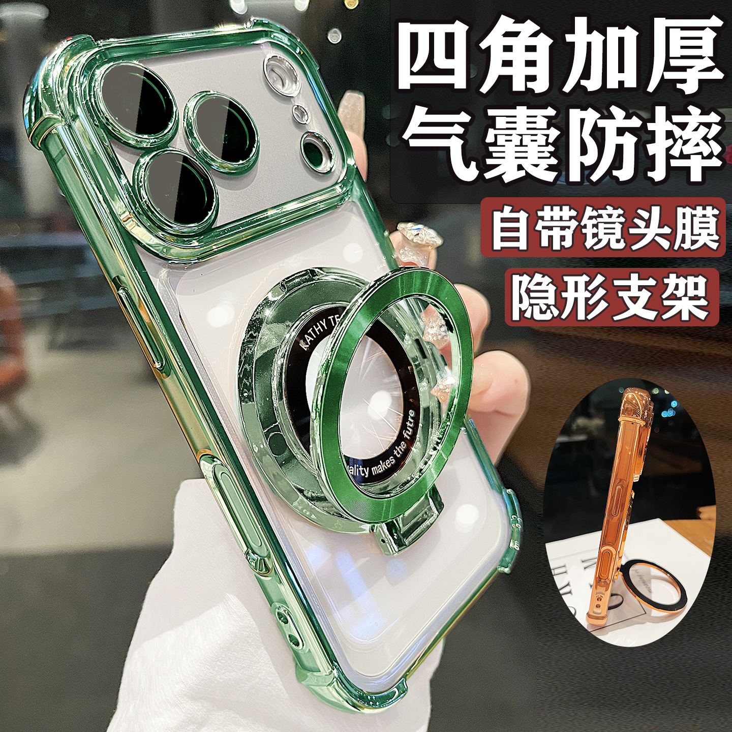 iPhone17Pro 휴대폰 케이스에 적합한 전기 도금 4코너 에어백 Apple 15 일체형 스페이스 쉘 마그네틱 홀더 14
