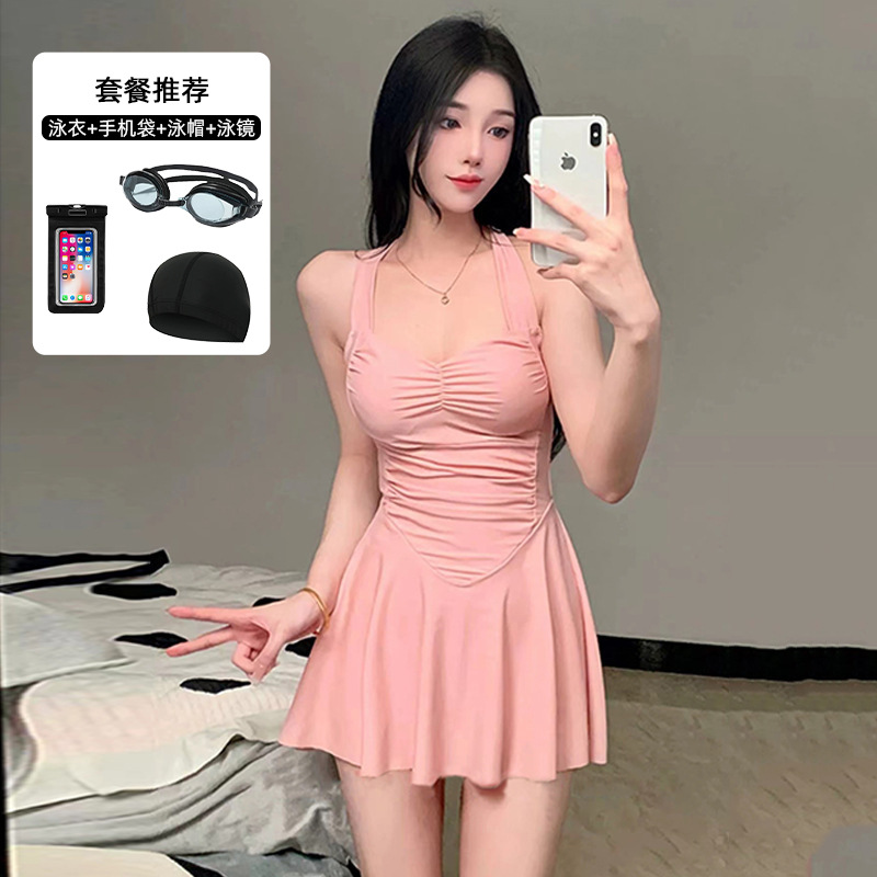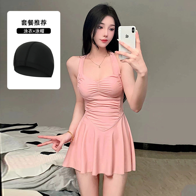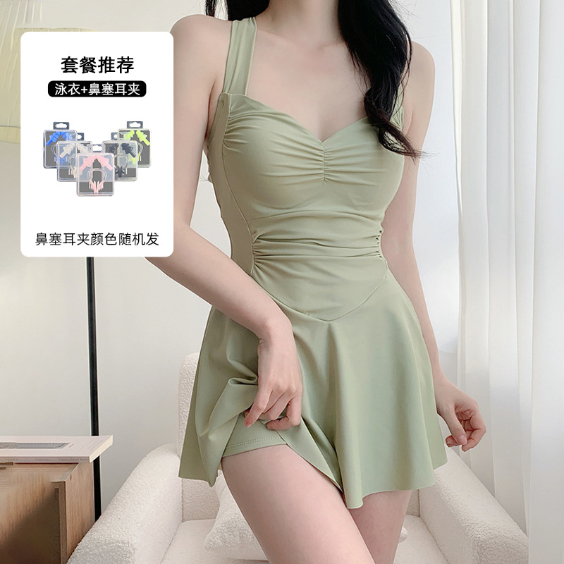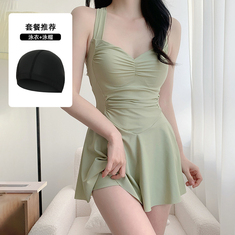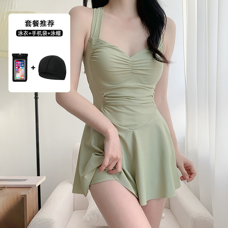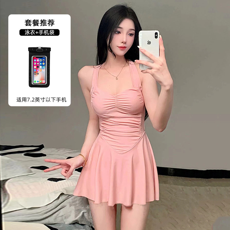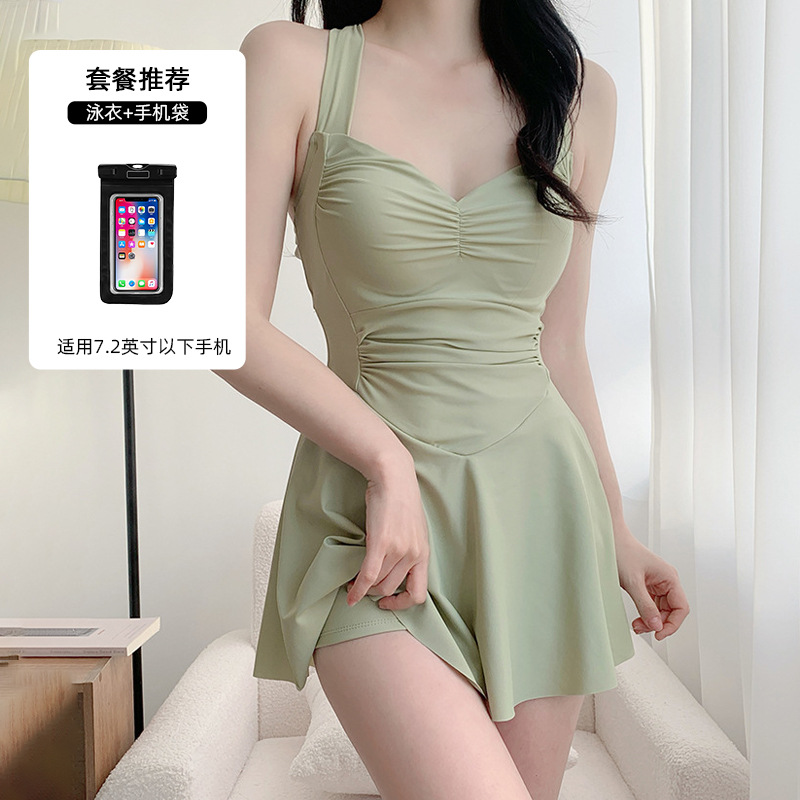 여자 수영복 섹시 허리 슬리밍 단색 새로운 원피스 스커트 스타일 플랫 앵글 휴일 온천 수영 세트 도매스토어 가기