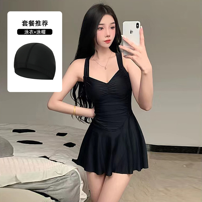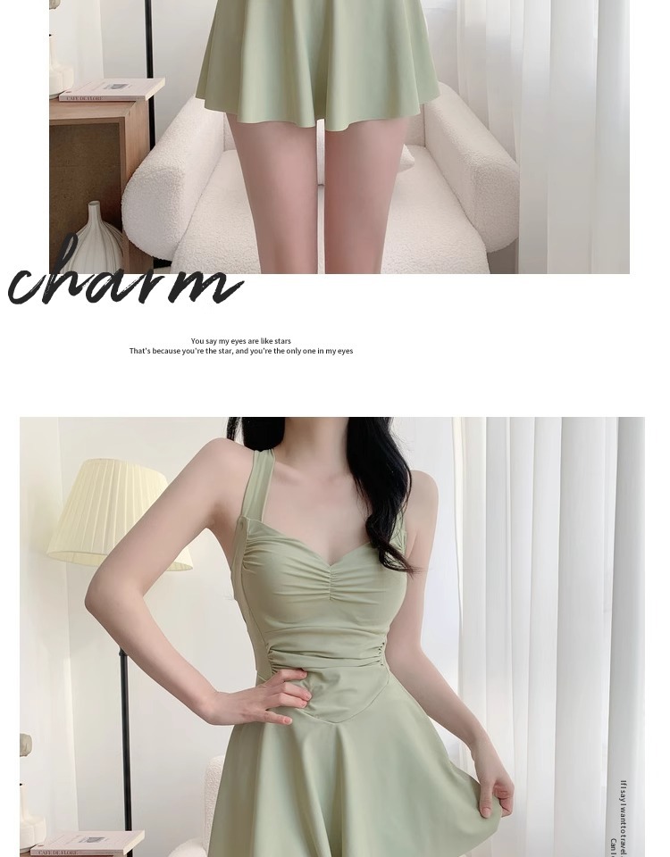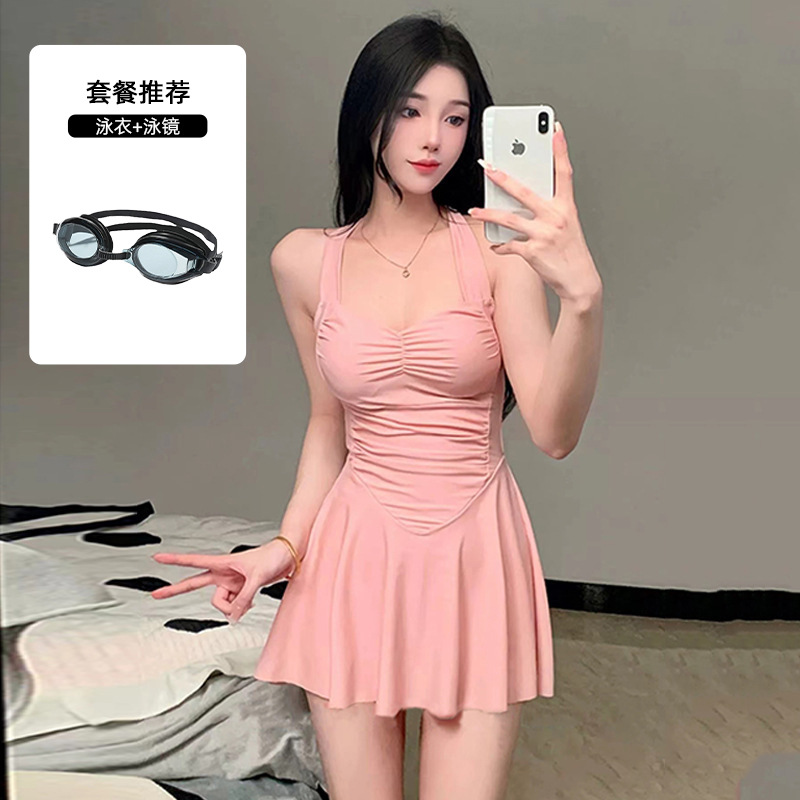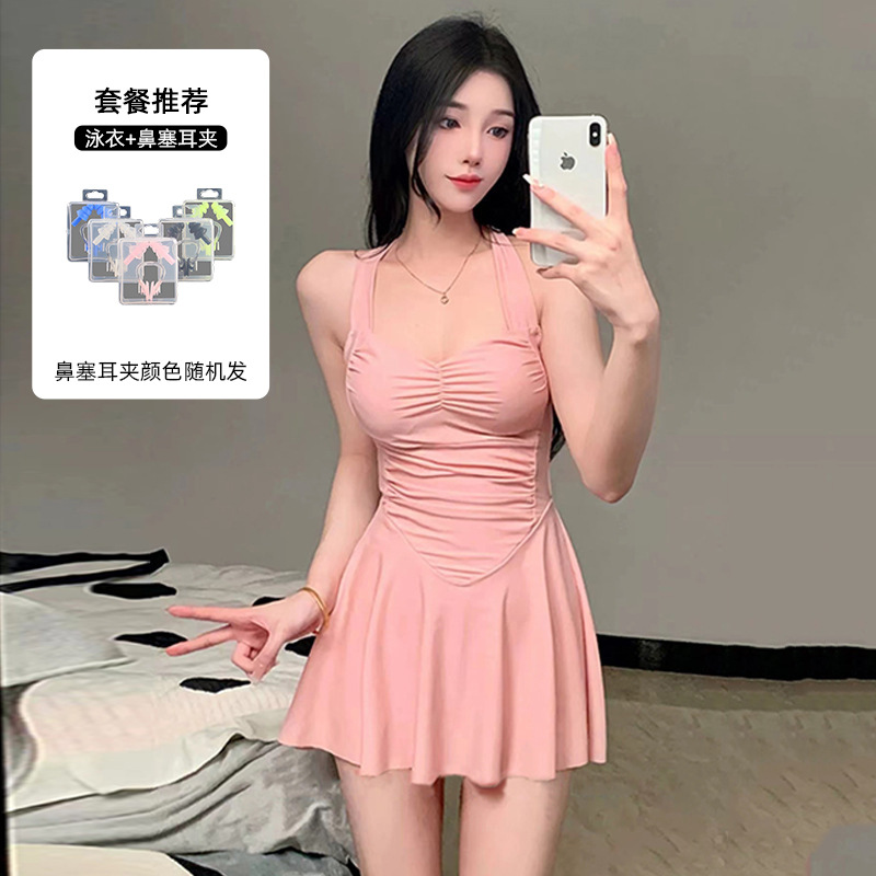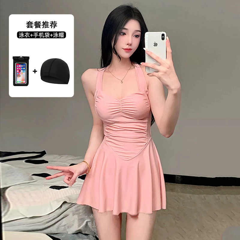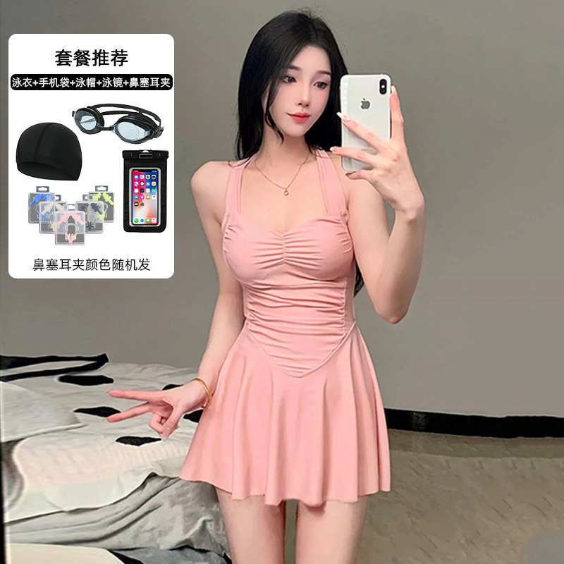 여자 수영복 섹시 허리 슬리밍 단색 새로운 원피스 스커트 스타일 플랫 앵글 휴일 온천 수영 세트 도매스토어 가기