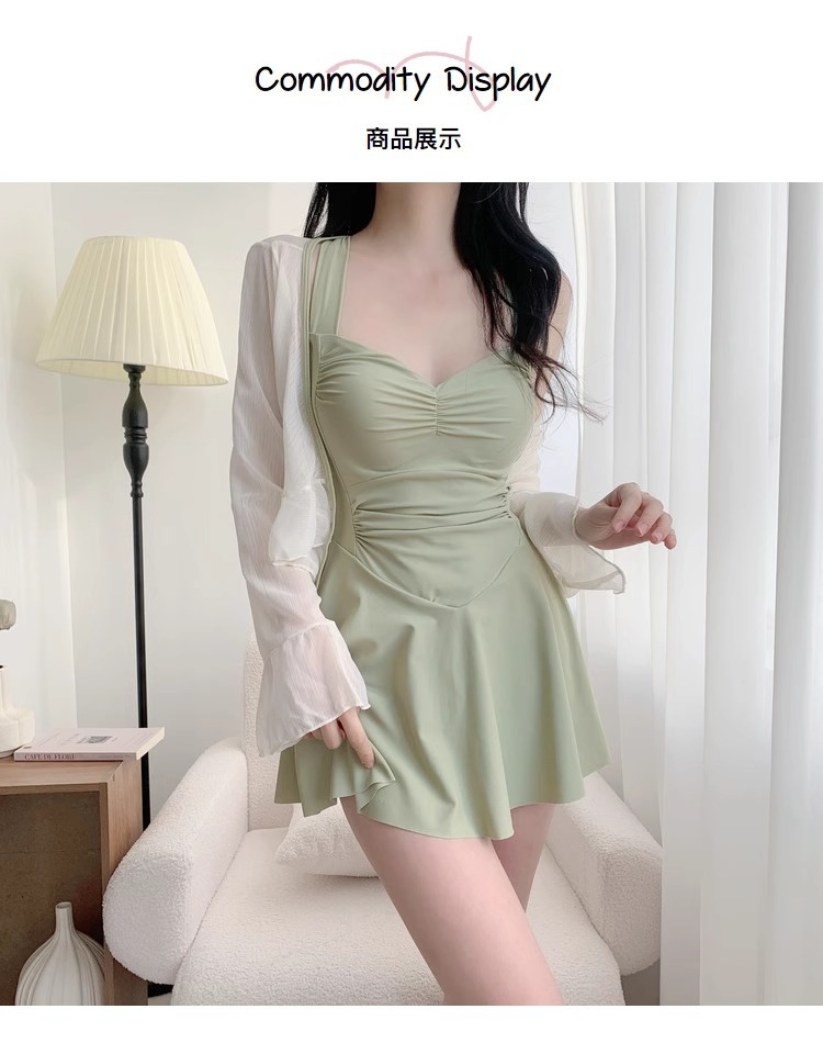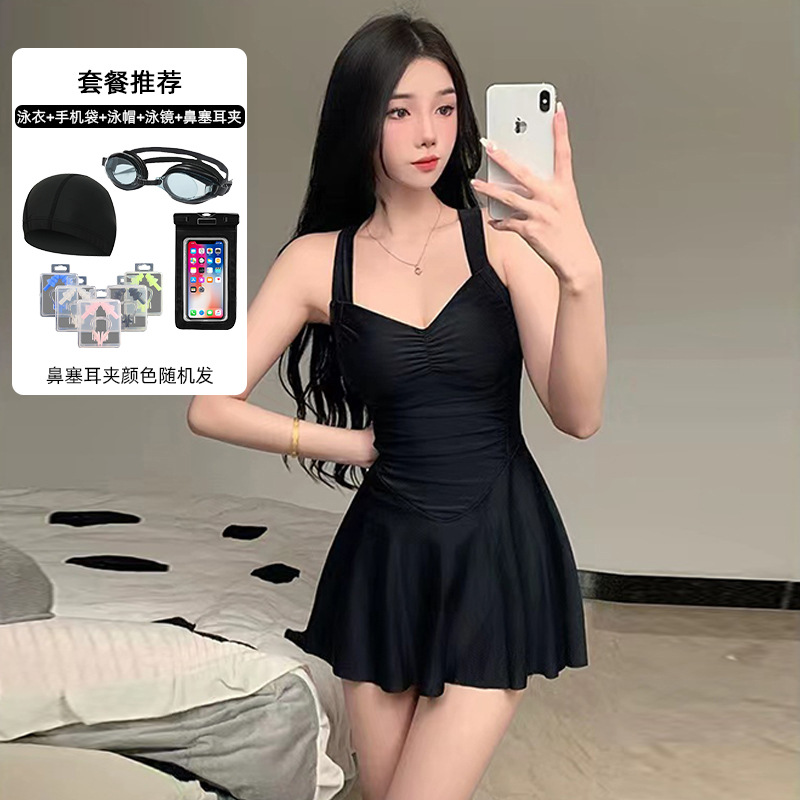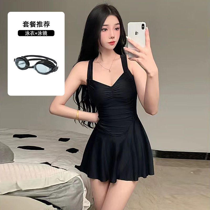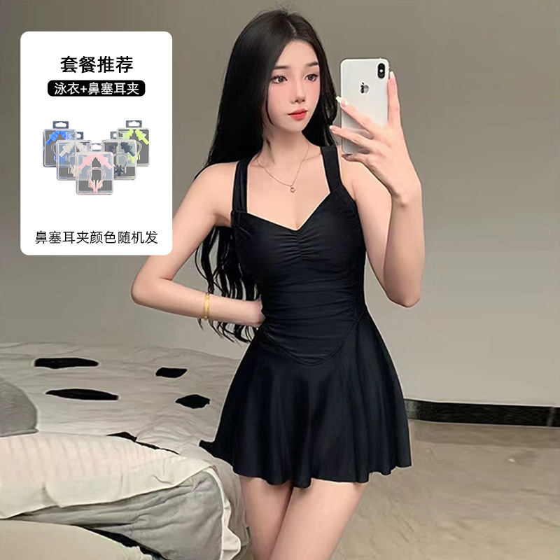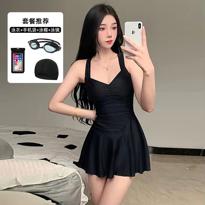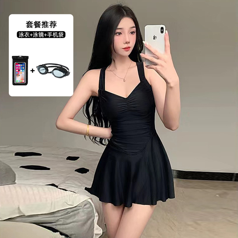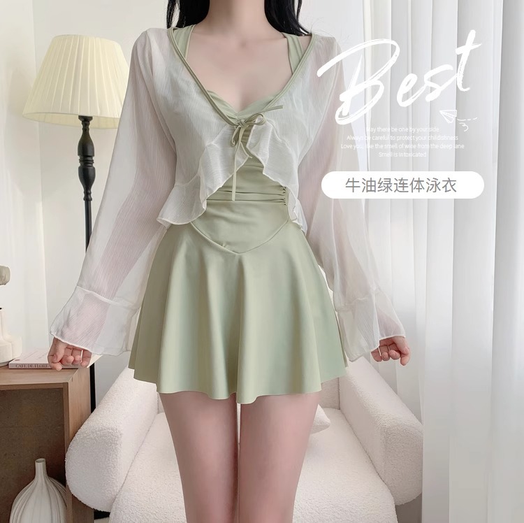 여자 수영복 섹시 허리 슬리밍 단색 새로운 원피스 스커트 스타일 플랫 앵글 휴일 온천 수영 세트 도매스토어 가기