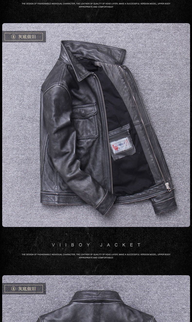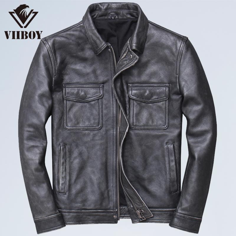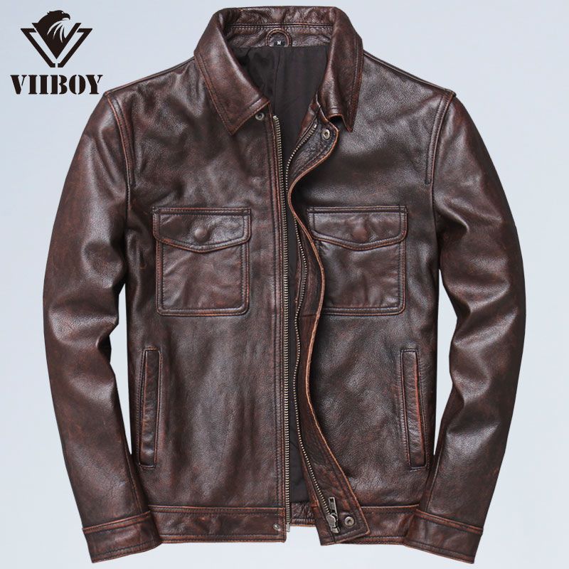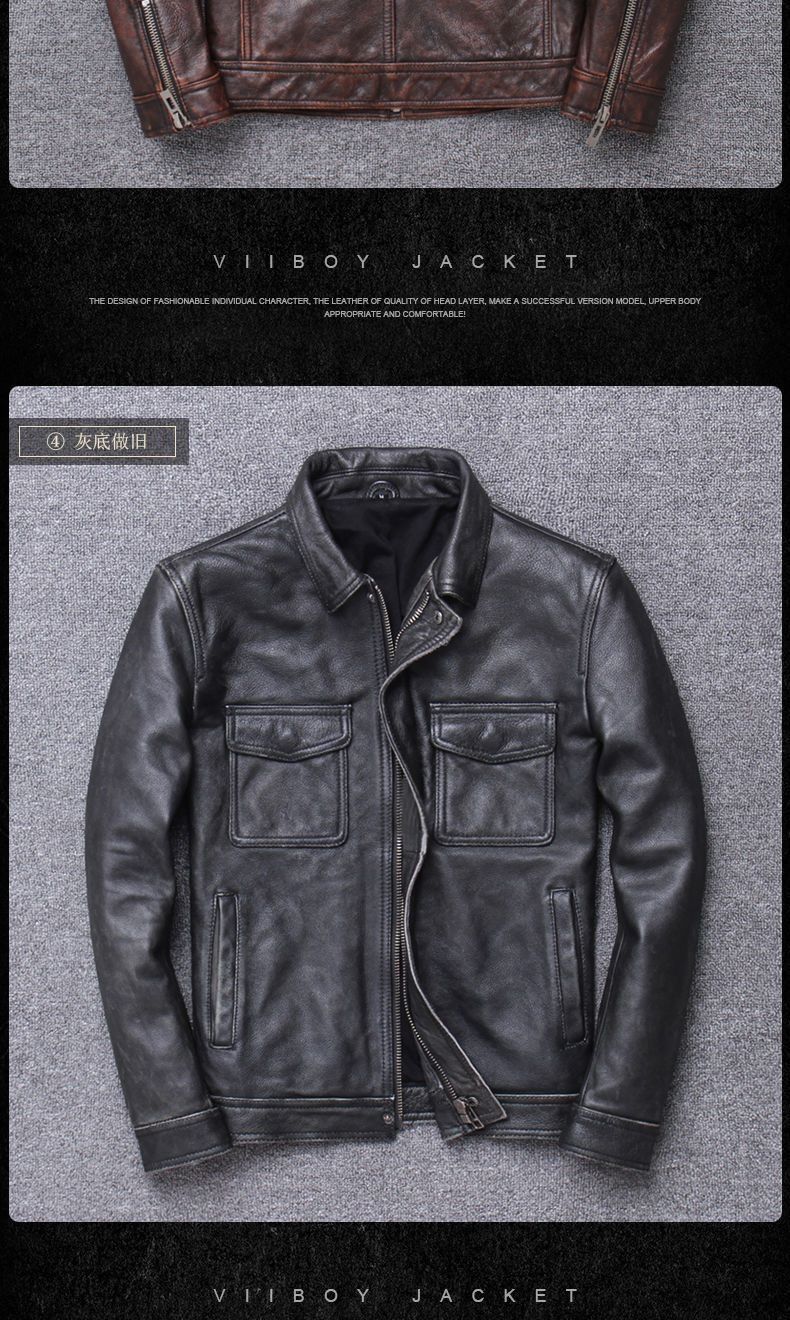 남성용 신상 소가죽 패턴 라펠 오토바이 가죽 자켓, 진짜 가죽 아미 카키 캐주얼 디스트레스드 레트로 가죽 자켓스토어 가기