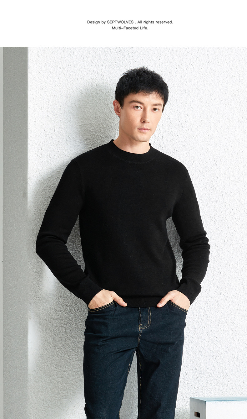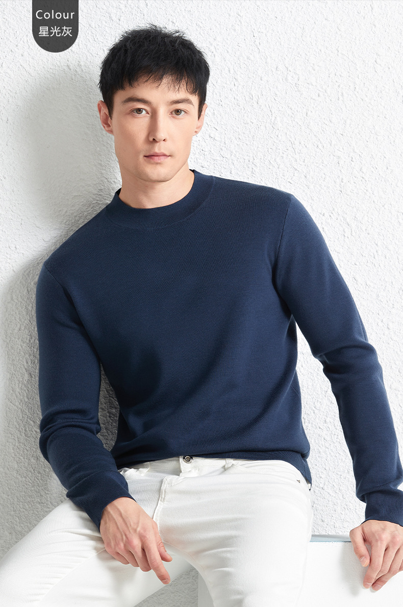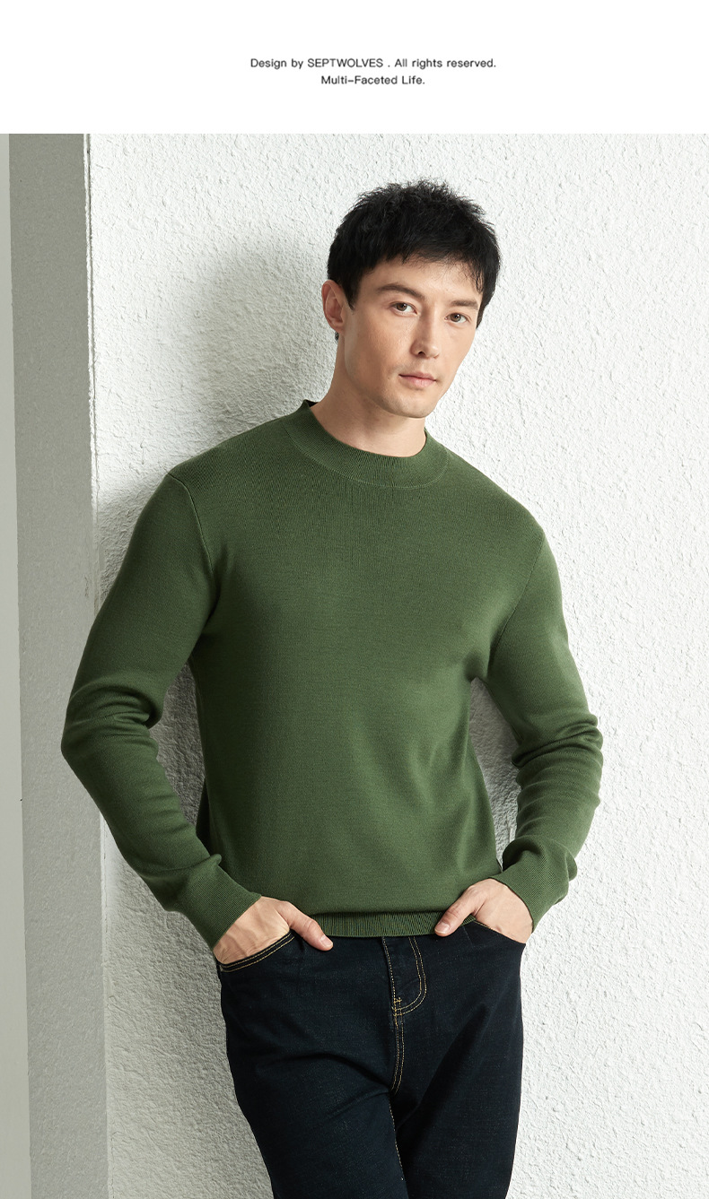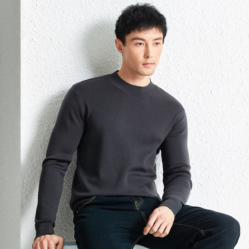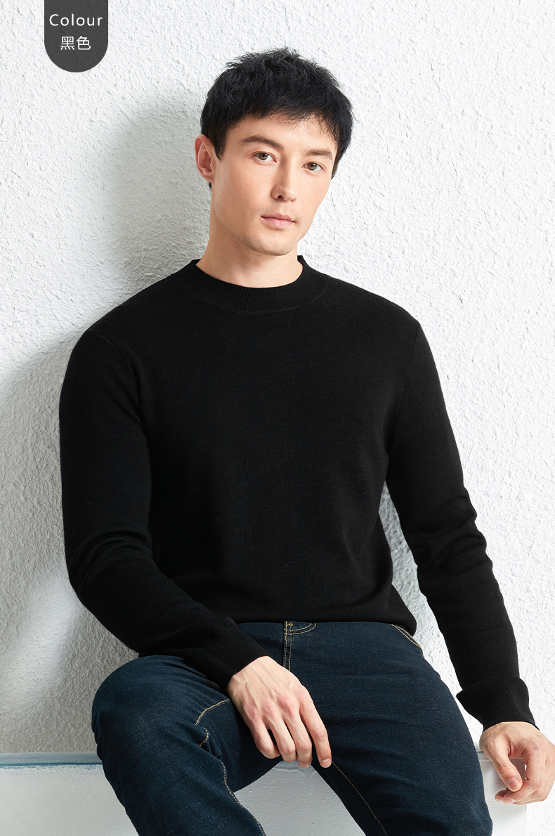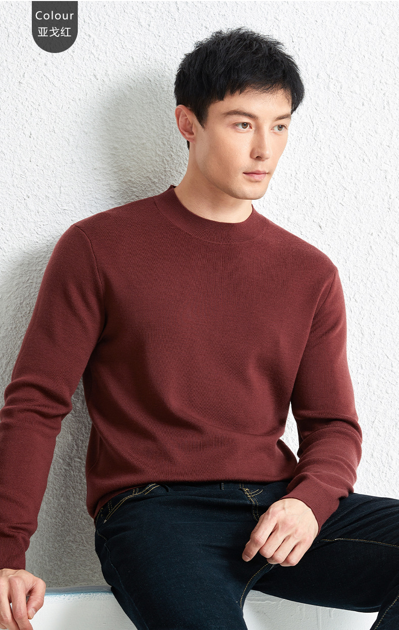 가을과 겨울 고급 모조 양모 두꺼운 남성 울 스웨터 양면 니트 기계 빨 단색 중년 및 젊은 품질 울 스웨터