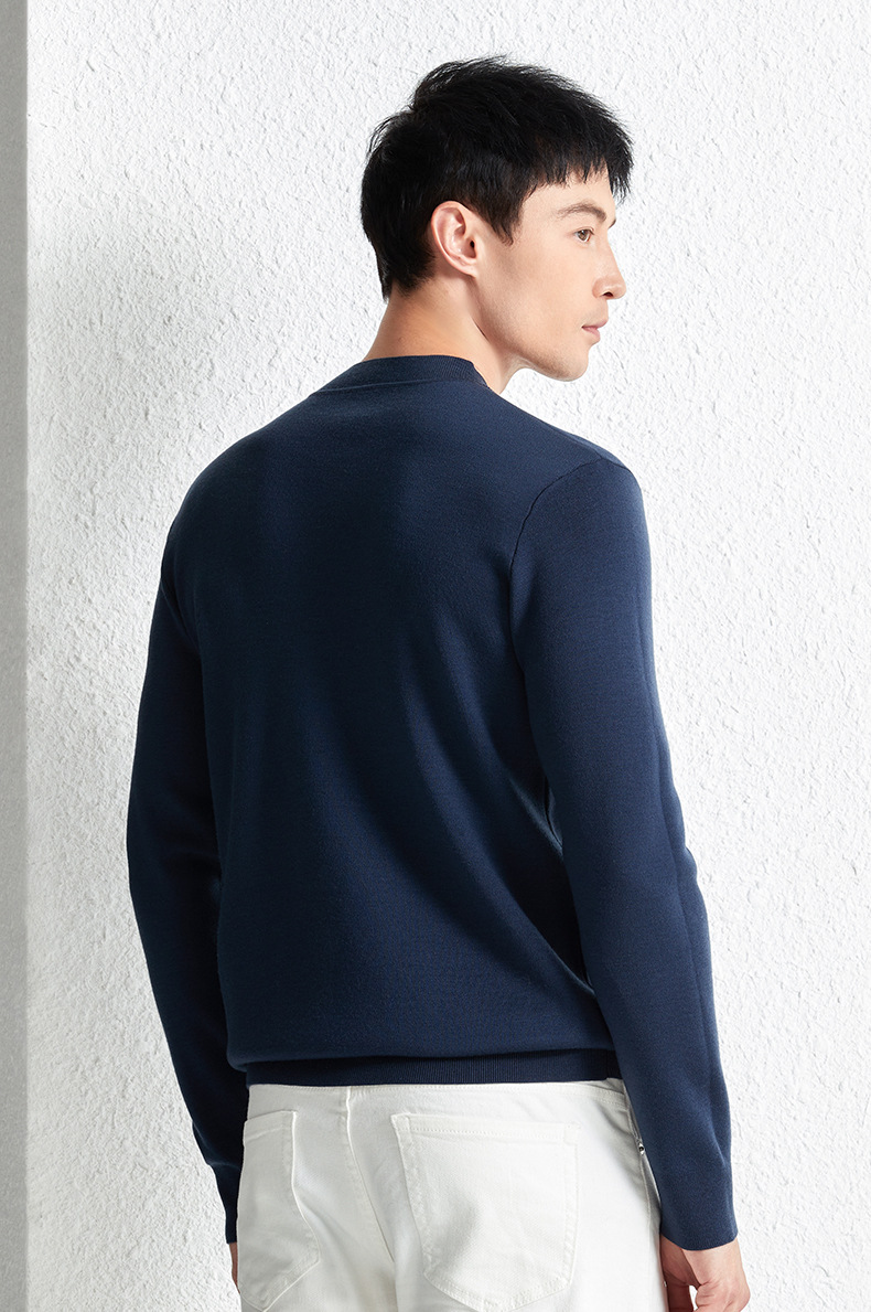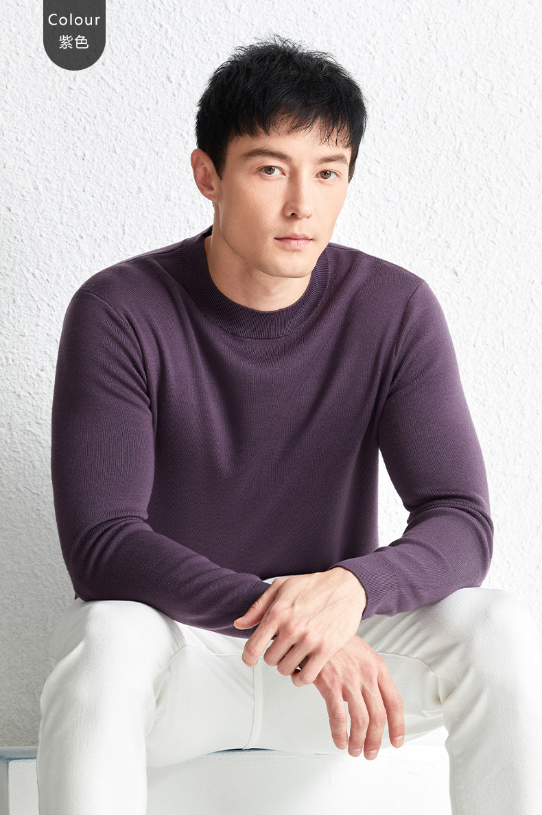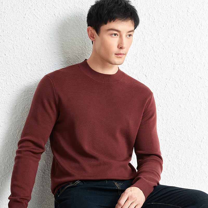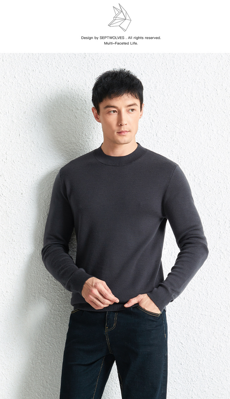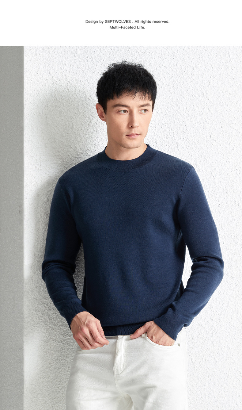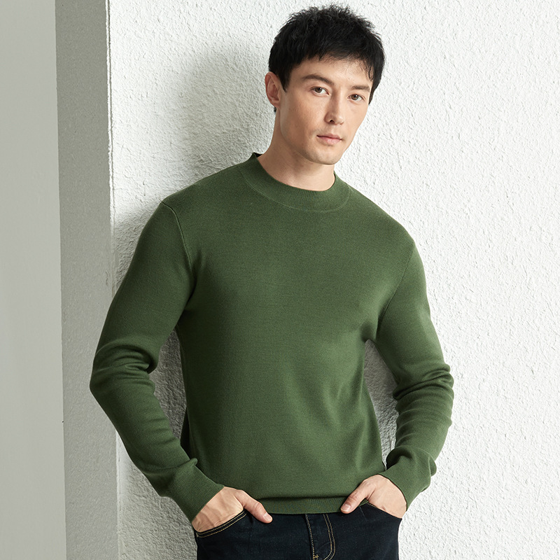 가을과 겨울 고급 모조 양모 두꺼운 남성 울 스웨터 양면 니트 기계 빨 단색 중년 및 젊은 품질 울 스웨터