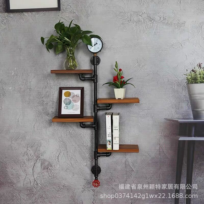 크로스 국경 산업 공기 파이프 벽 철 랙 레트로 미국 바 벽 장식 벽 단단한 나무 책장
