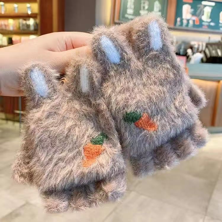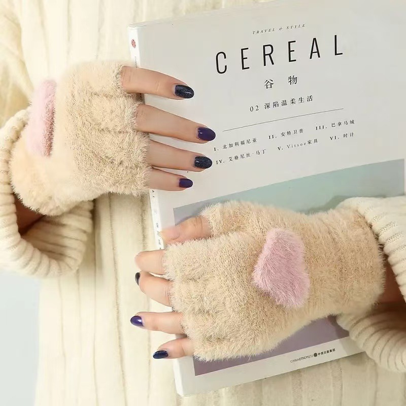 가을과 겨울 여성용 따뜻한 장갑 학생용 한국식 귀여운 기모 두꺼운 사이클링 다섯 손가락 방한 터치 스크린 면 장갑