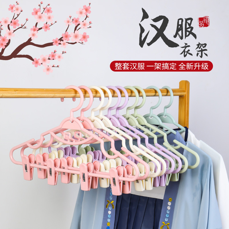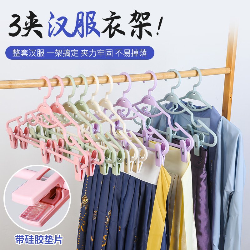Hanfu 의류 랙 통합 다기능 걸이 세트 원활한 기숙사 스커트 클립 일체형 미끄럼 방지 걸이 바지 클립