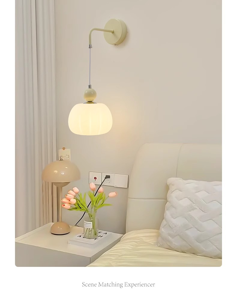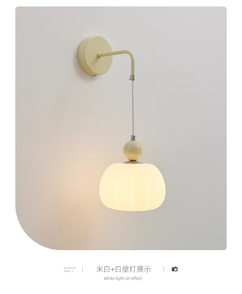 크림 스타일 어린이 방 벽 램프 북유럽 침실 침대 옆 벽 램프 복도 램프 창조적 인 호박 거실 식당 램프
