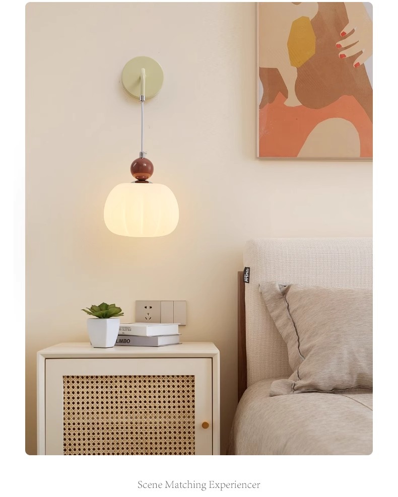 크림 스타일 어린이 방 벽 램프 북유럽 침실 침대 옆 벽 램프 복도 램프 창조적 인 호박 거실 식당 램프스토어 가기