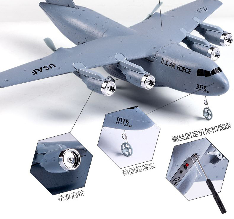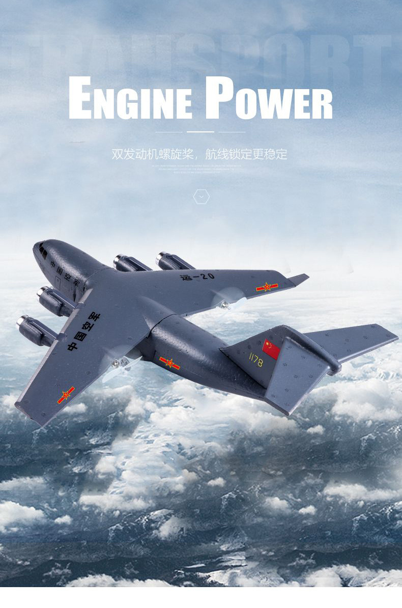 중국 군사 수송 항공기 수송 20 고정 날개 원격 제어 글라이더 2.4g 원격 제어 항공기 미국 C17 모델