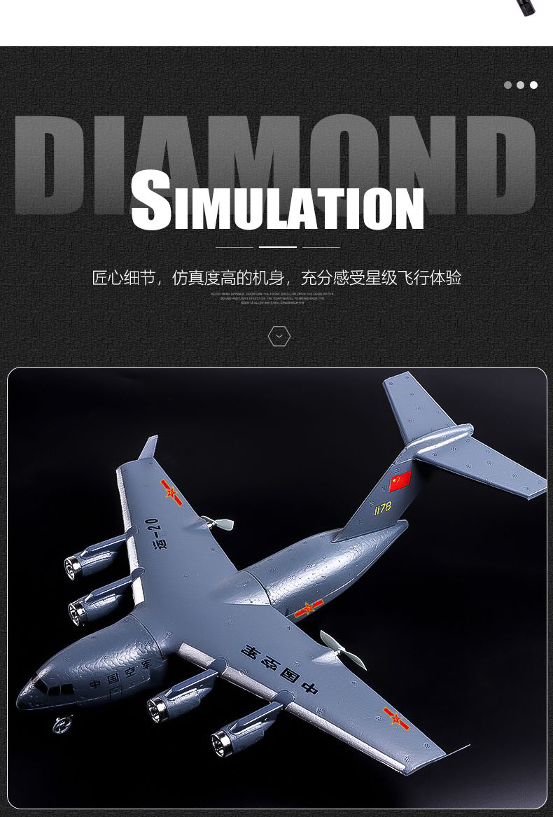 중국 군사 수송 항공기 수송 20 고정 날개 원격 제어 글라이더 2.4g 원격 제어 항공기 미국 C17 모델스토어 가기