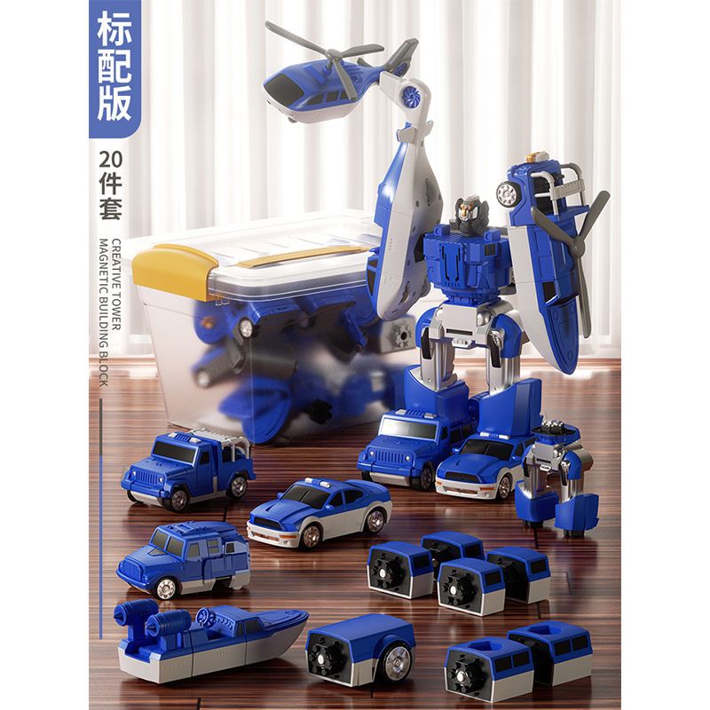 • 가변 로봇 자기 조립 경찰차 [저장 상자 세트 20]