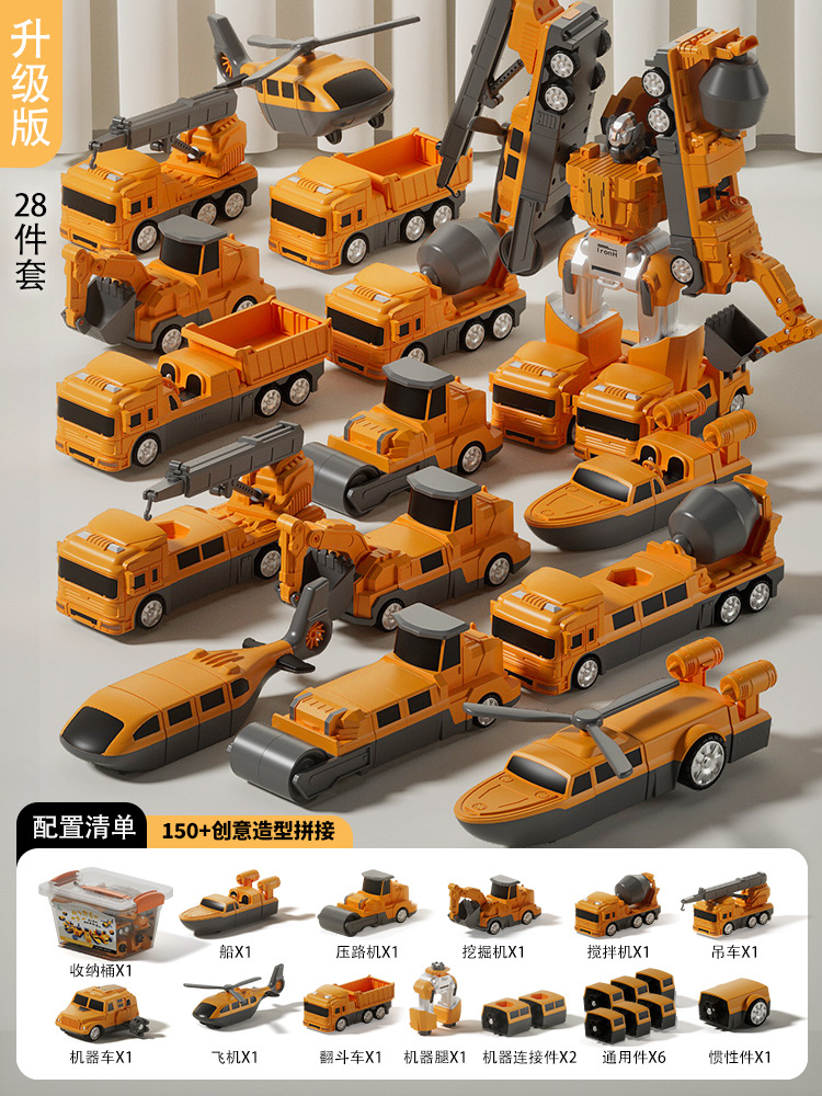 • 가변 로봇-자기 조립 엔지니어링 차량 [저장 상자 28 조각 세트]