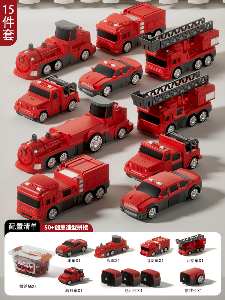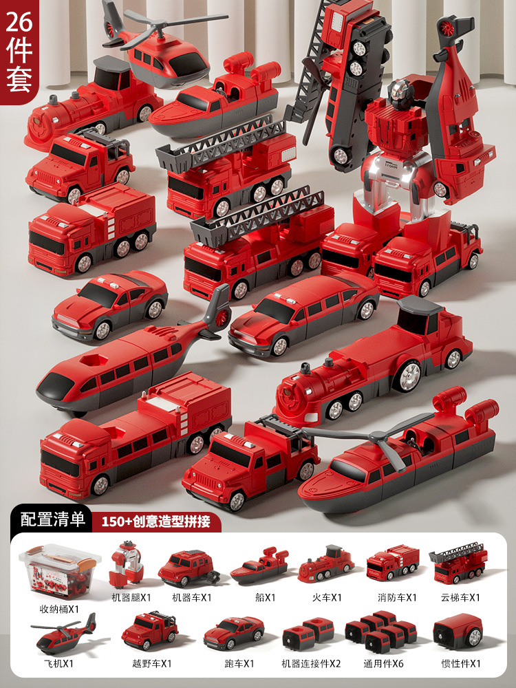 • 가변 로봇-자기 조립 소방차 [저장 상자 27 조각 세트]]