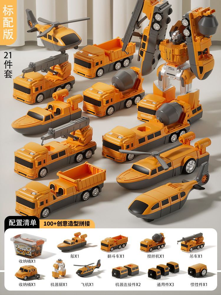 • 가변 로봇-자기 조립 엔지니어링 차량 [저장 상자 21 조각 세트]