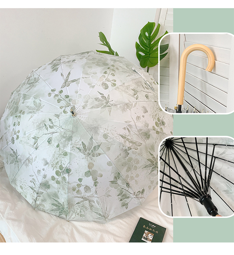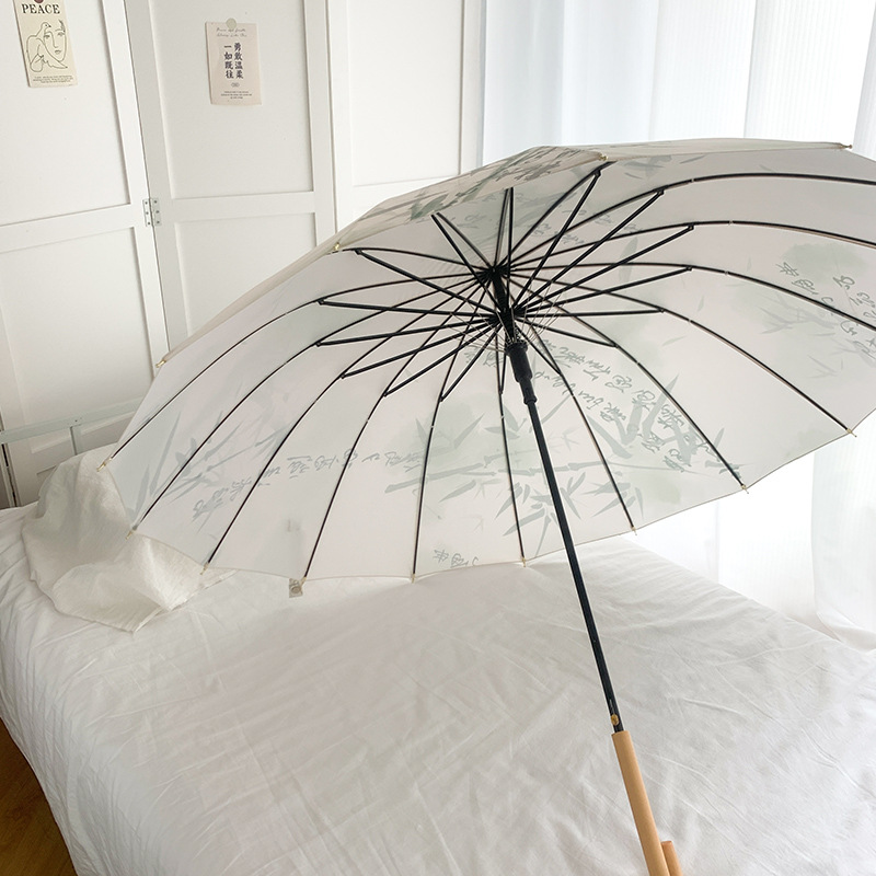 • 빈티지 크림 16 뼈 긴 손잡이 우산
