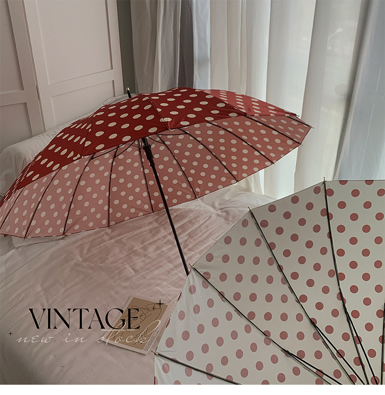 • 컬러풀한 물방울 무늬 16본 긴 손잡이 우산