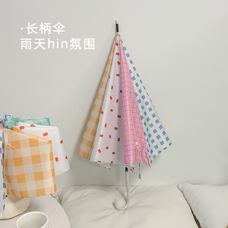 • 화화 블루 체크 8K 롱 핸들 우산