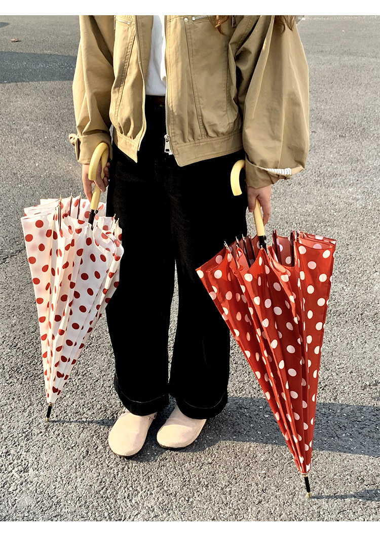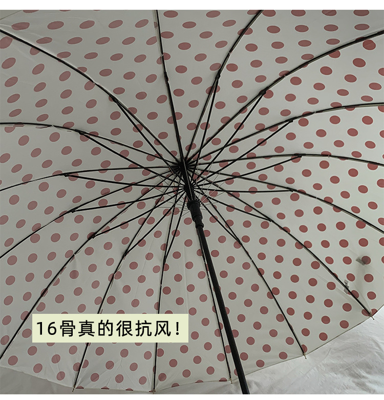 • 밀크티 폴카 도트 16본 롱 핸들 우산
