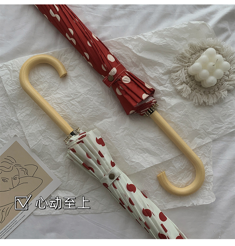 빈티지 홍콩 스타일 긴 손잡이 우산 여성용 웨이브 포인트 16-뼈 증가 높은 수준의 접이식 자동 솔리드 듀얼-맑고 비오는스토어 가기