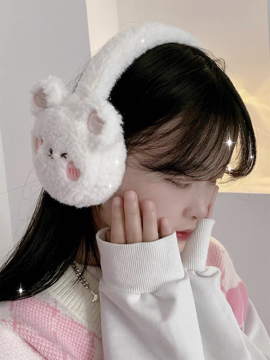 귀여운 귀여운 곰 봉제 귀마개 여성용 따뜻한 방한 사이클링 귀마개 냉동 방지 겨울 귀 온난화 귀마개 귀 모자