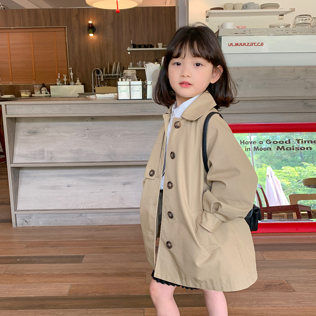 모모 아동복 여아 가을 코트 2026 봄 가을 신상 아동 영국풍 여아 중간 길이 윈드브레이커스토어 가기