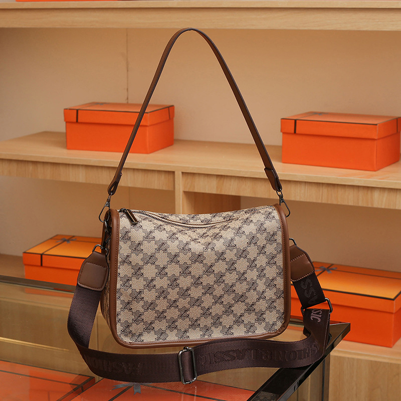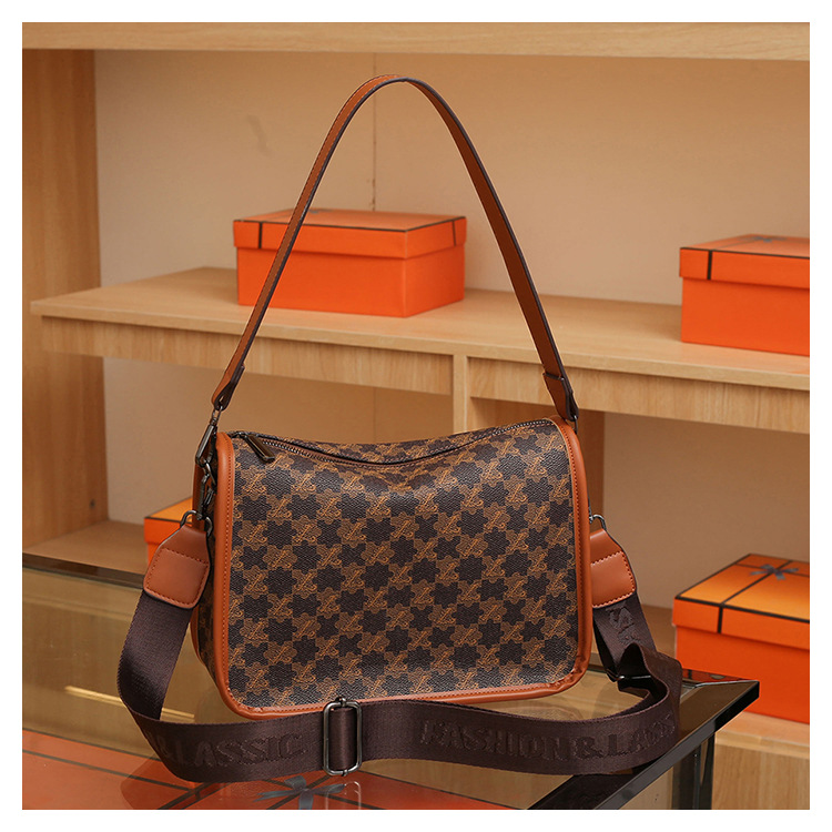 가을과 겨울 2023 프랑스 보스턴 베개 가방 새로운 패션 겨드랑이 가방 통근 어깨 가방 넓은 어깨 끈 메신저 가방