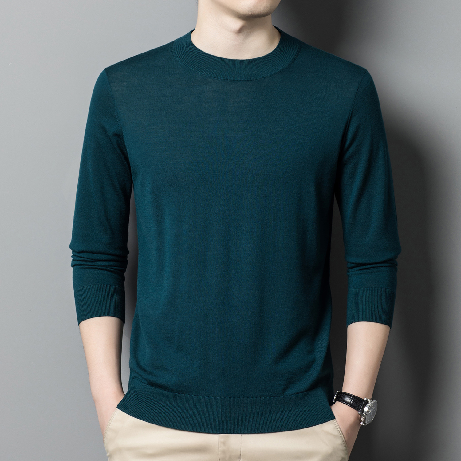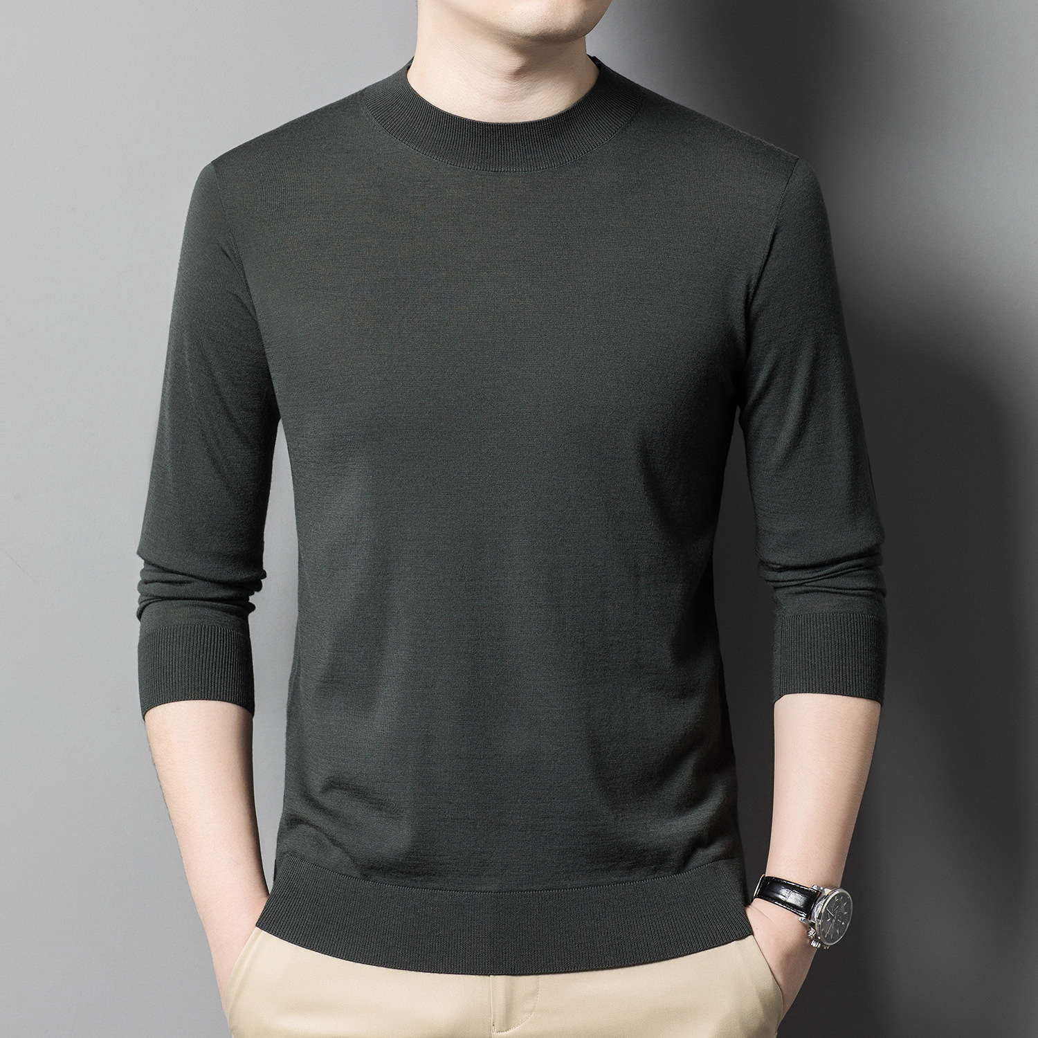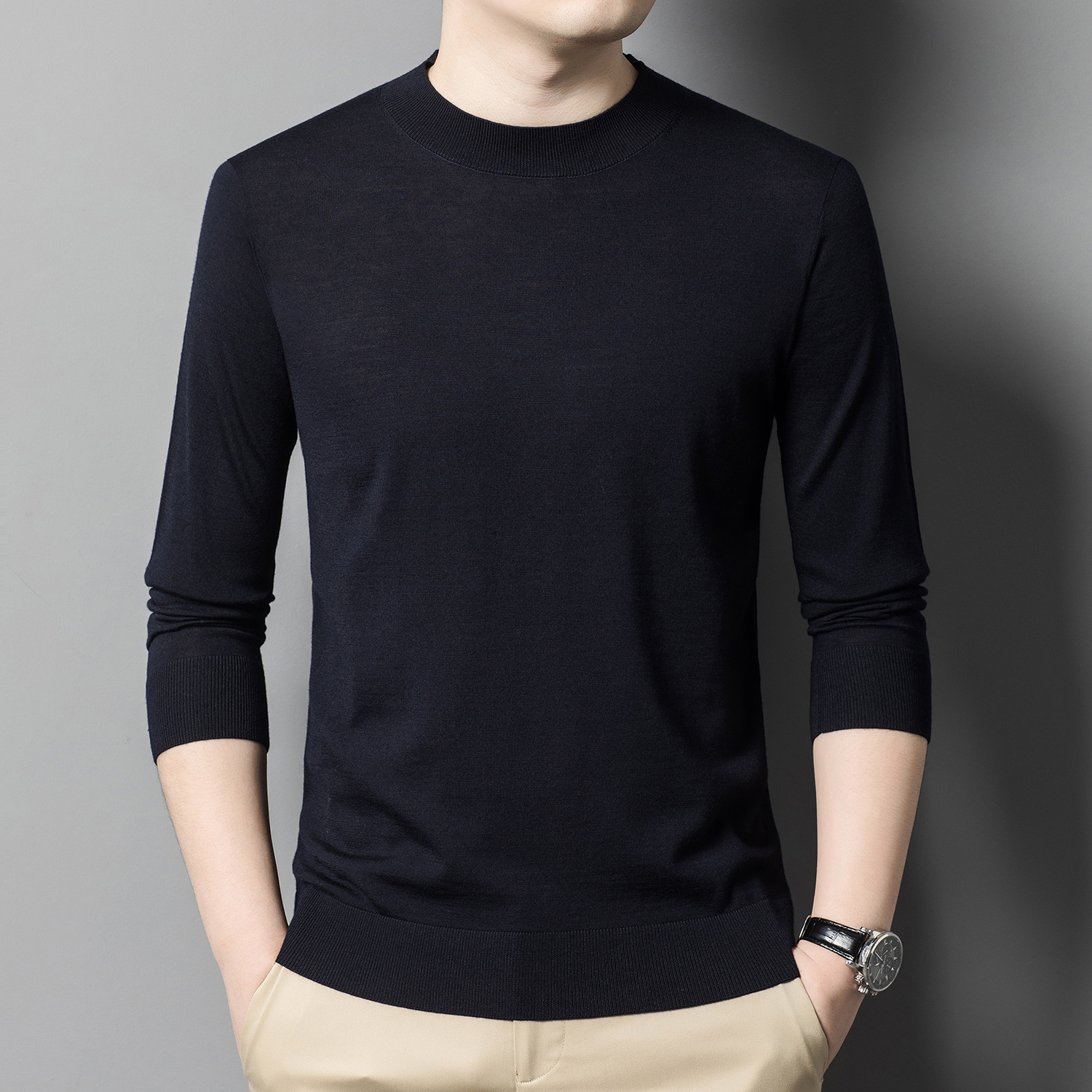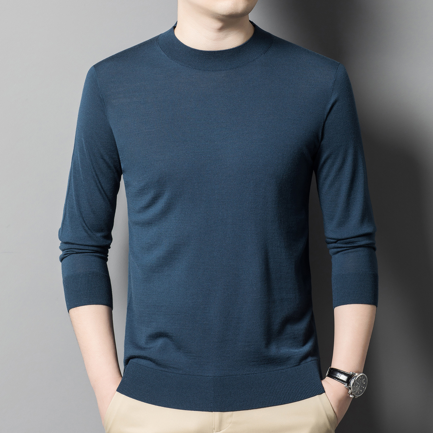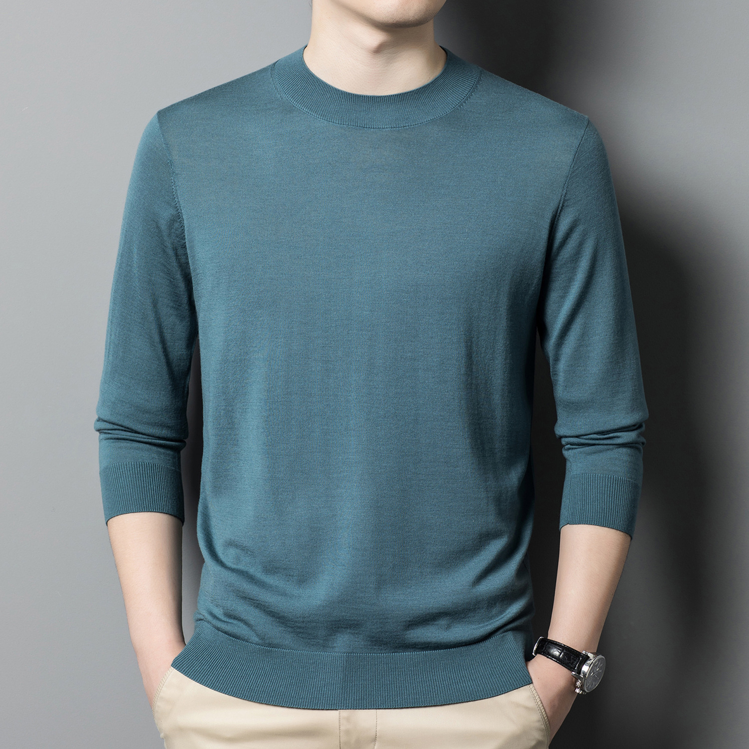 가벼운 럭셔리 고급 80 Pcl Worsted 울 니트웨어 남성용 가을 얇은 긴 소매 세미 하이 라운드 넥 베이스 스웨터스토어 가기