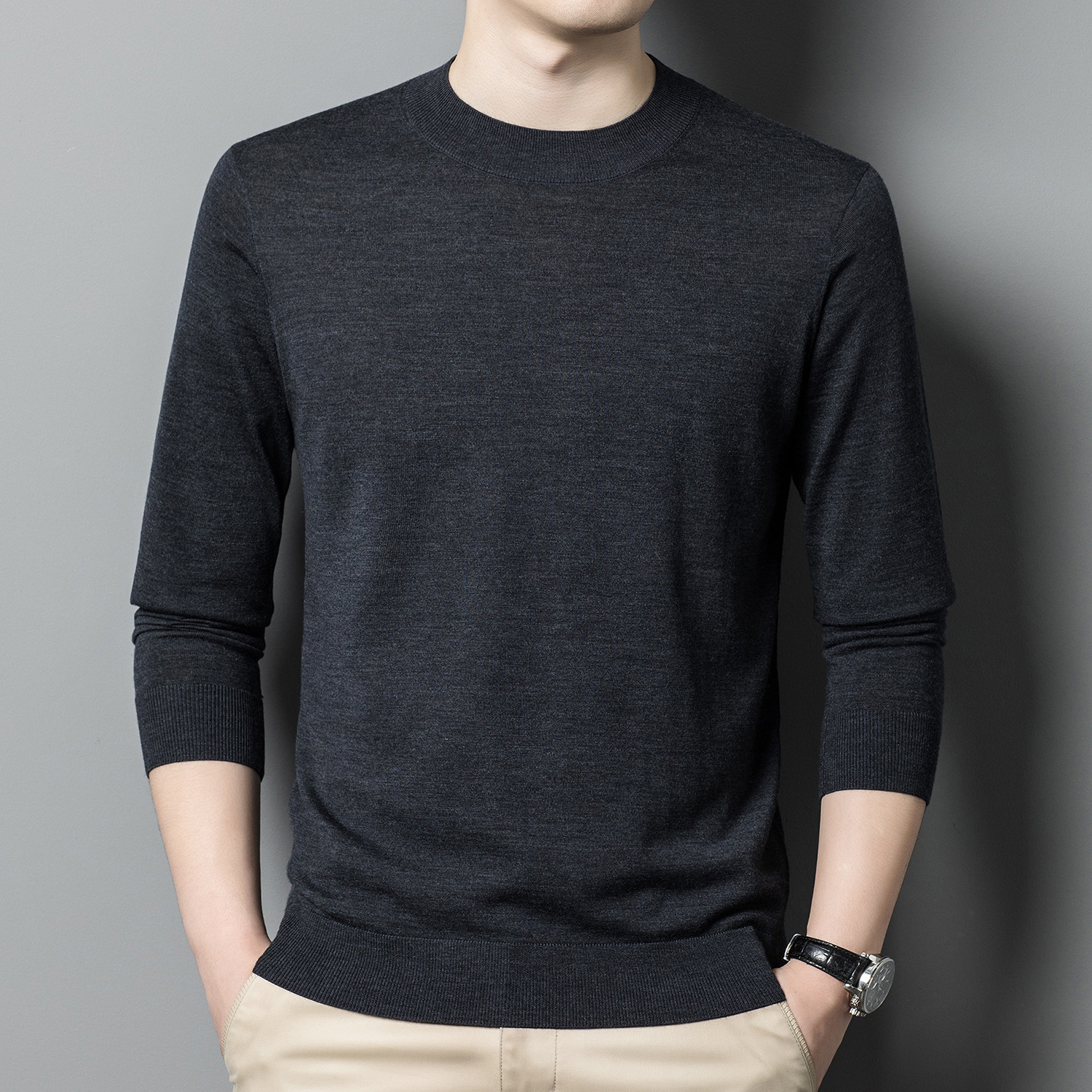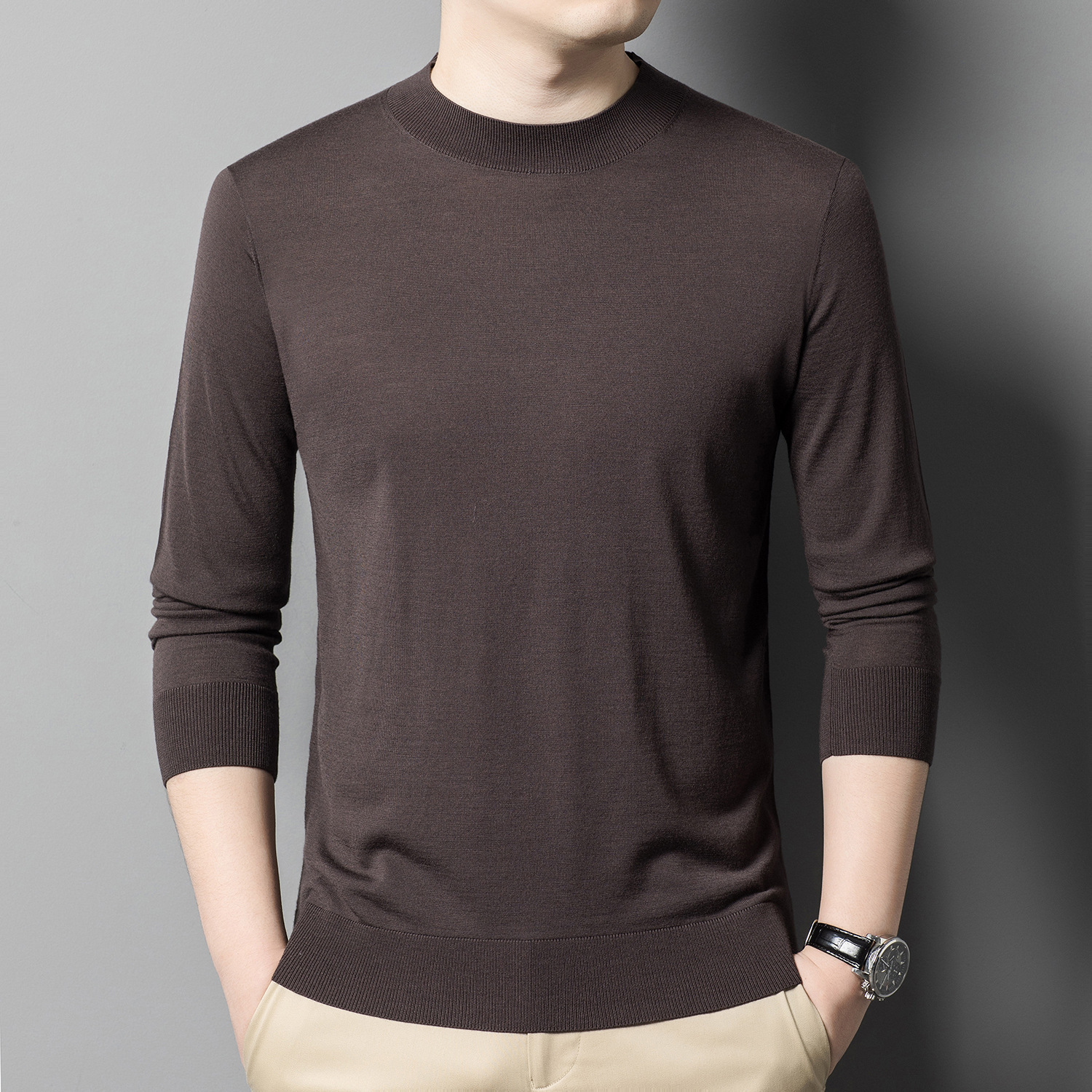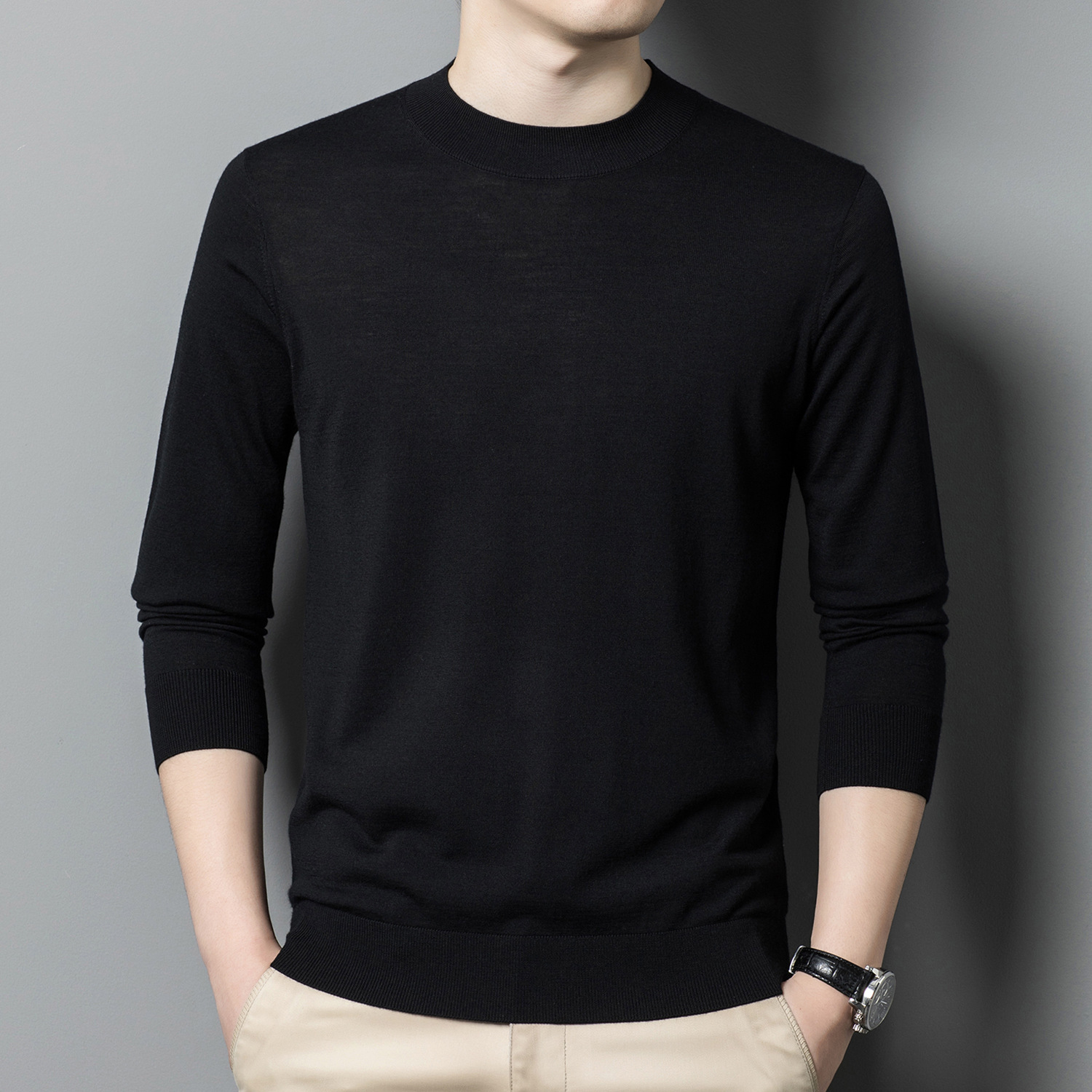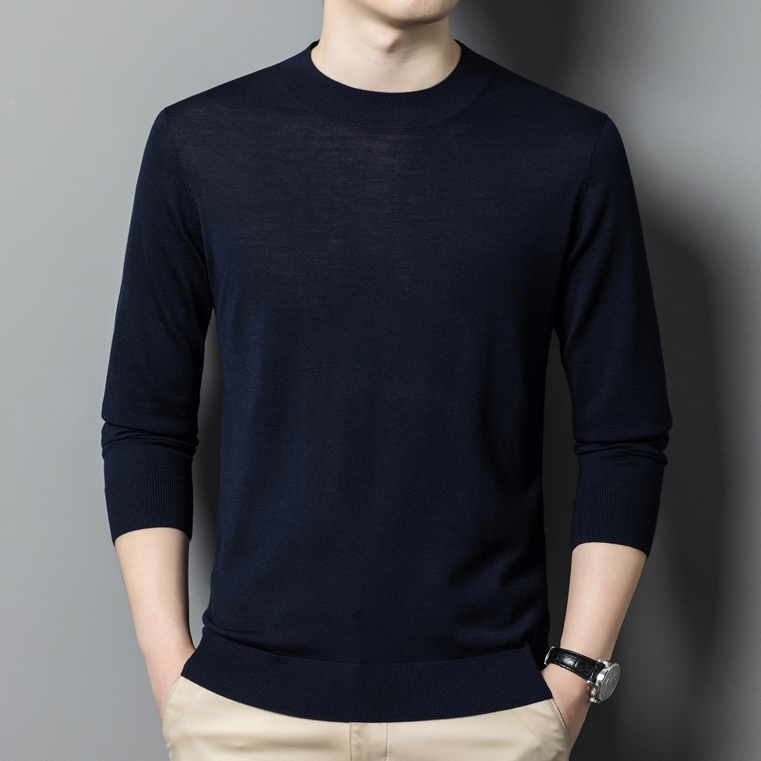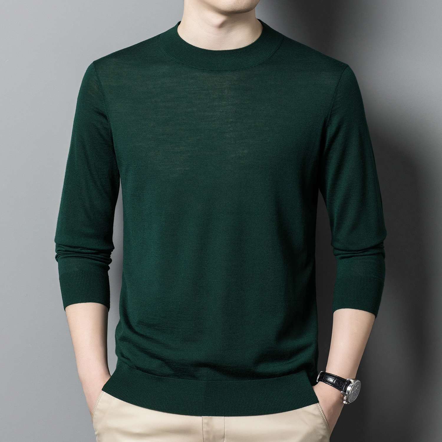가벼운 럭셔리 고급 80 Pcl Worsted 울 니트웨어 남성용 가을 얇은 긴 소매 세미 하이 라운드 넥 베이스 스웨터스토어 가기