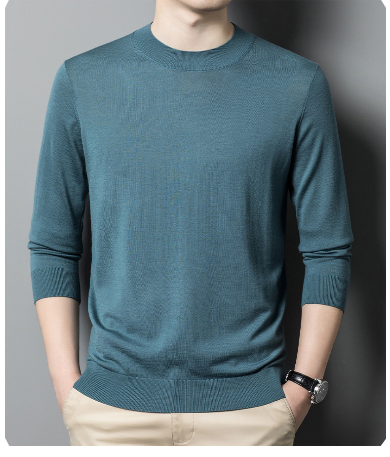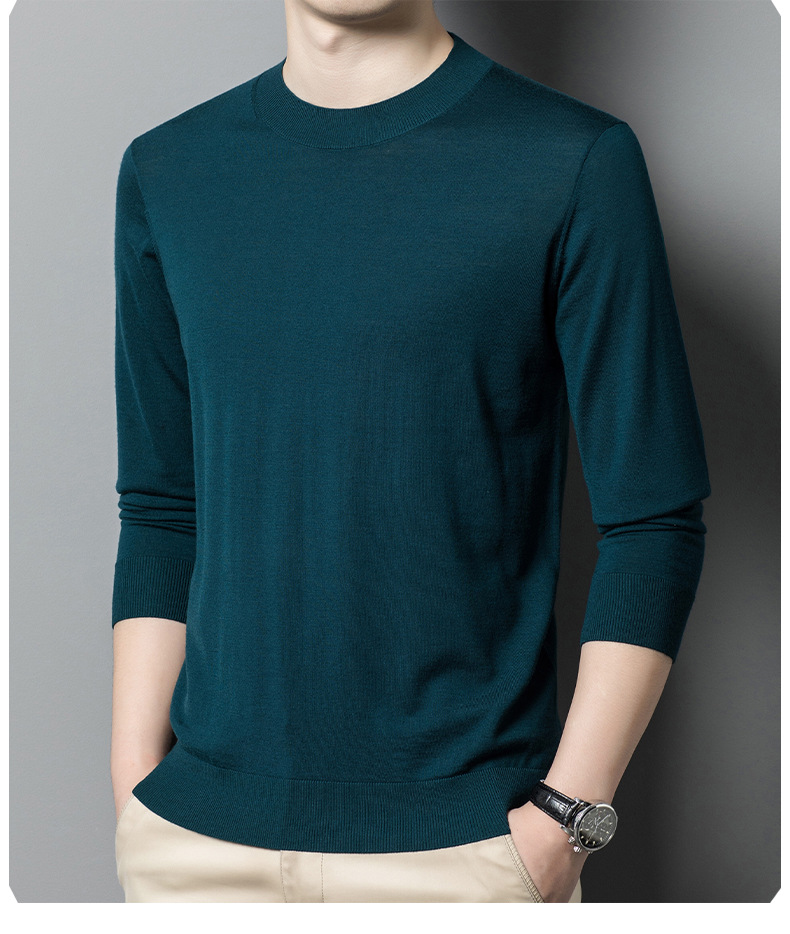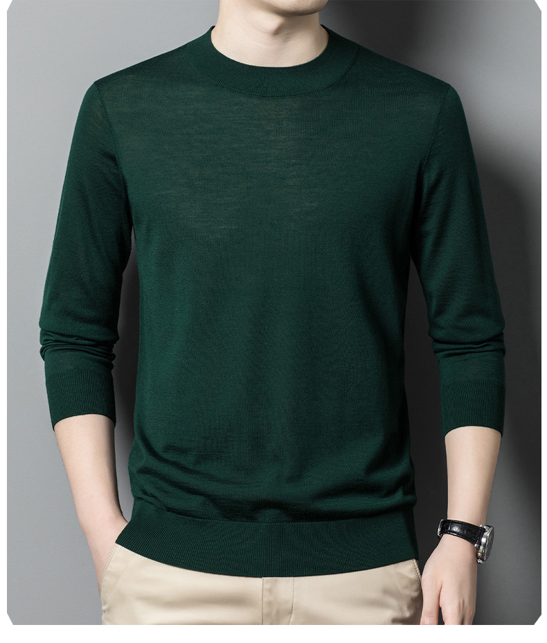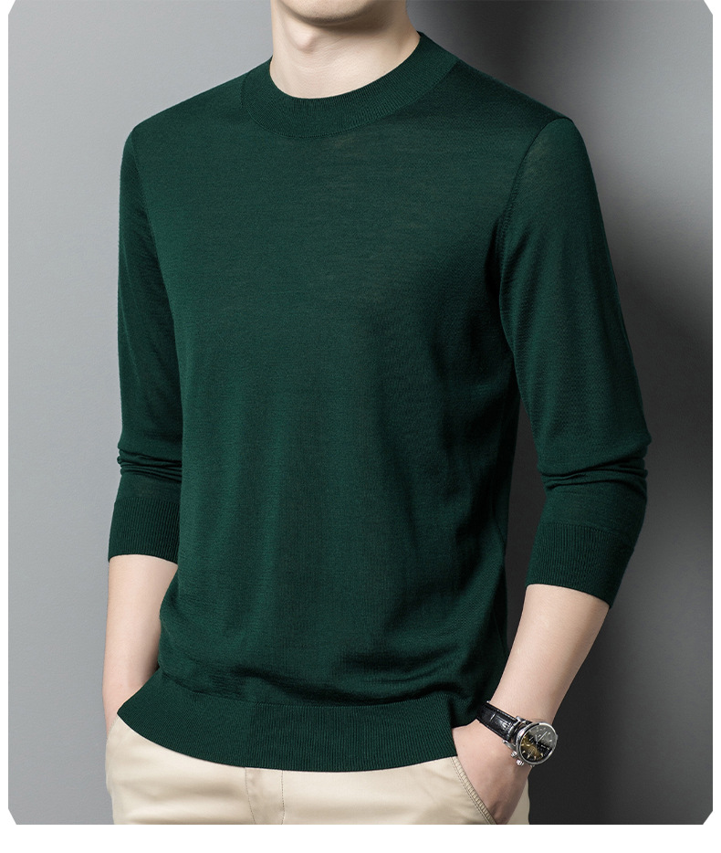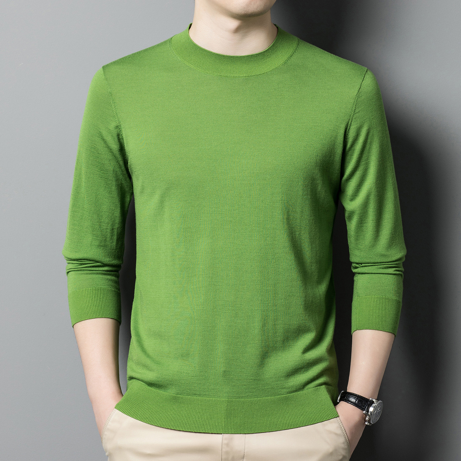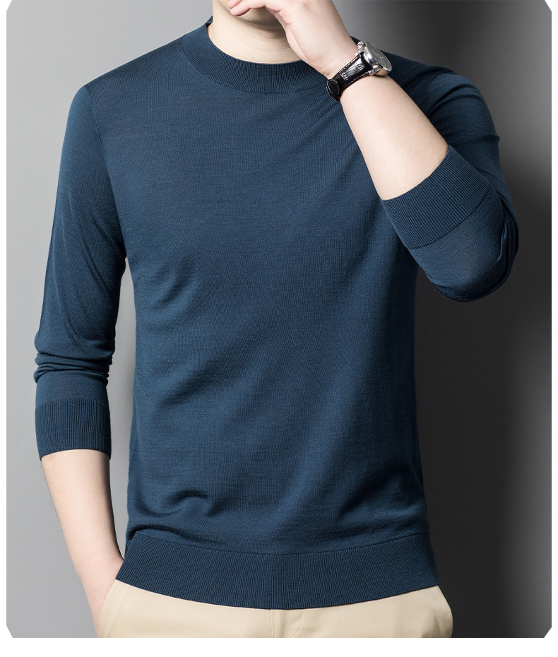 가벼운 럭셔리 고급 80 Pcl Worsted 울 니트웨어 남성용 가을 얇은 긴 소매 세미 하이 라운드 넥 베이스 스웨터스토어 가기