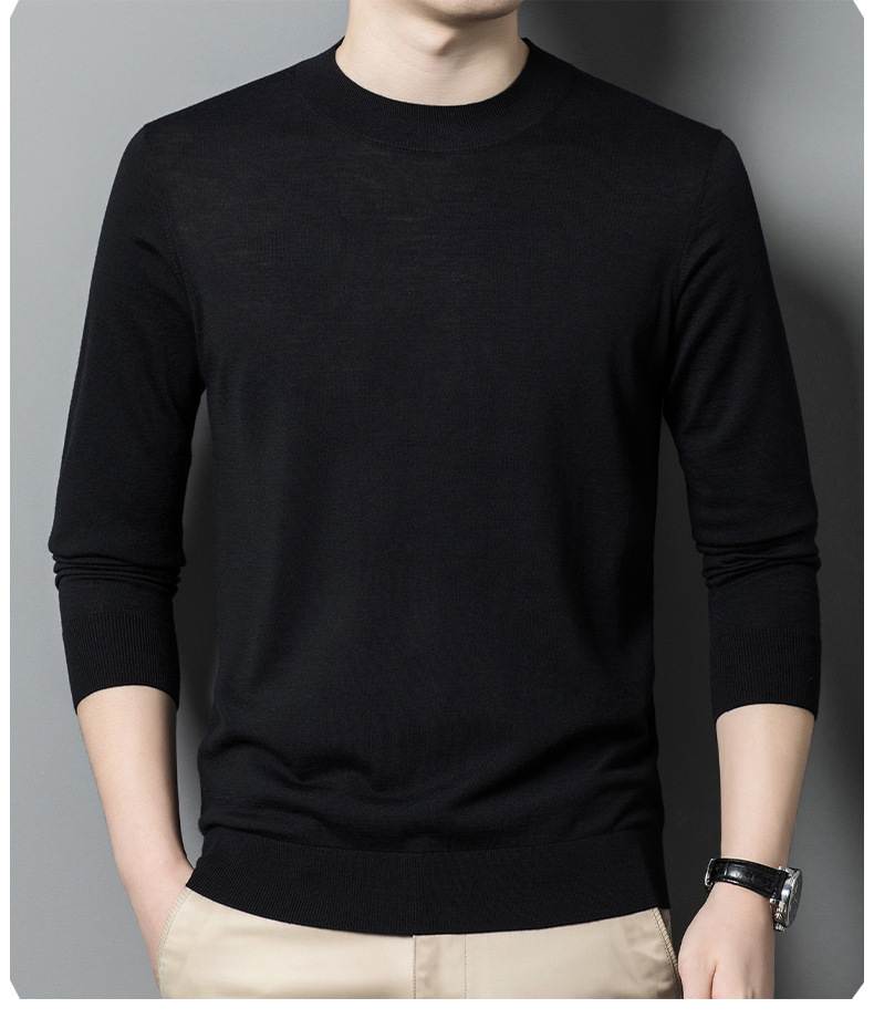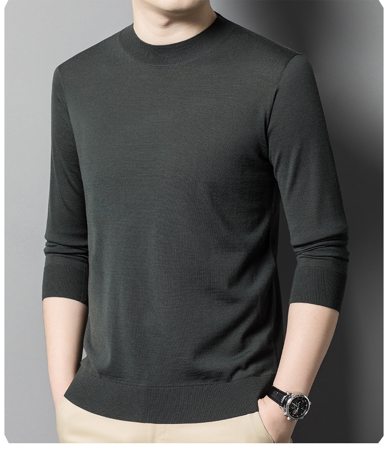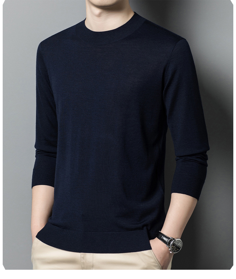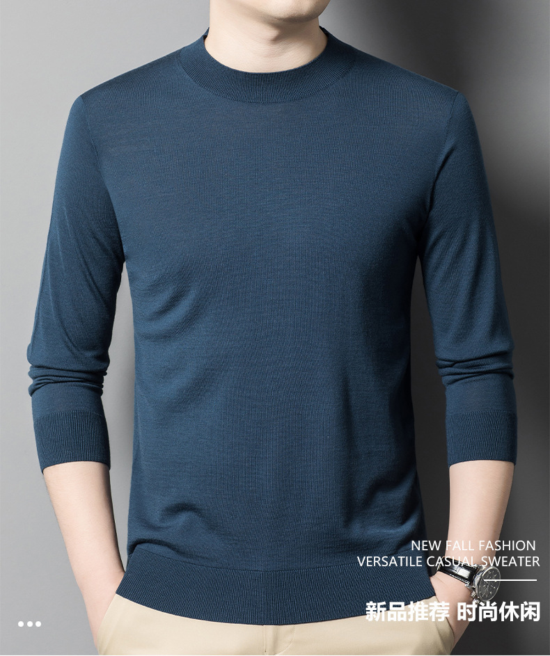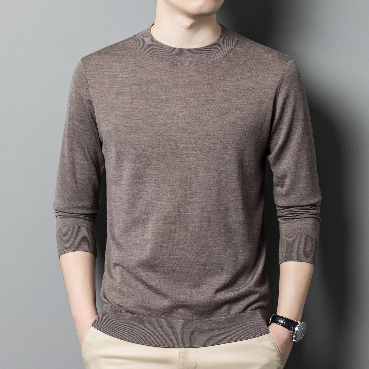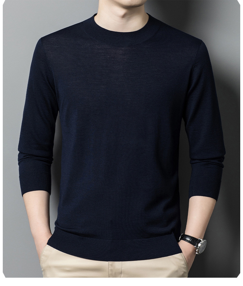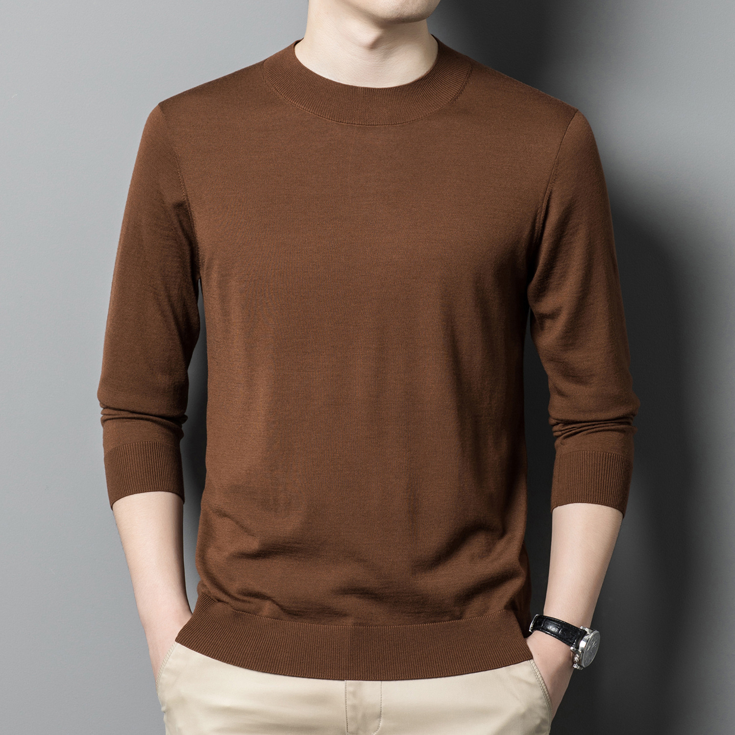 가벼운 럭셔리 고급 80 Pcl Worsted 울 니트웨어 남성용 가을 얇은 긴 소매 세미 하이 라운드 넥 베이스 스웨터스토어 가기