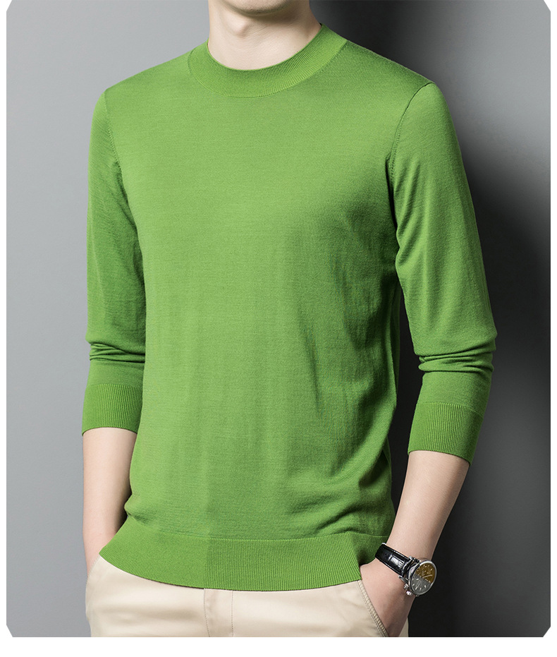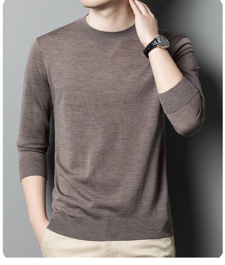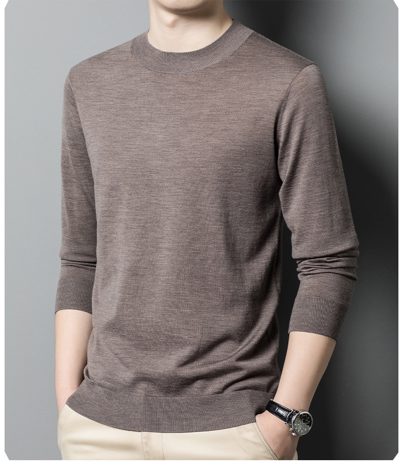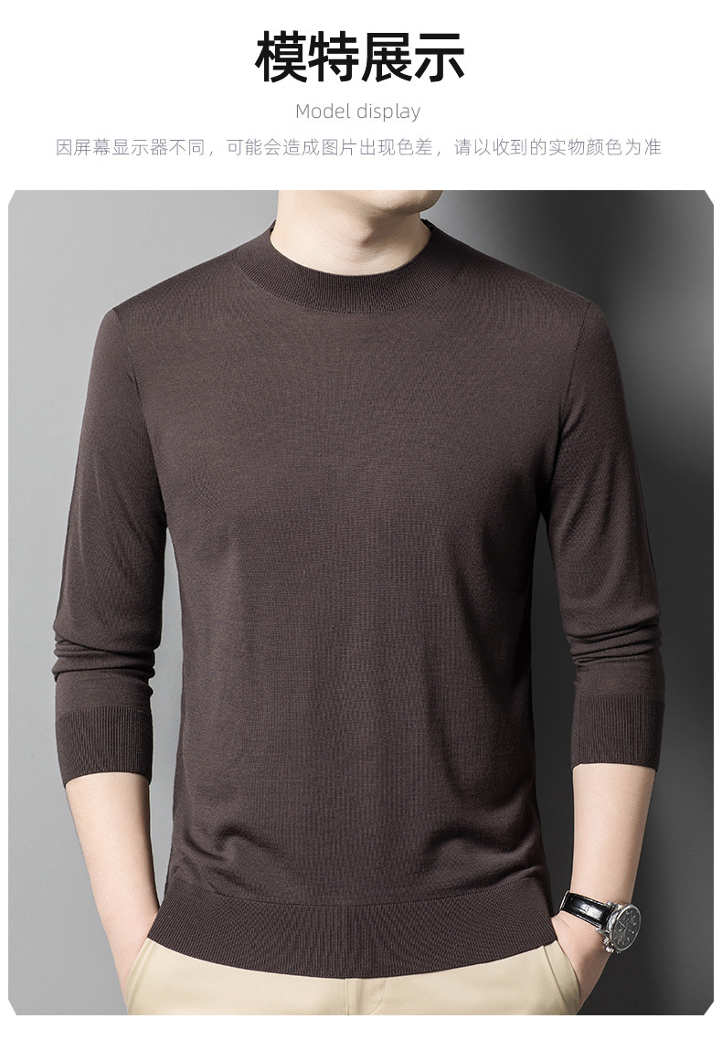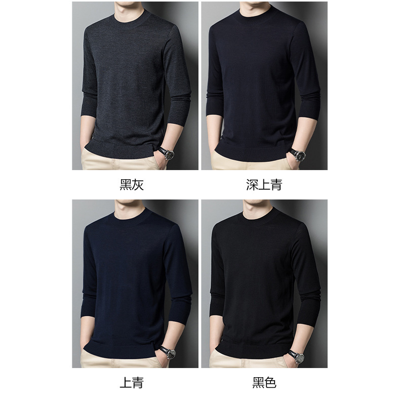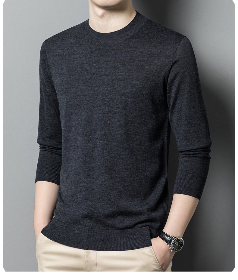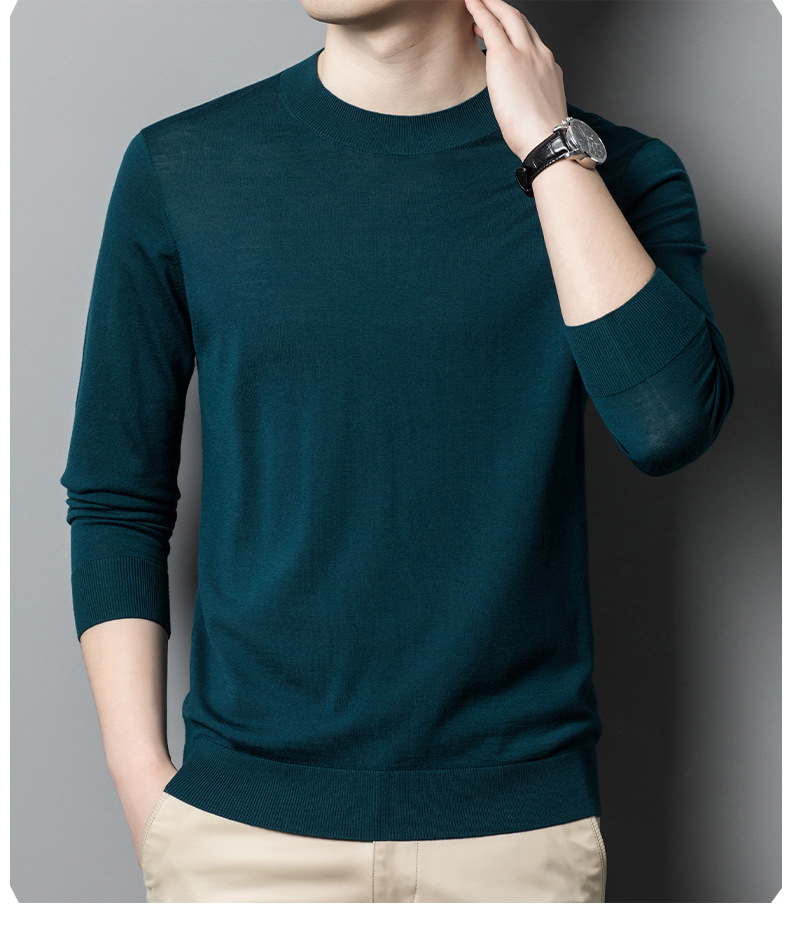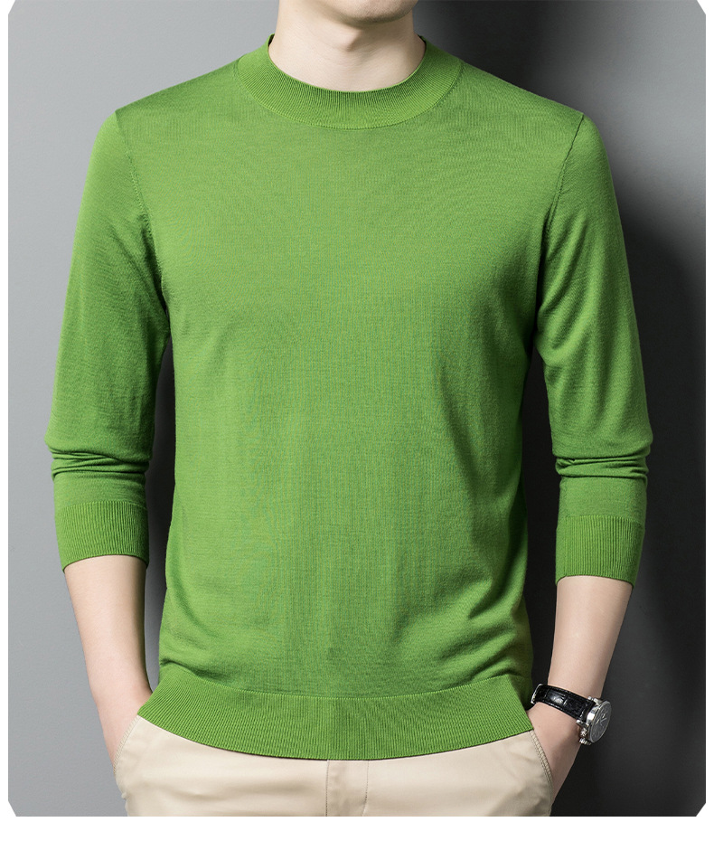 가벼운 럭셔리 고급 80 Pcl Worsted 울 니트웨어 남성용 가을 얇은 긴 소매 세미 하이 라운드 넥 베이스 스웨터스토어 가기