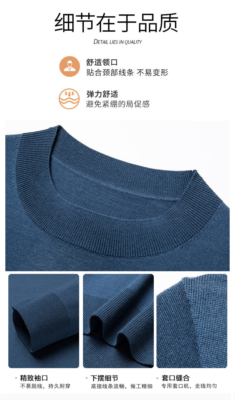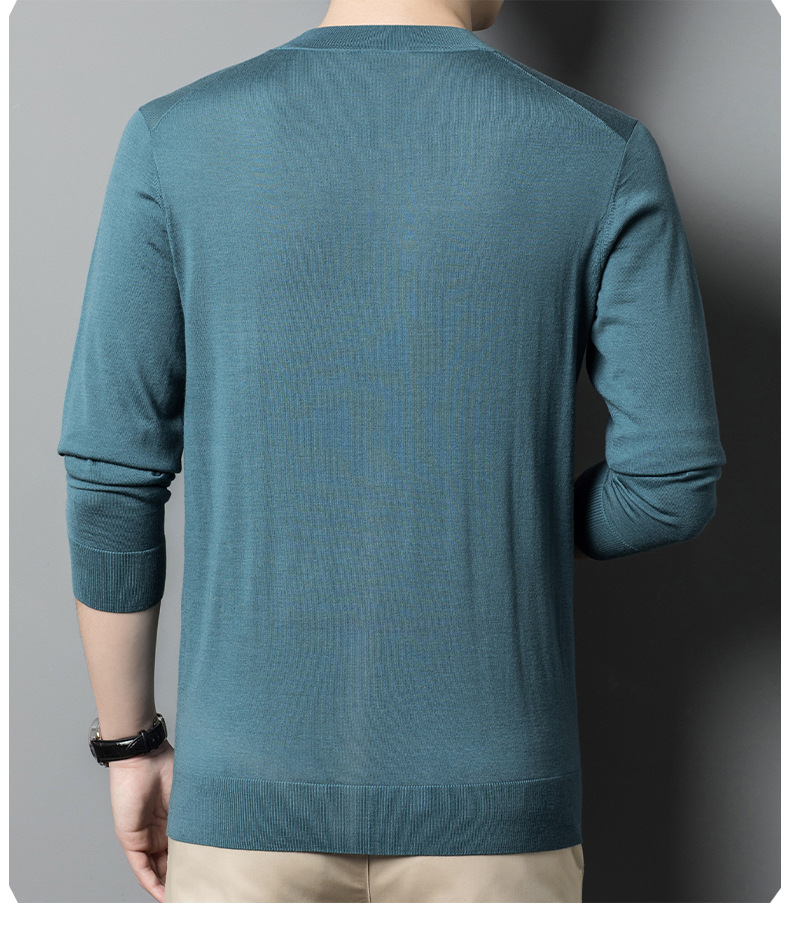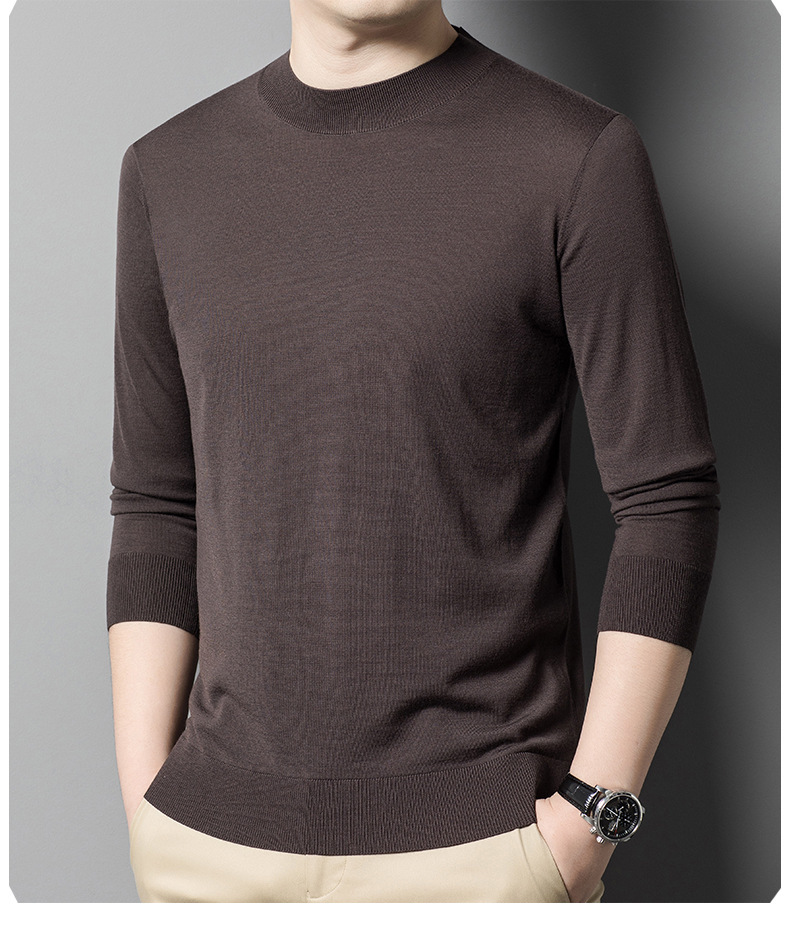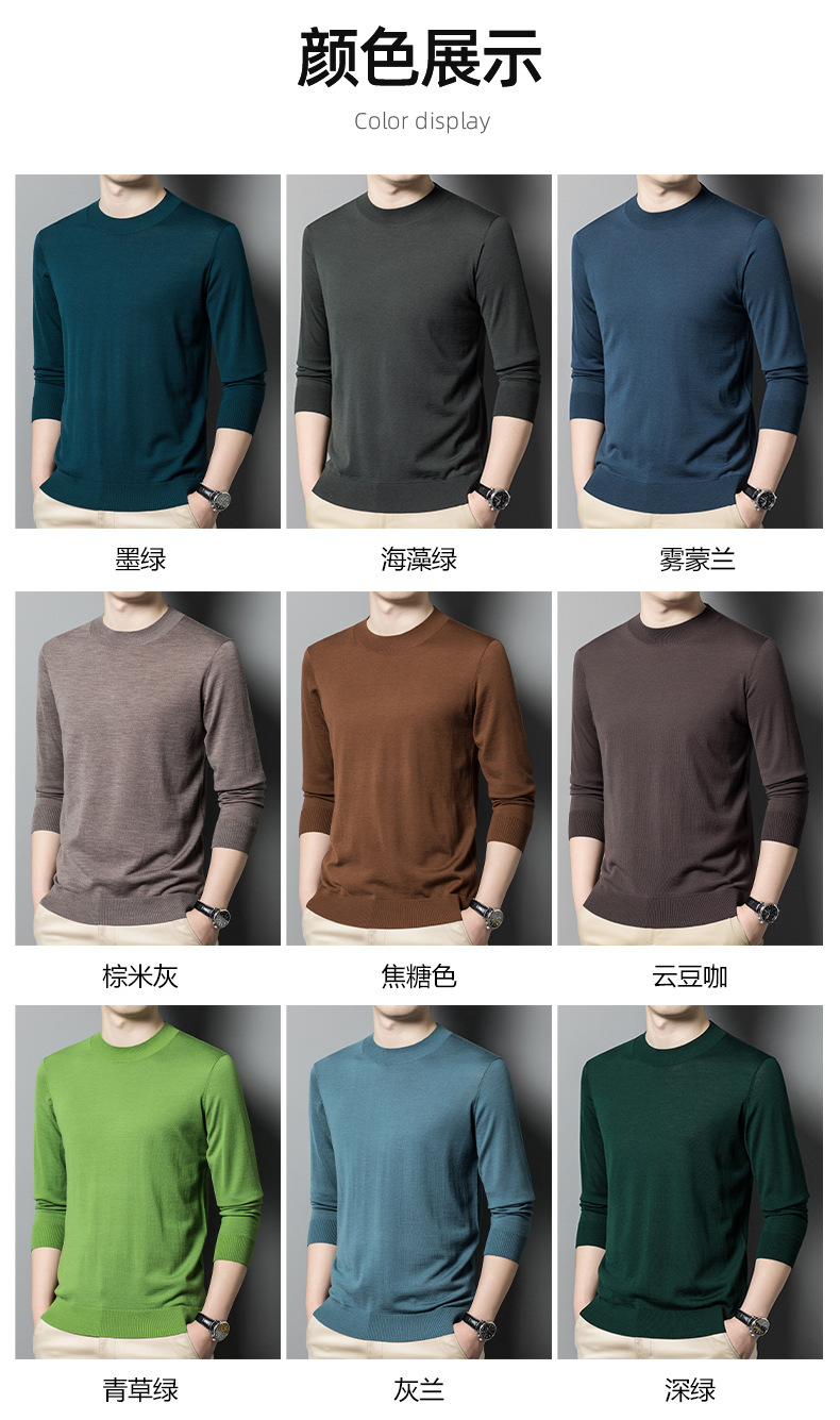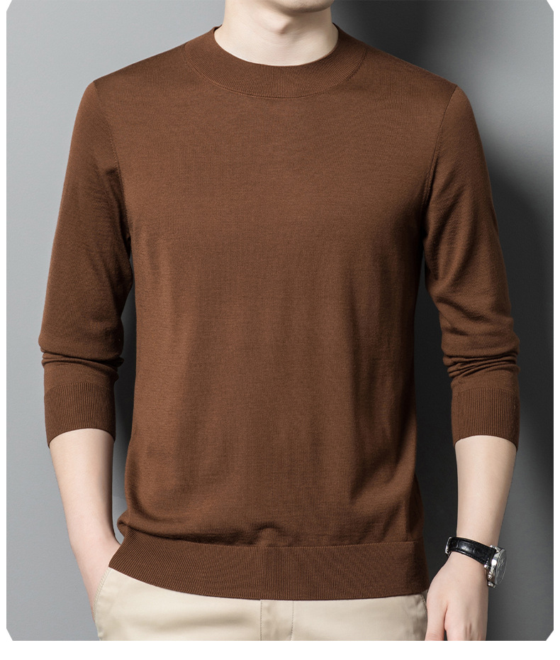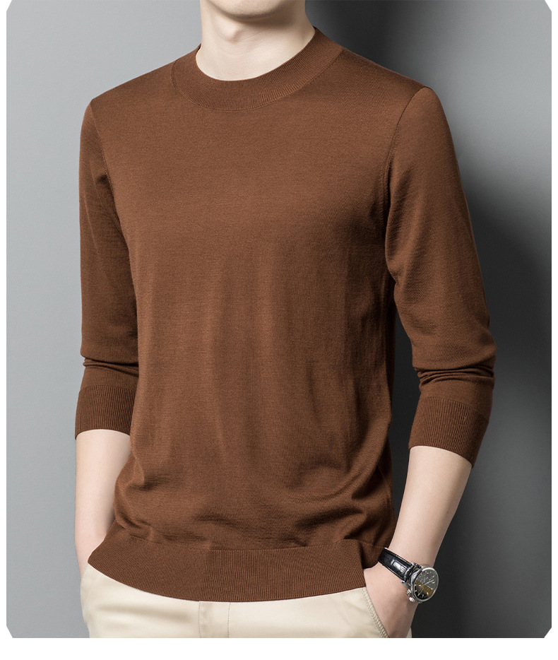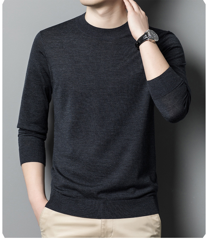 가벼운 럭셔리 고급 80 Pcl Worsted 울 니트웨어 남성용 가을 얇은 긴 소매 세미 하이 라운드 넥 베이스 스웨터스토어 가기