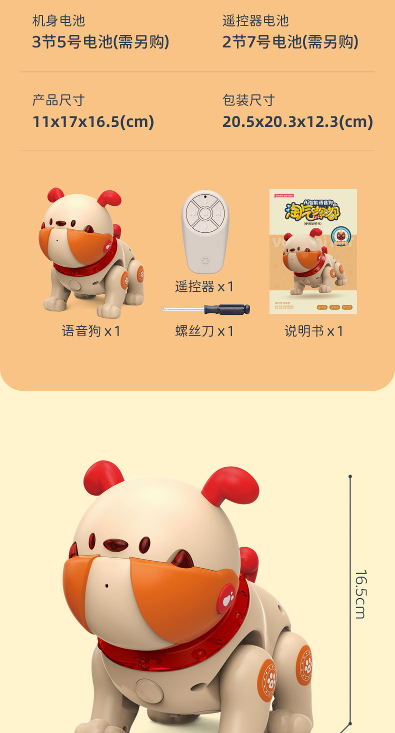 ★产品配置:机器狗1只、遥控器1个、说明书1本、螺丝刀1把