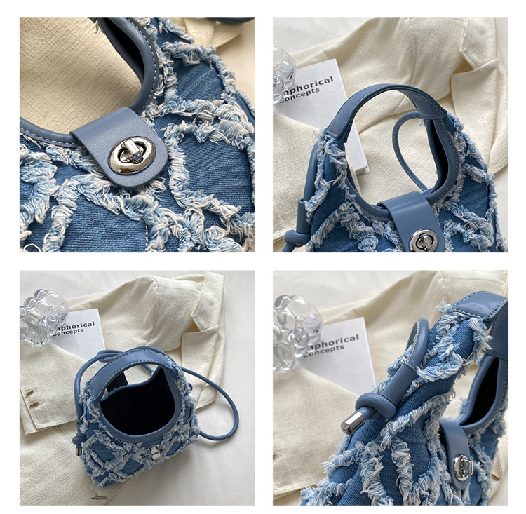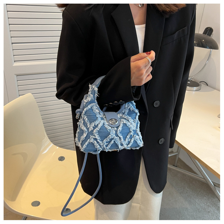 여성을 위한 틈새 인터넷 연예인 같은 스타일의 데님 가방, 마름모 술 가방, 여성을 위한 다재다능하고 패셔너블한 원숄더 크로스바디 겨드랑이 가방