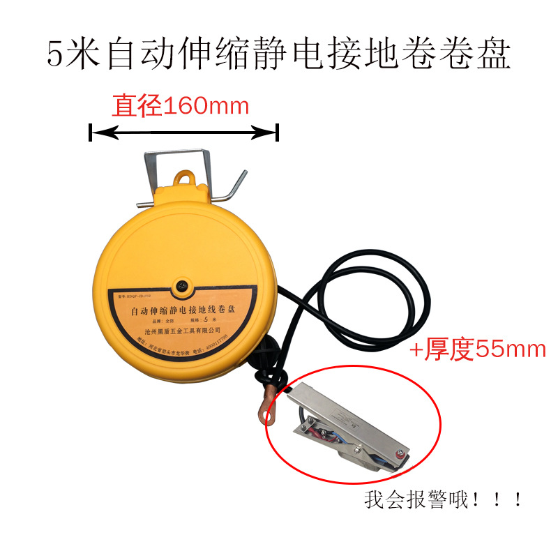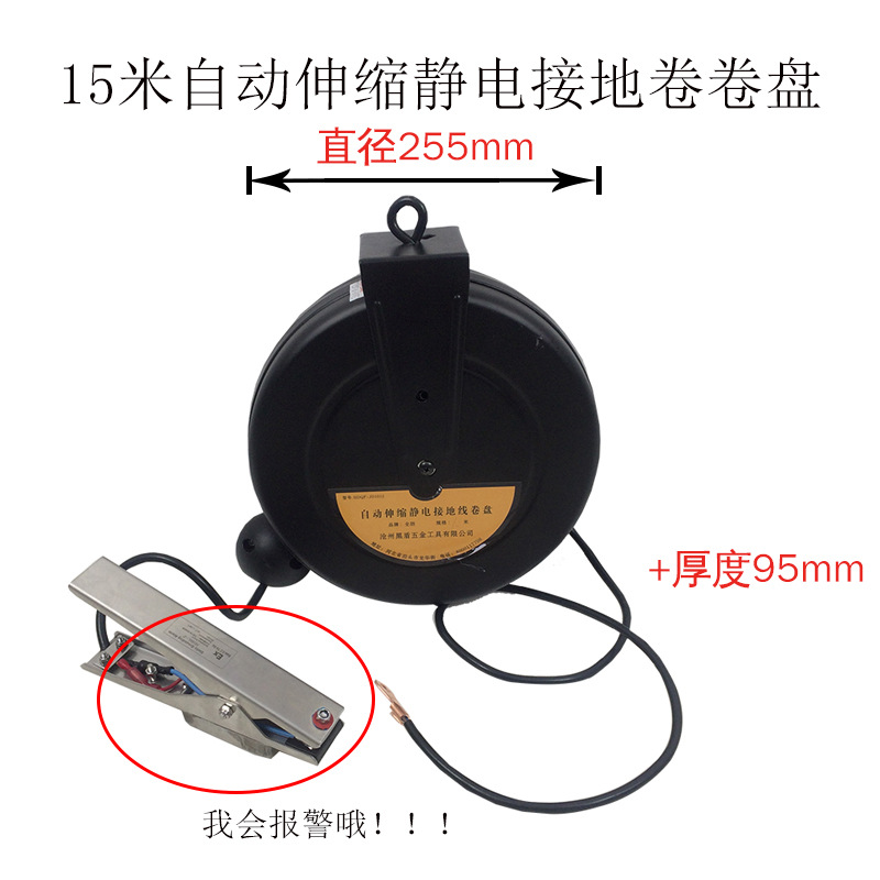 탱크 트럭 정전기 방지 접지 릴 텔레스코픽 5 m 대담한 강철 와이어 경보 기능 접지 와이어 플레이트스토어 가기