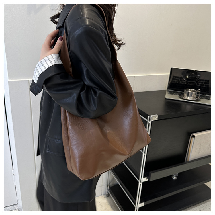 서양식 가방 통근 토트백 여성용 2023 년 뉴 패션 솔리드 컬러 텍스처 숄더백 올해의 인기 겨드랑이 가방스토어 가기