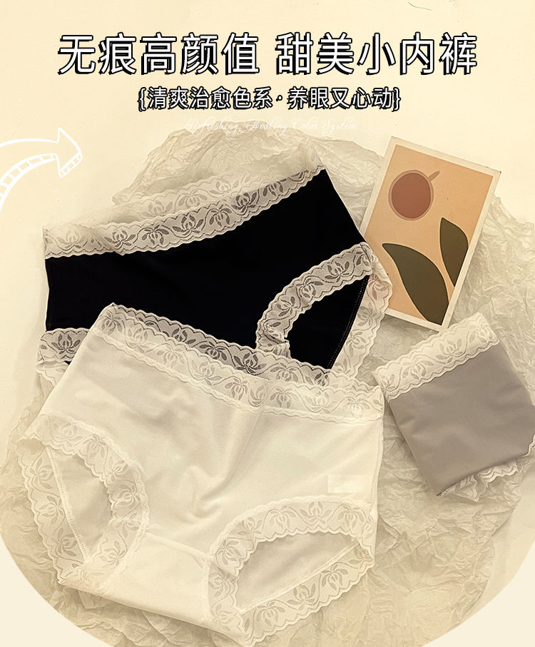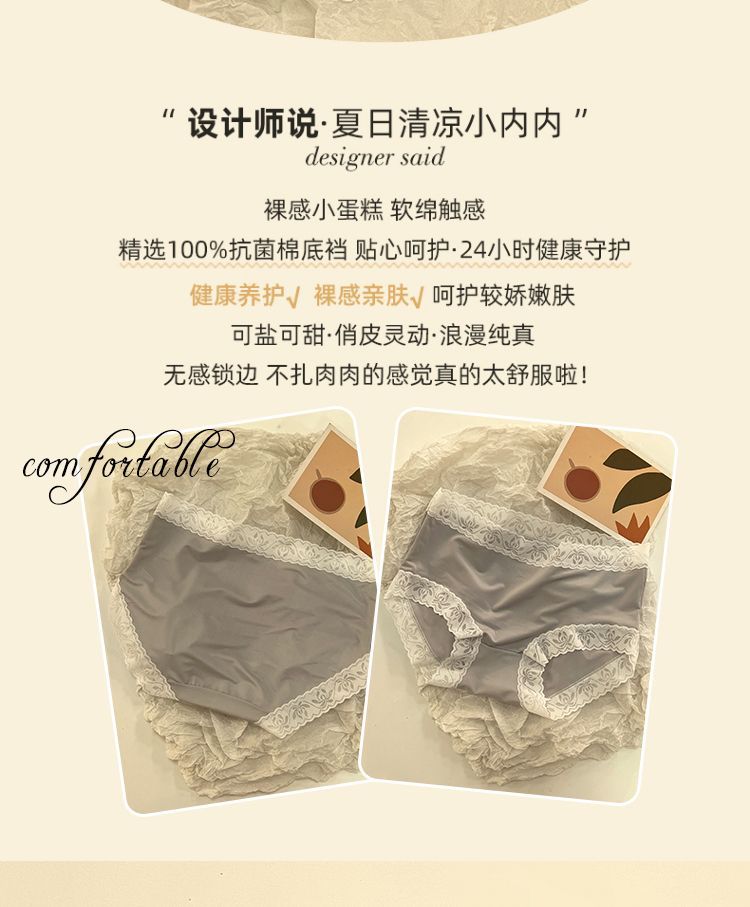 원활한 속옷 여성스러운 얼음 실크 중간 허리 통기성 봄과 여름 얇은 피부 친화적 인 소녀 엉덩이 리프팅 학생 팬티