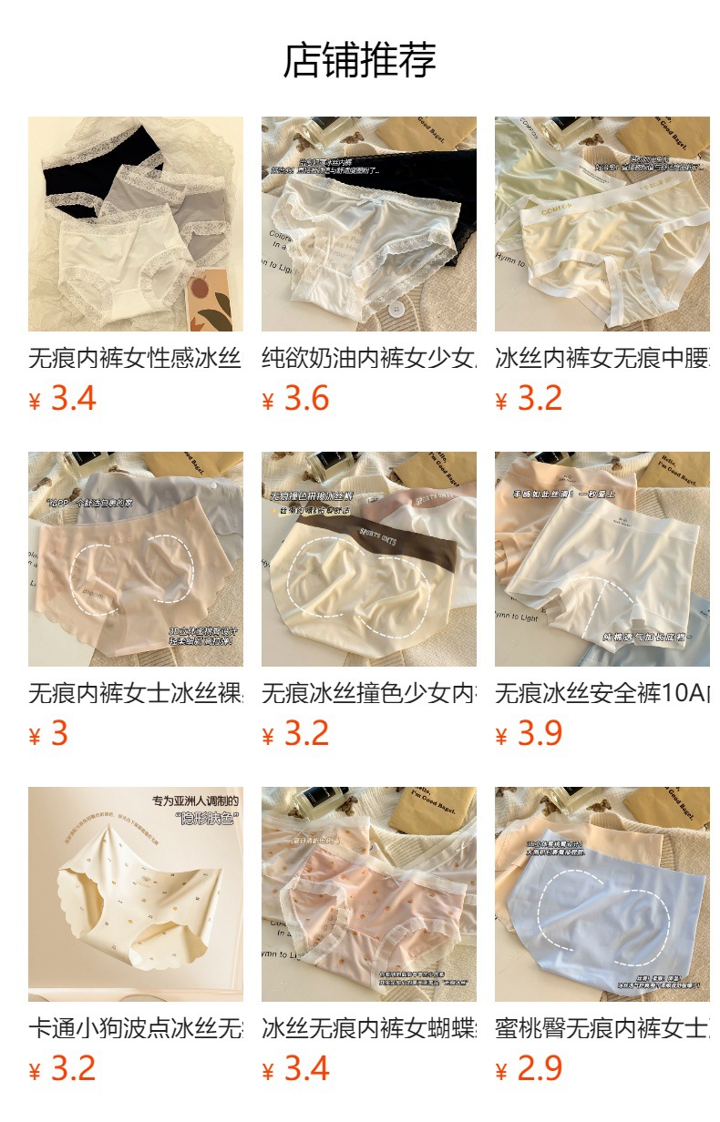 원활한 속옷 여성스러운 얼음 실크 중간 허리 통기성 봄과 여름 얇은 피부 친화적 인 소녀 엉덩이 리프팅 학생 팬티스토어 가기