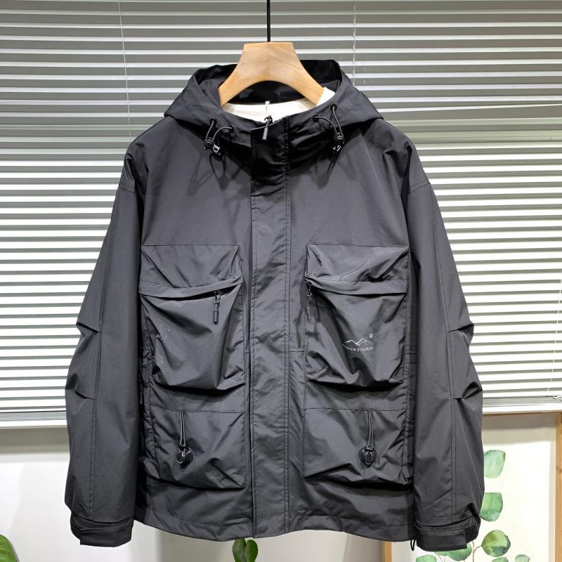 남성용 작업복 재킷, 다용도 트렌디하고 멋진 봄 가을 방풍 다주머니 후드 재킷스토어 가기