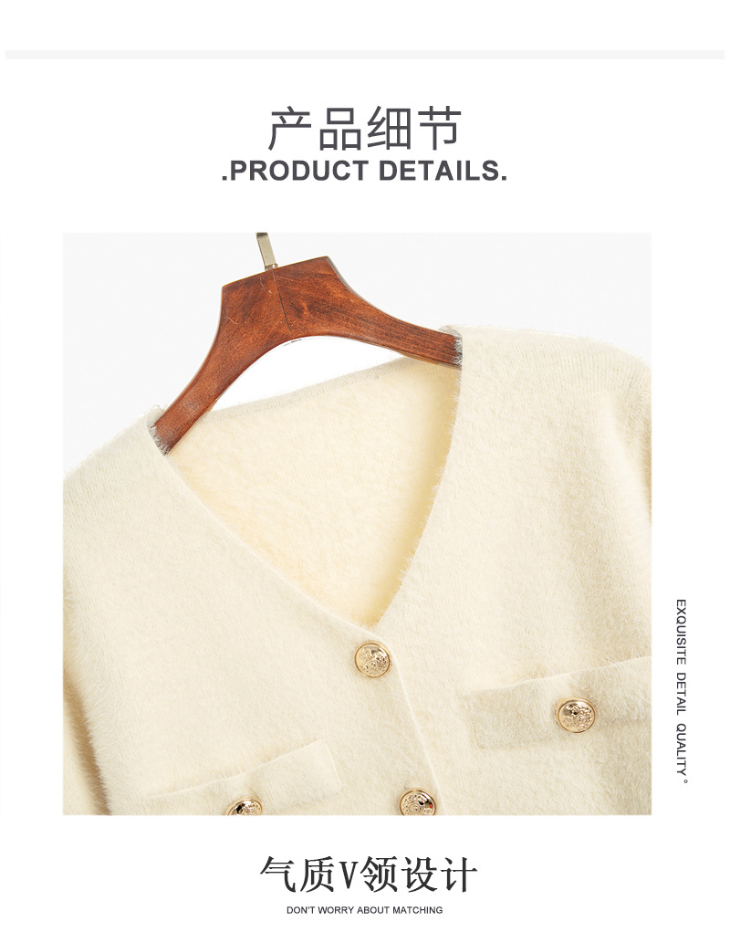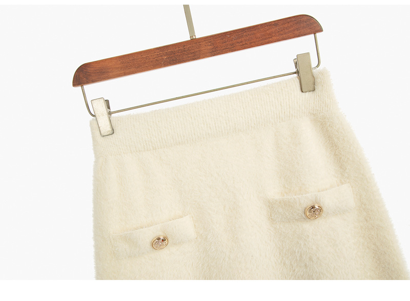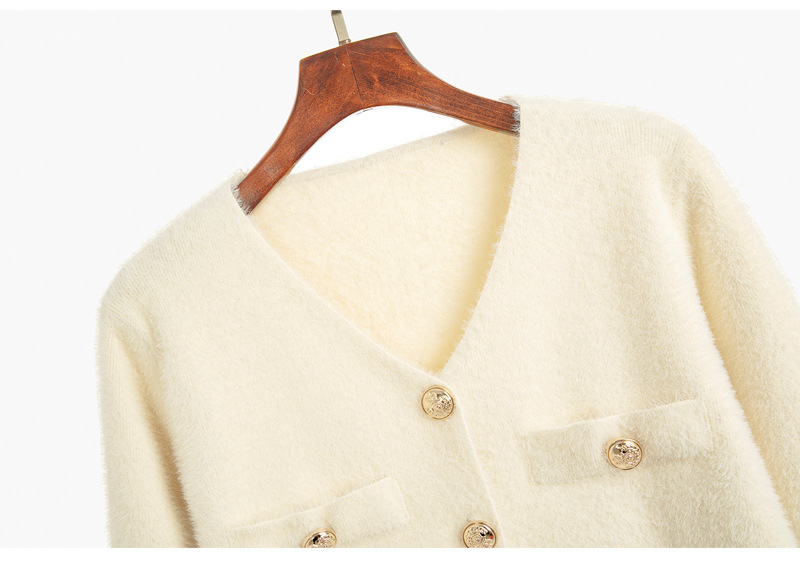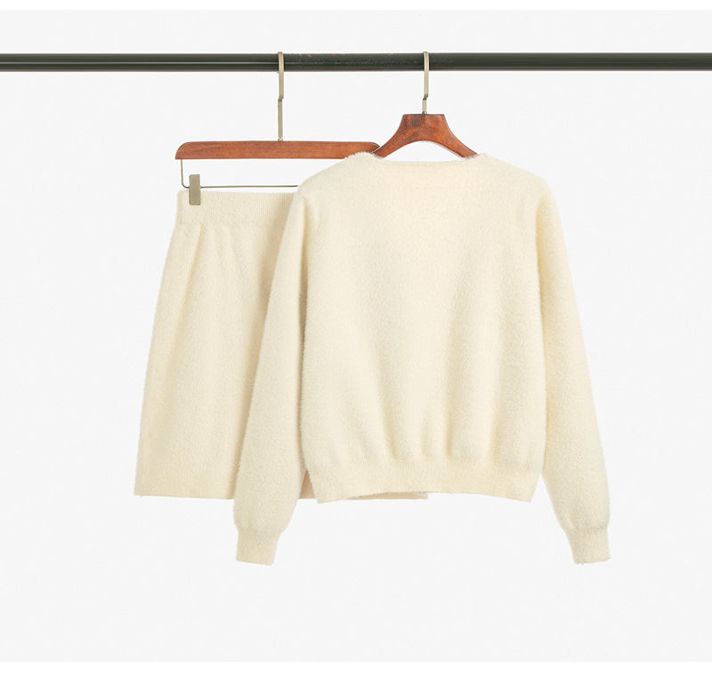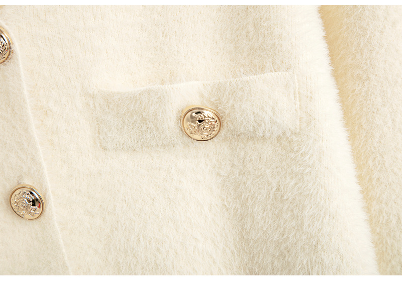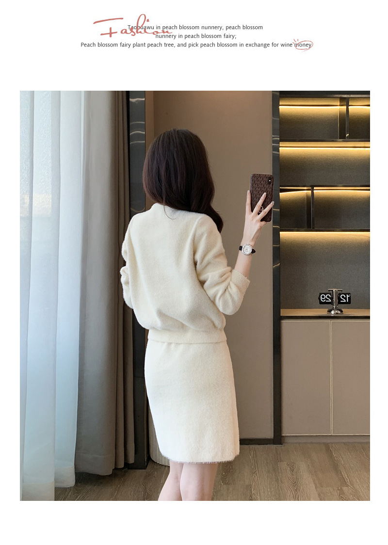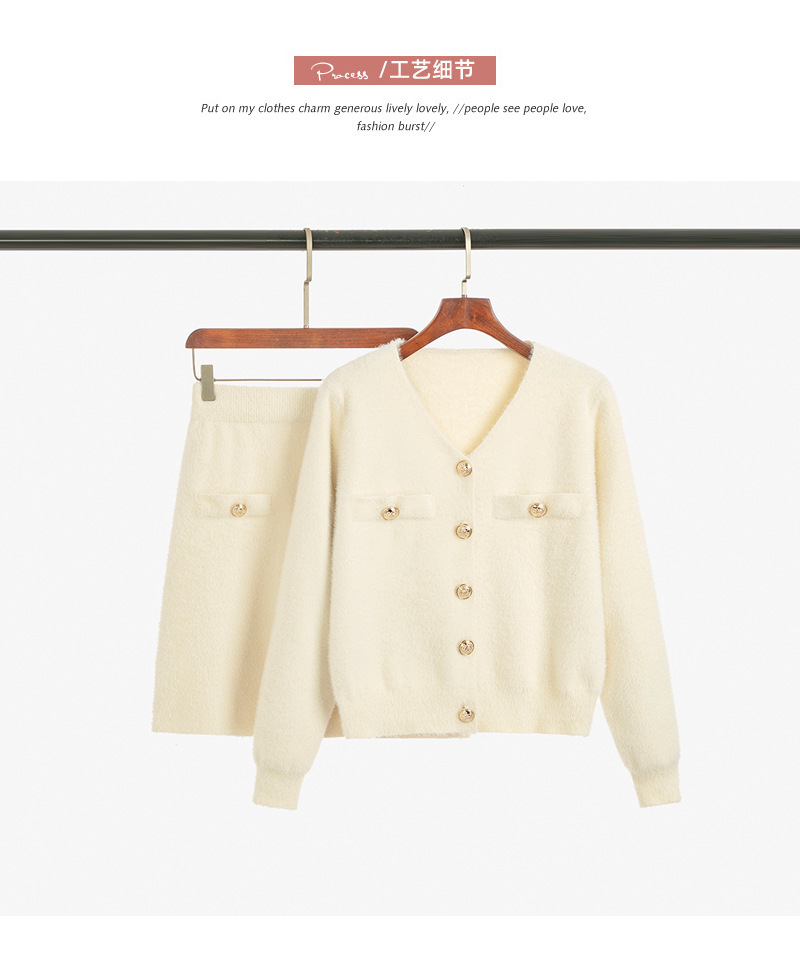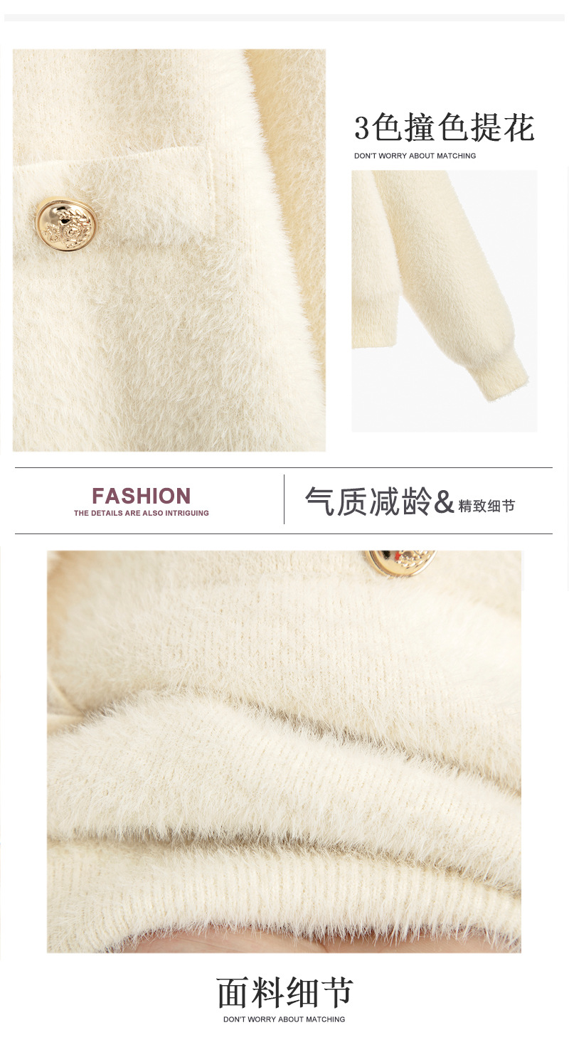 가을과 겨울 새로운 스타일 샤넬 스타일 유행 우아한 단색 모조 밍크 벨벳 세련된 버튼 스웨터 여성을위한 니트 투피스 원피스스토어 가기