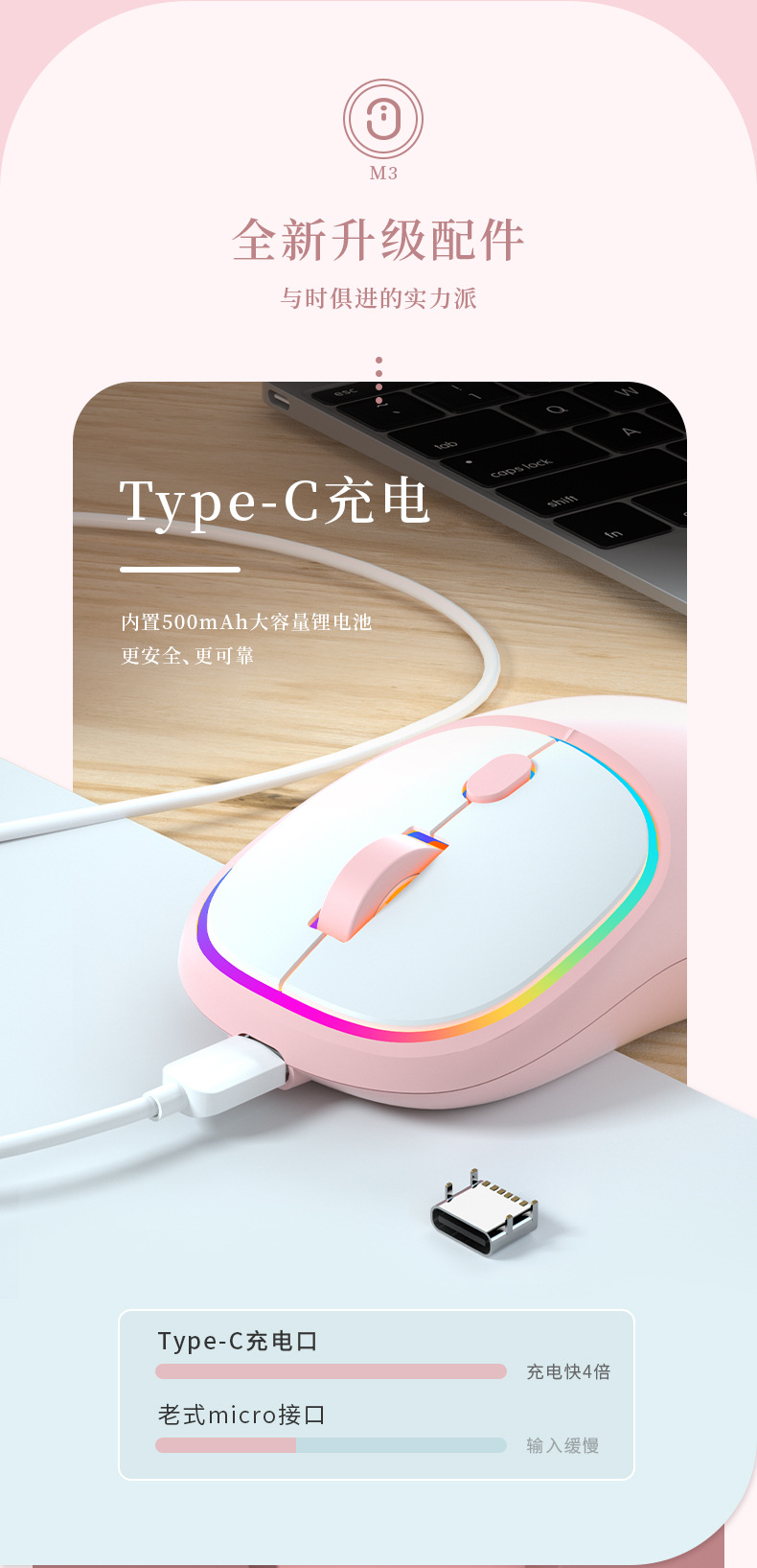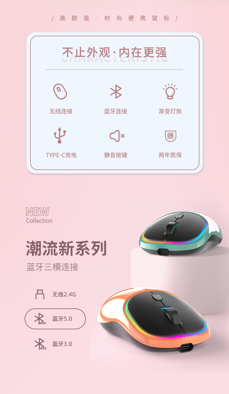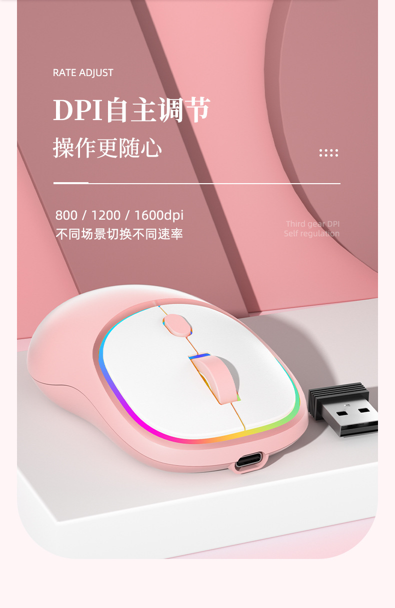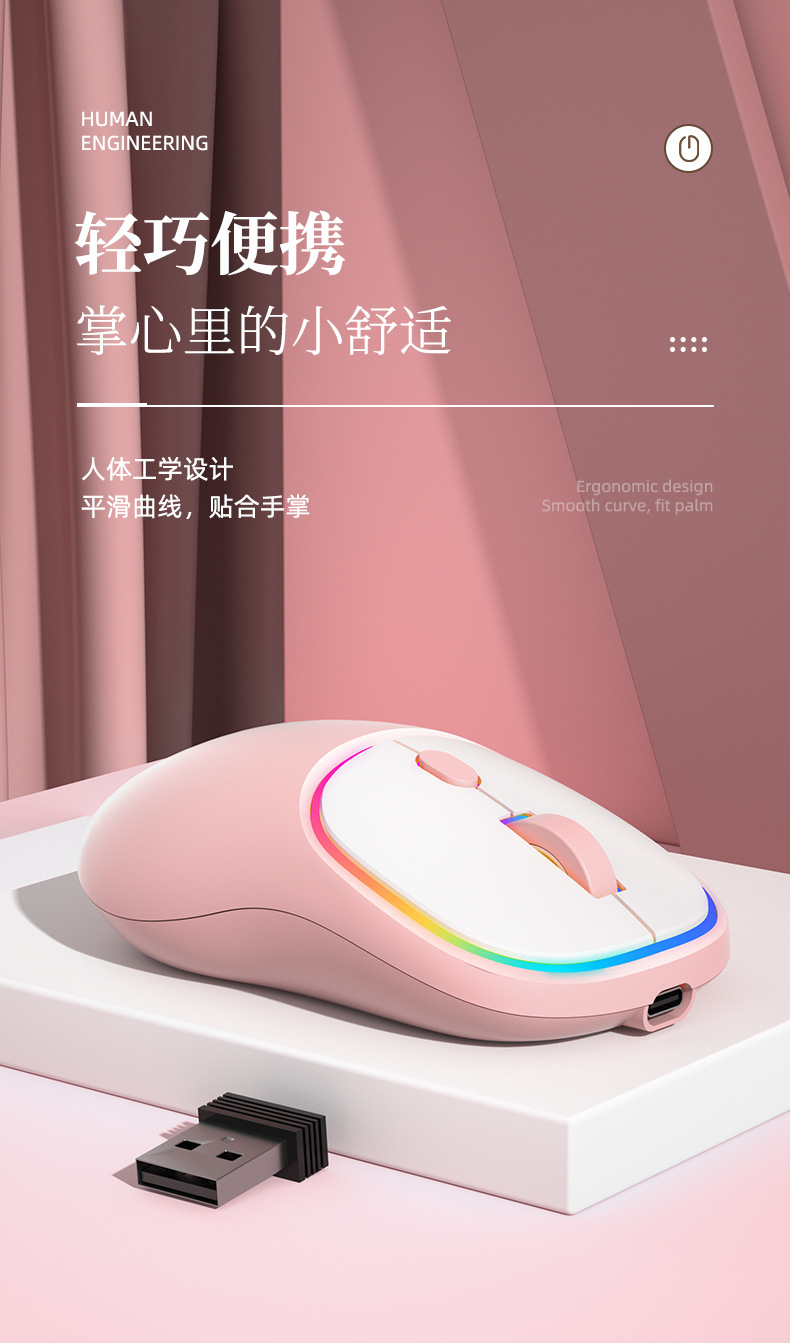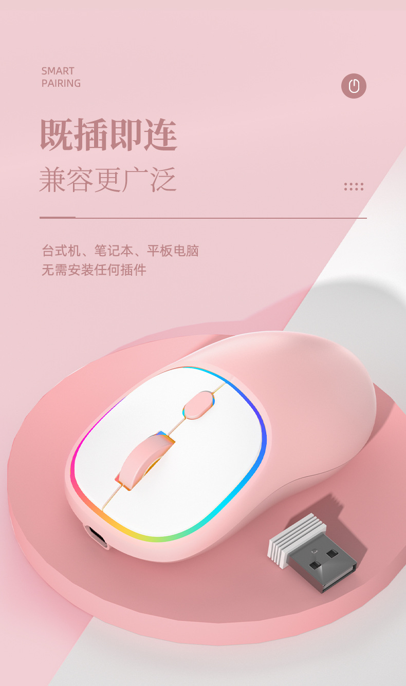 국경 간 도매 유형-c 충전 무선 마우스 블루투스 듀얼 모드 음소거 노트북 홈 오피스 소녀